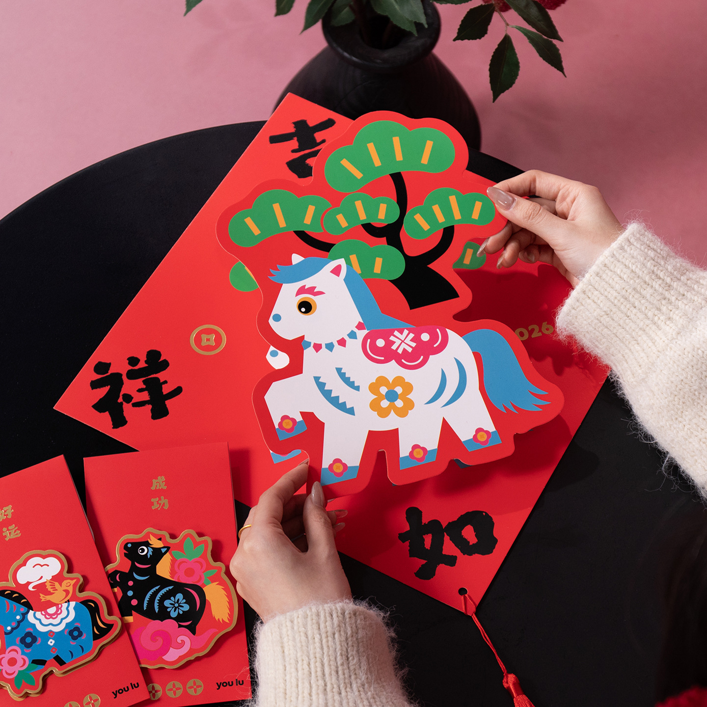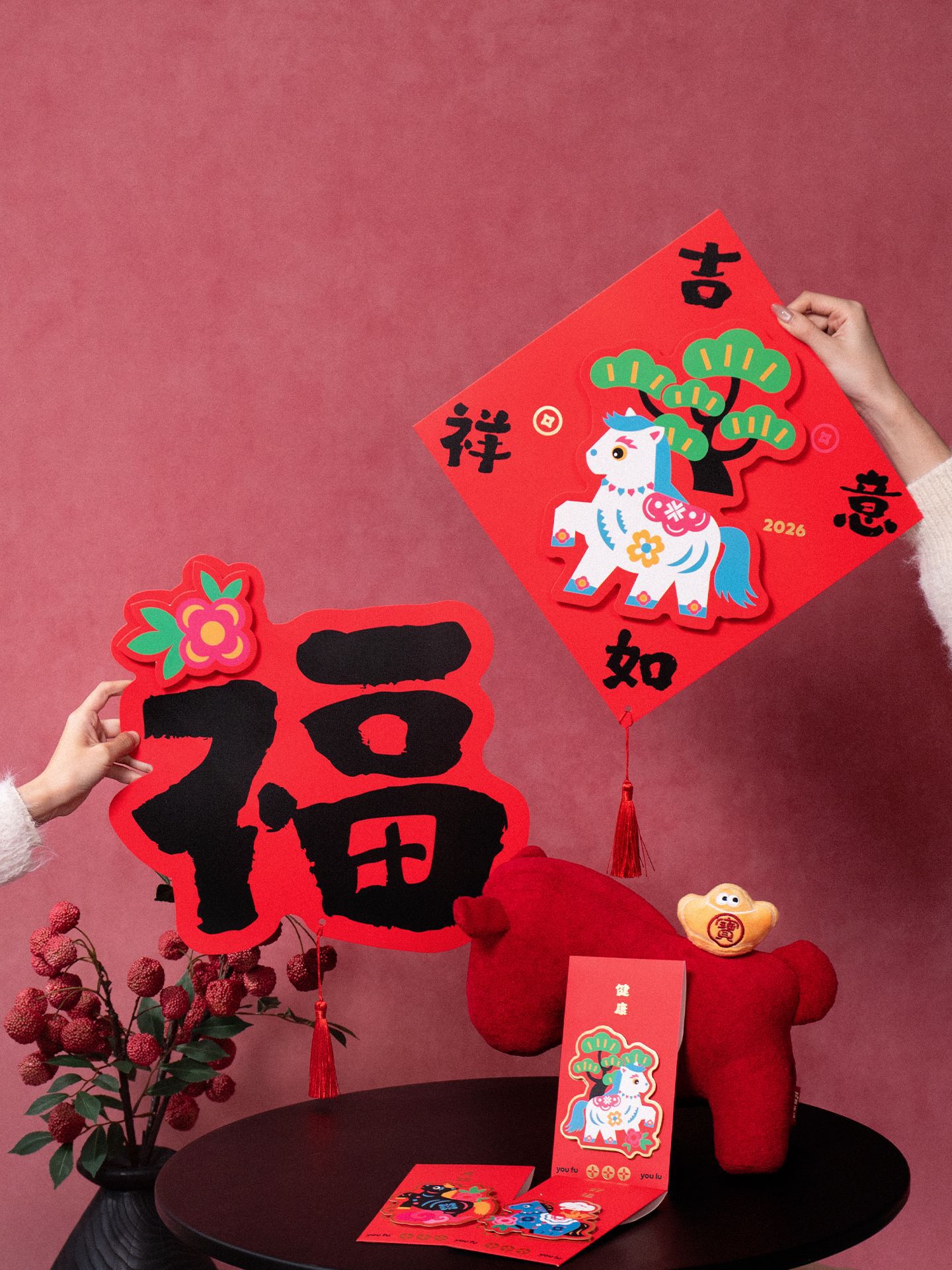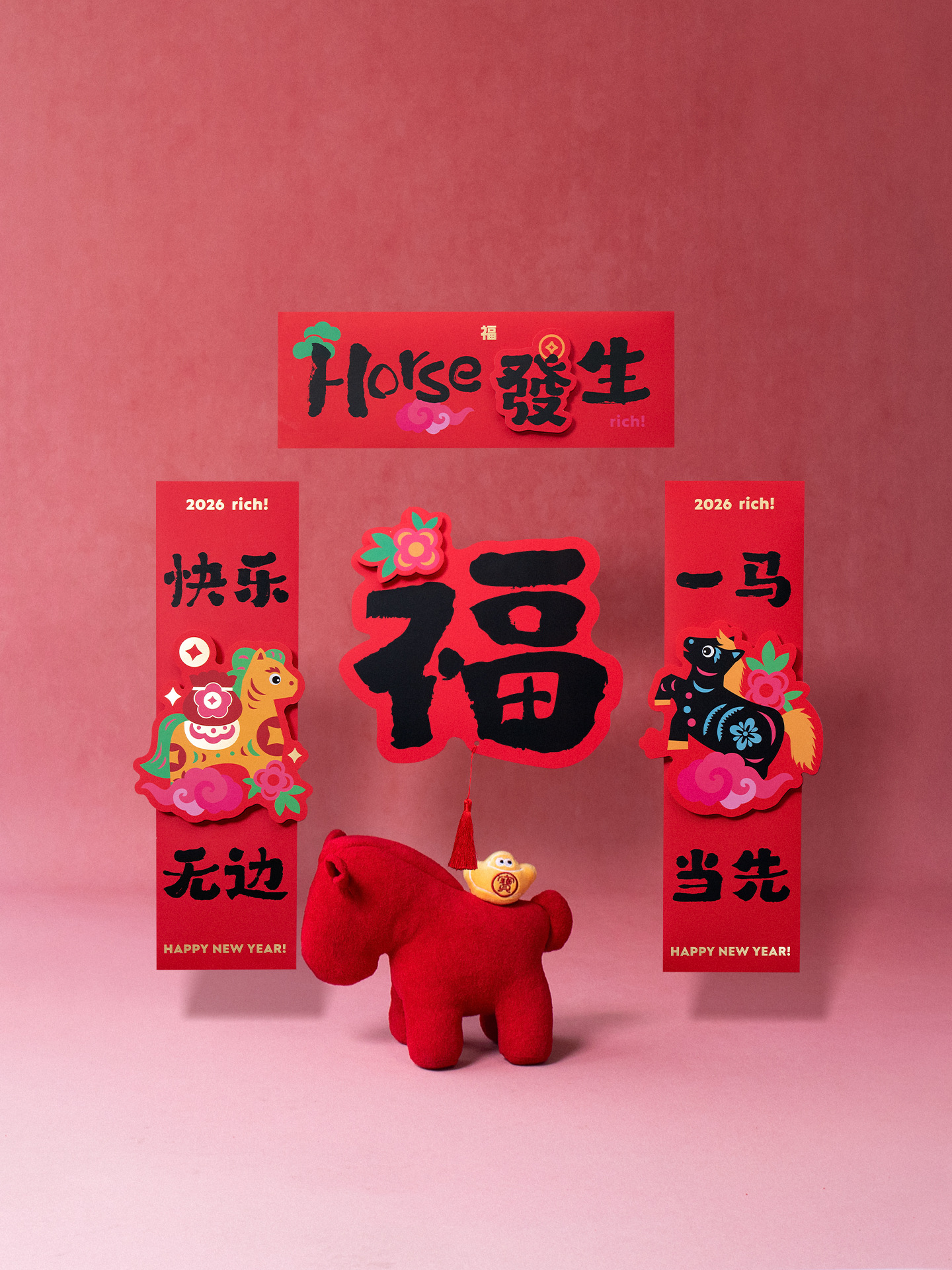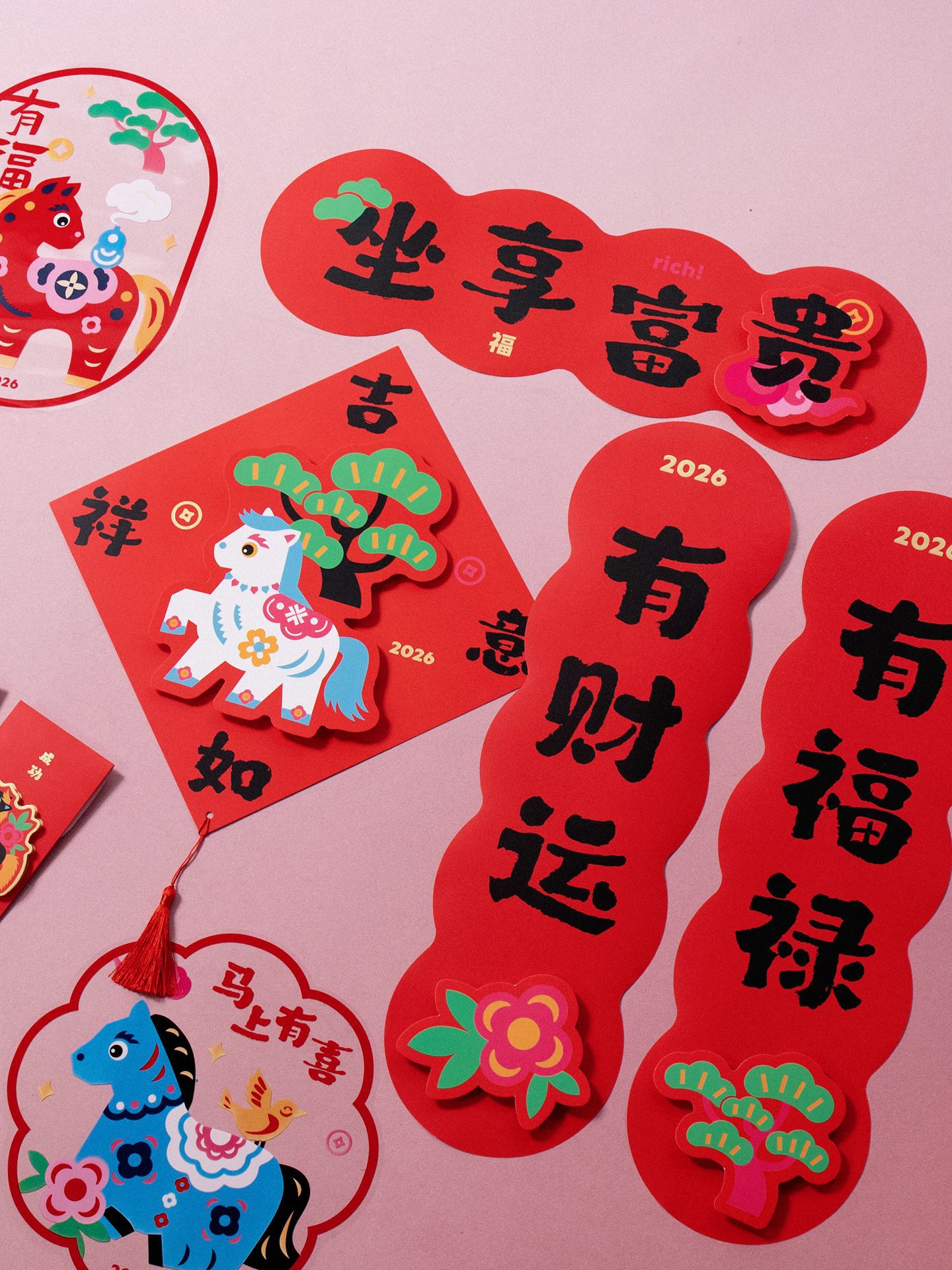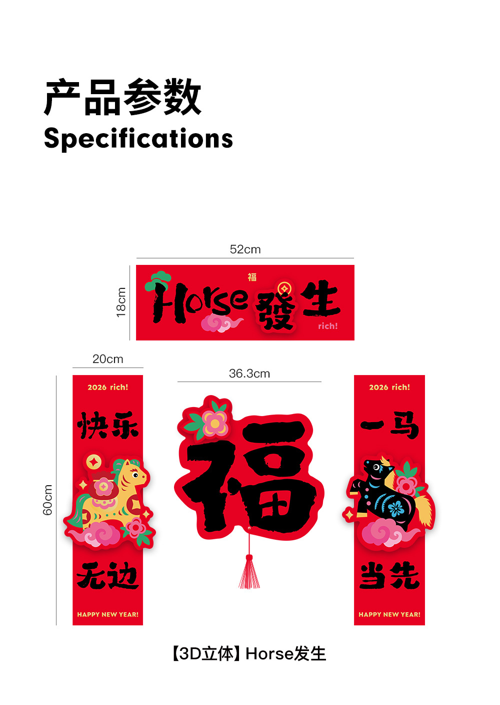 2026马年立体对联福字门贴纸春节磁吸过新年大门装饰用品春联