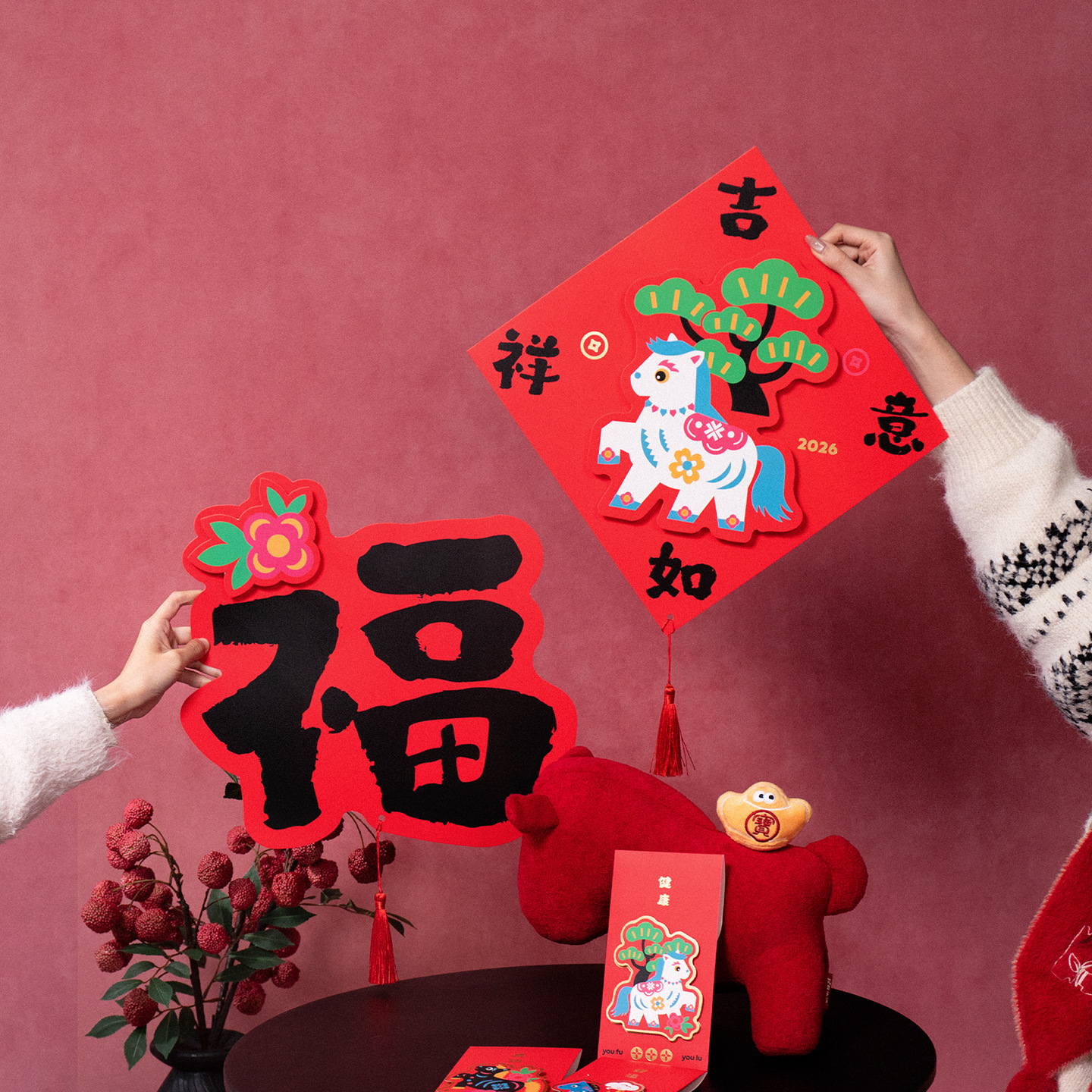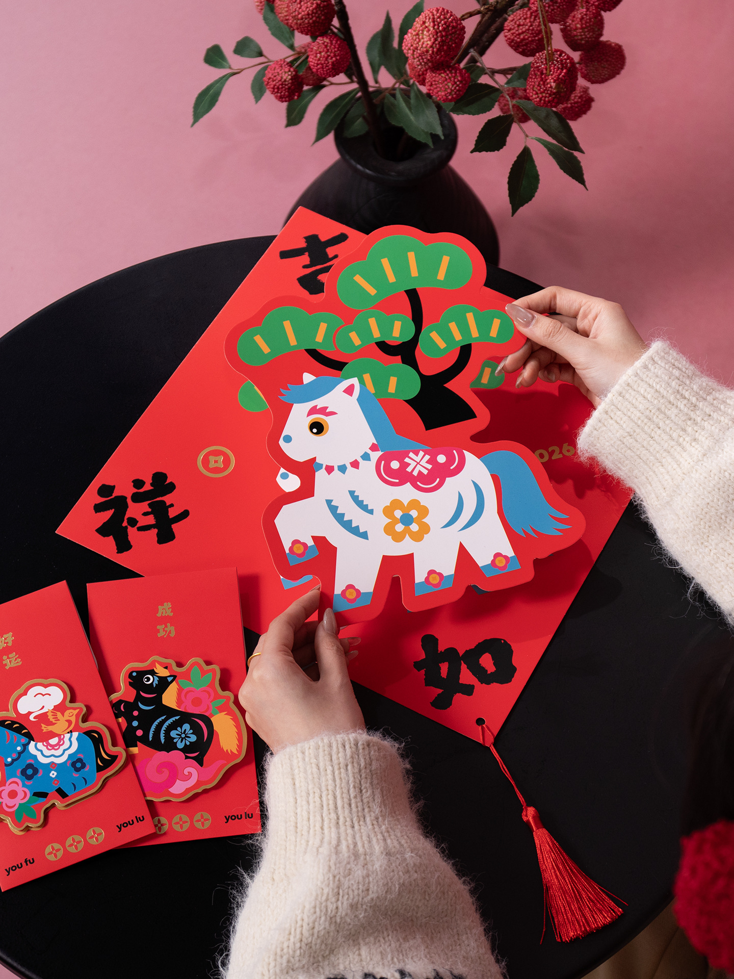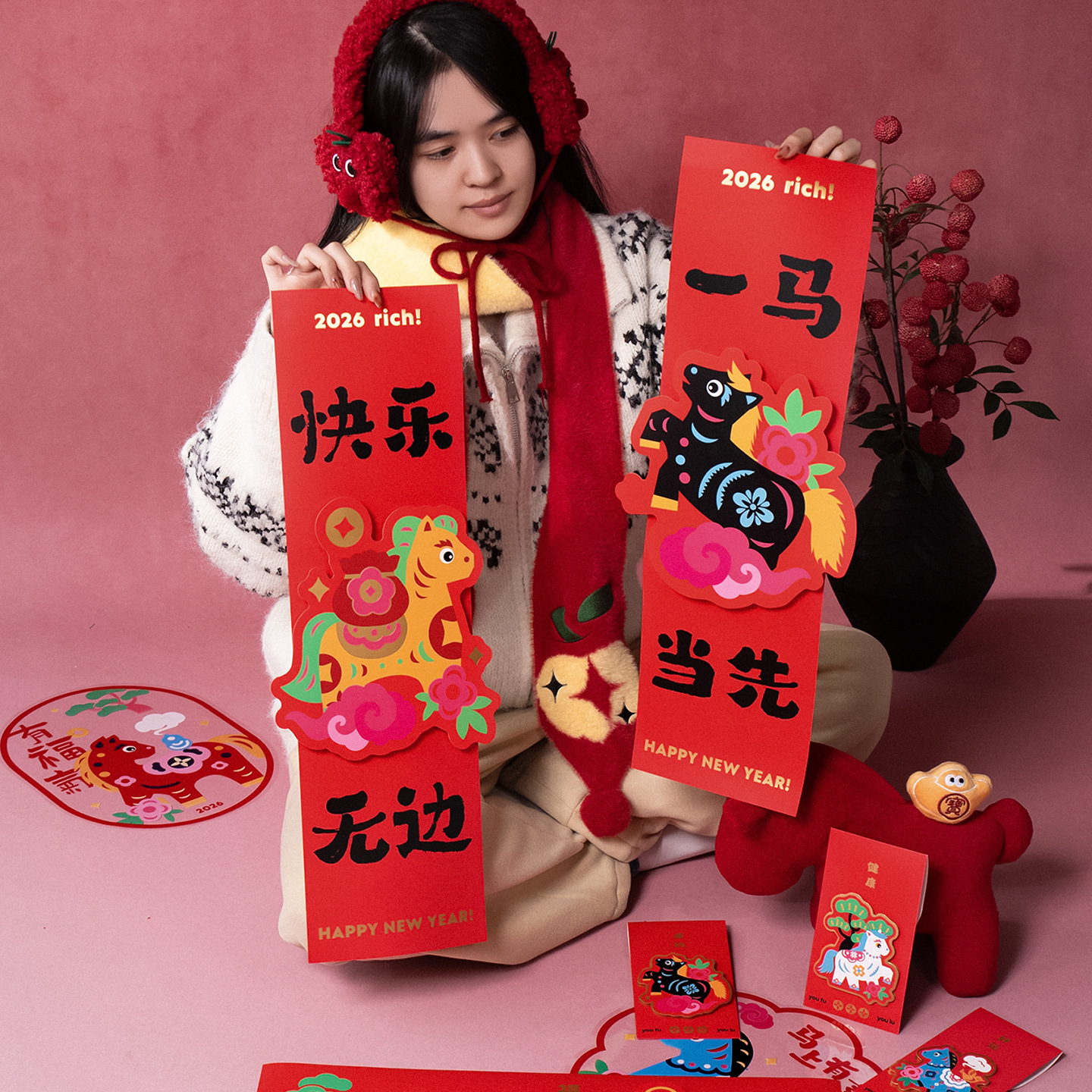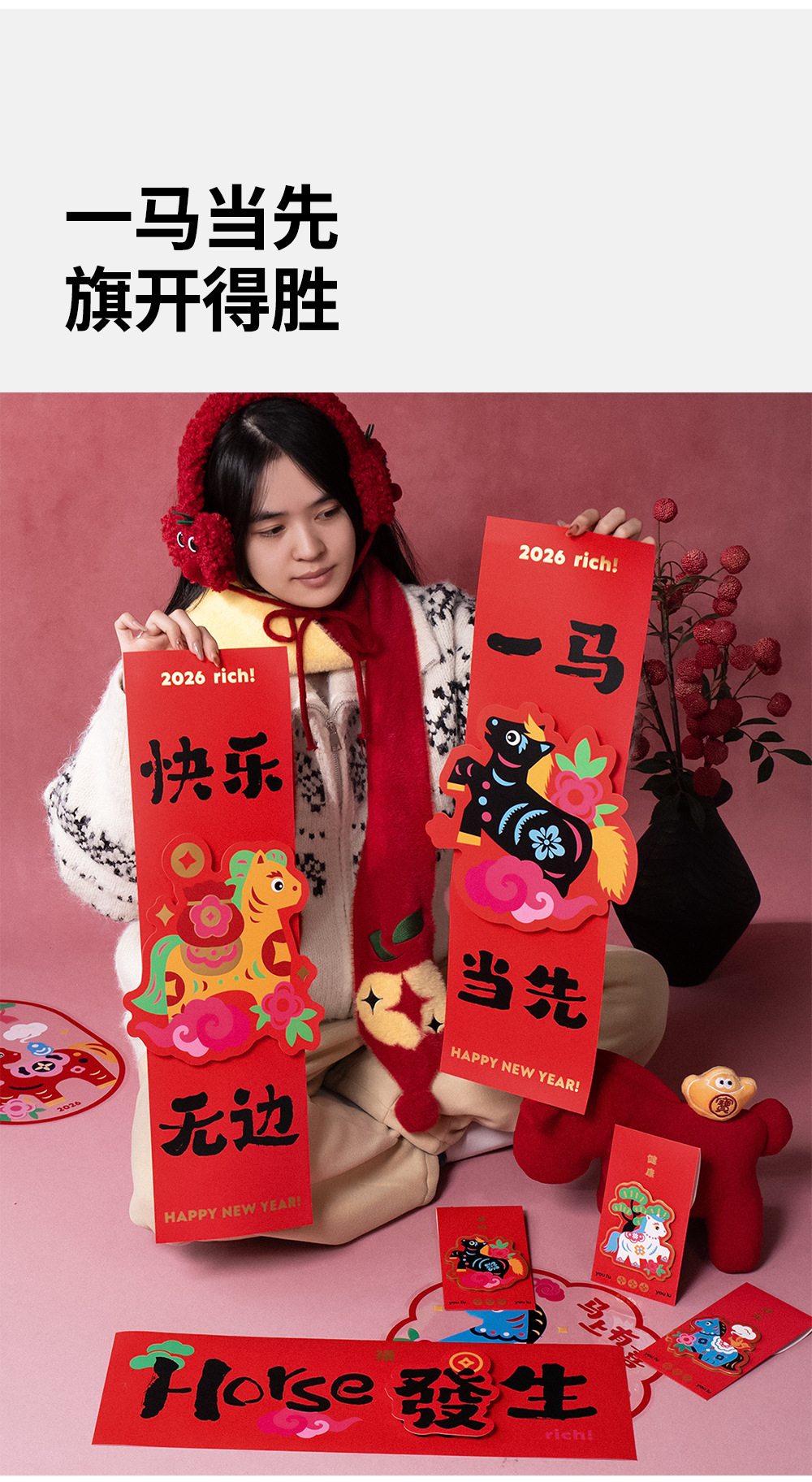 2026马年立体对联福字门贴纸春节磁吸过新年大门装饰用品春联