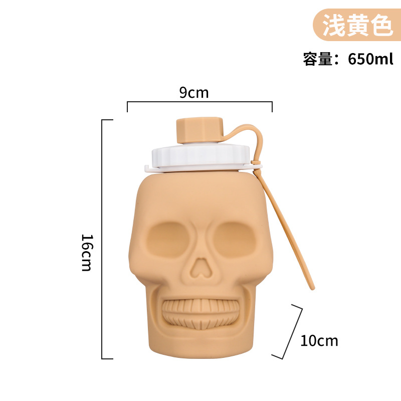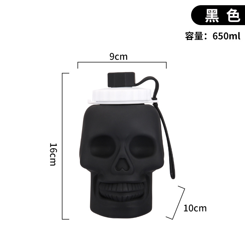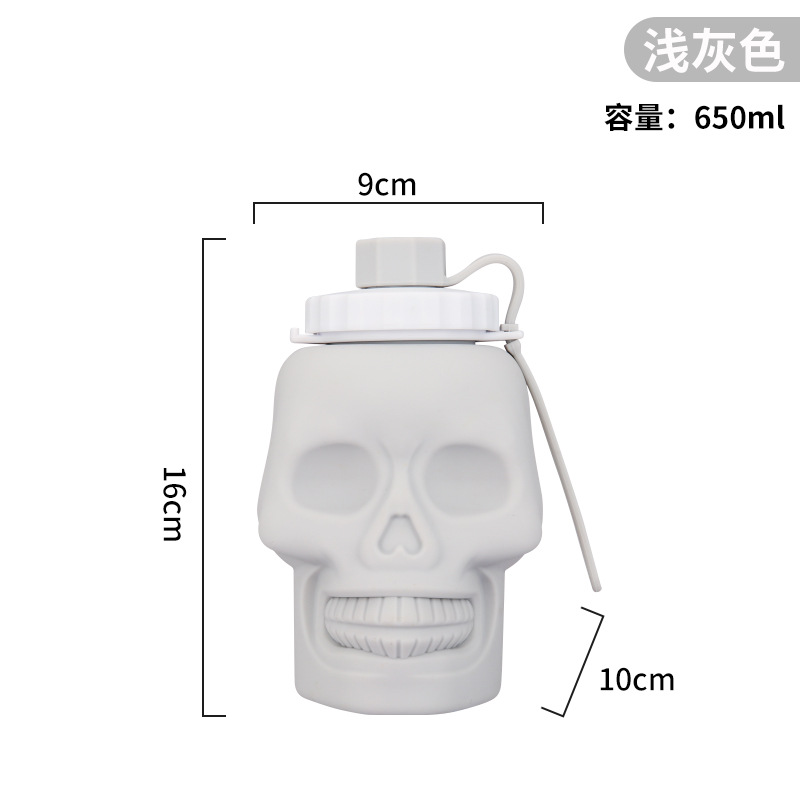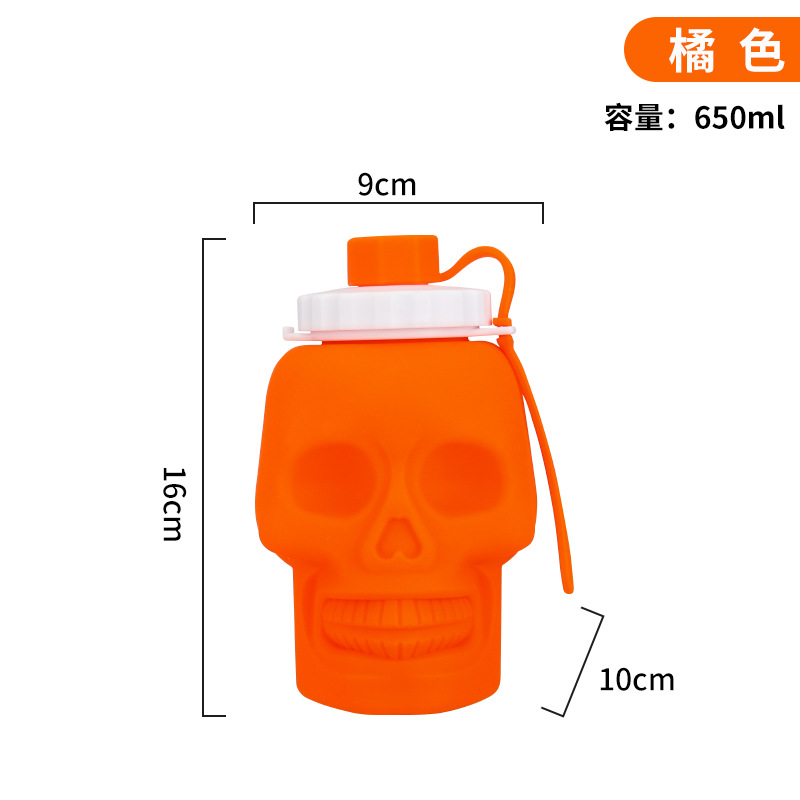 新款万圣节硅胶折叠杯 跨境鬼节玩具杯创意骷髅头650ml运动水壶