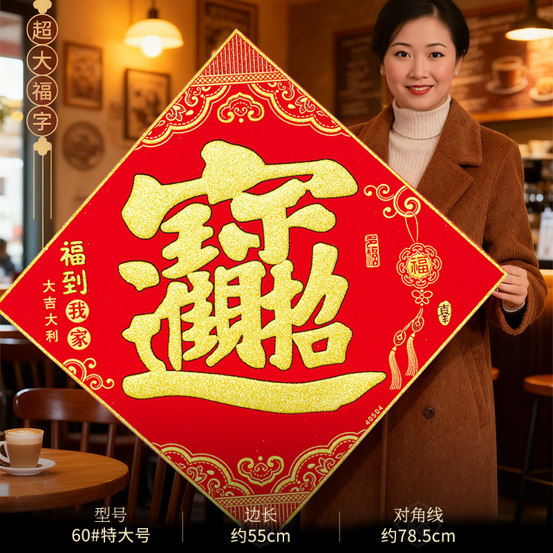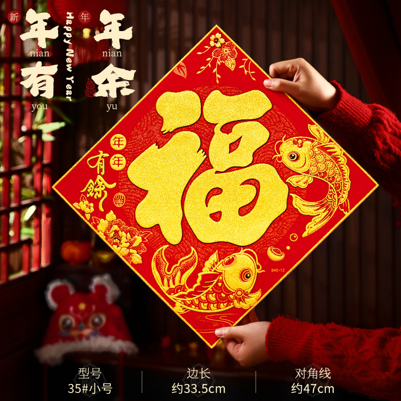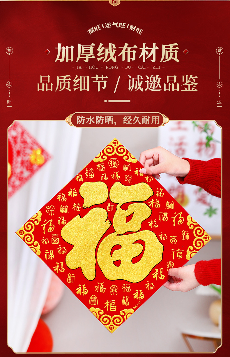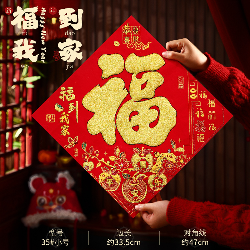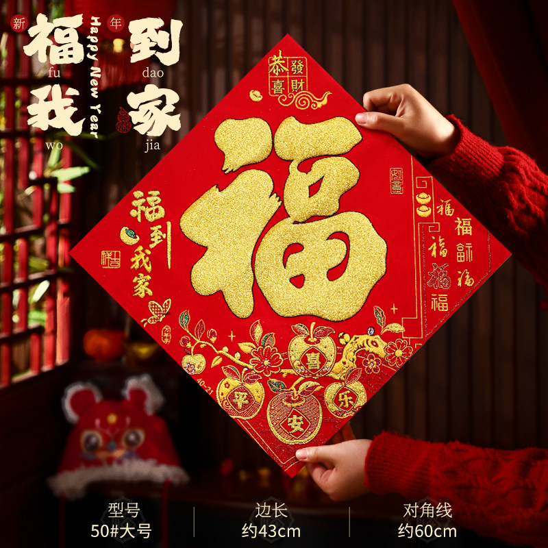 新年2026马年贴纸福字贴自粘绒布背胶门贴过年春节大门入户门福字