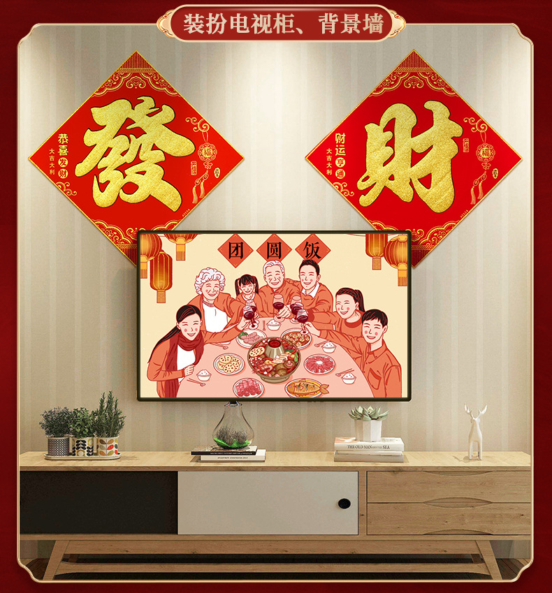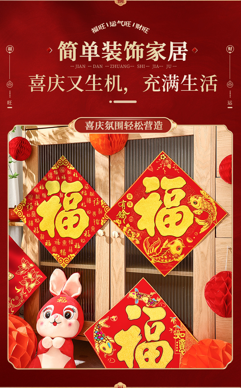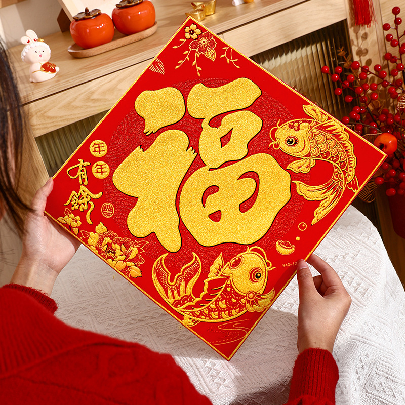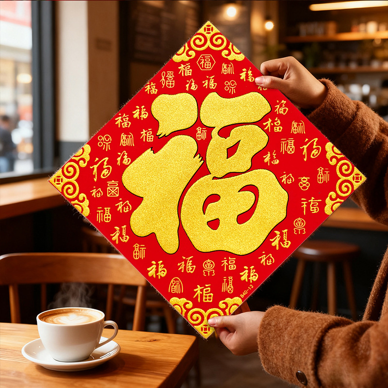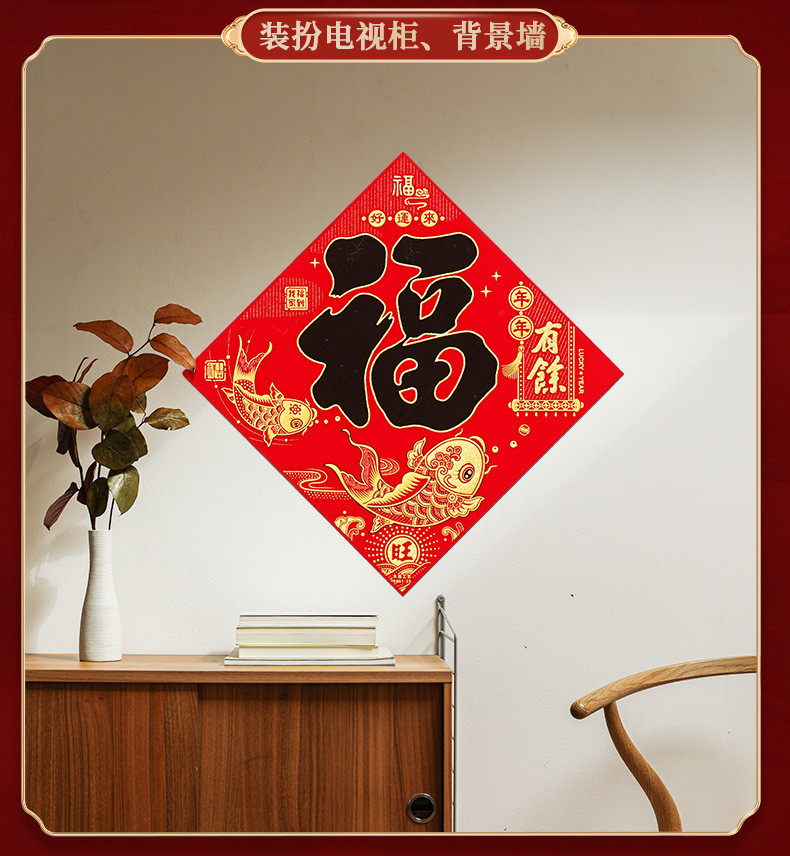 新年2026马年贴纸福字贴自粘绒布背胶门贴过年春节大门入户门福字
