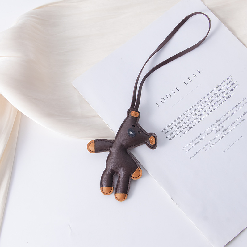 憨豆小熊包挂件皮革泰迪小熊钥匙扣miu系挂件配件手机壳挂饰