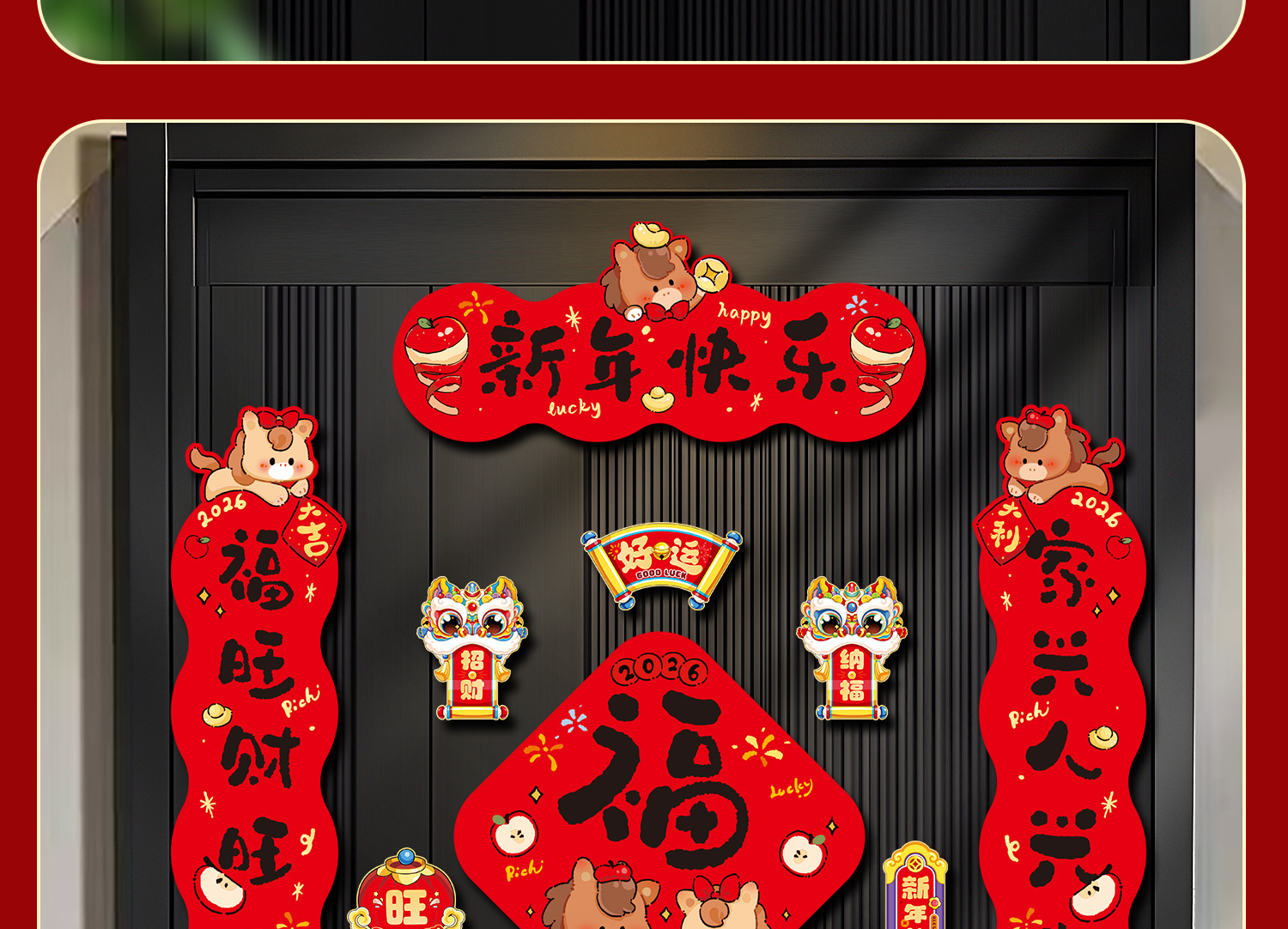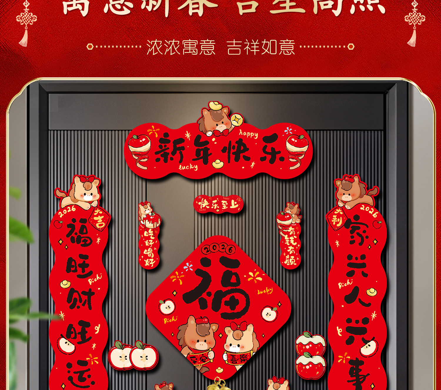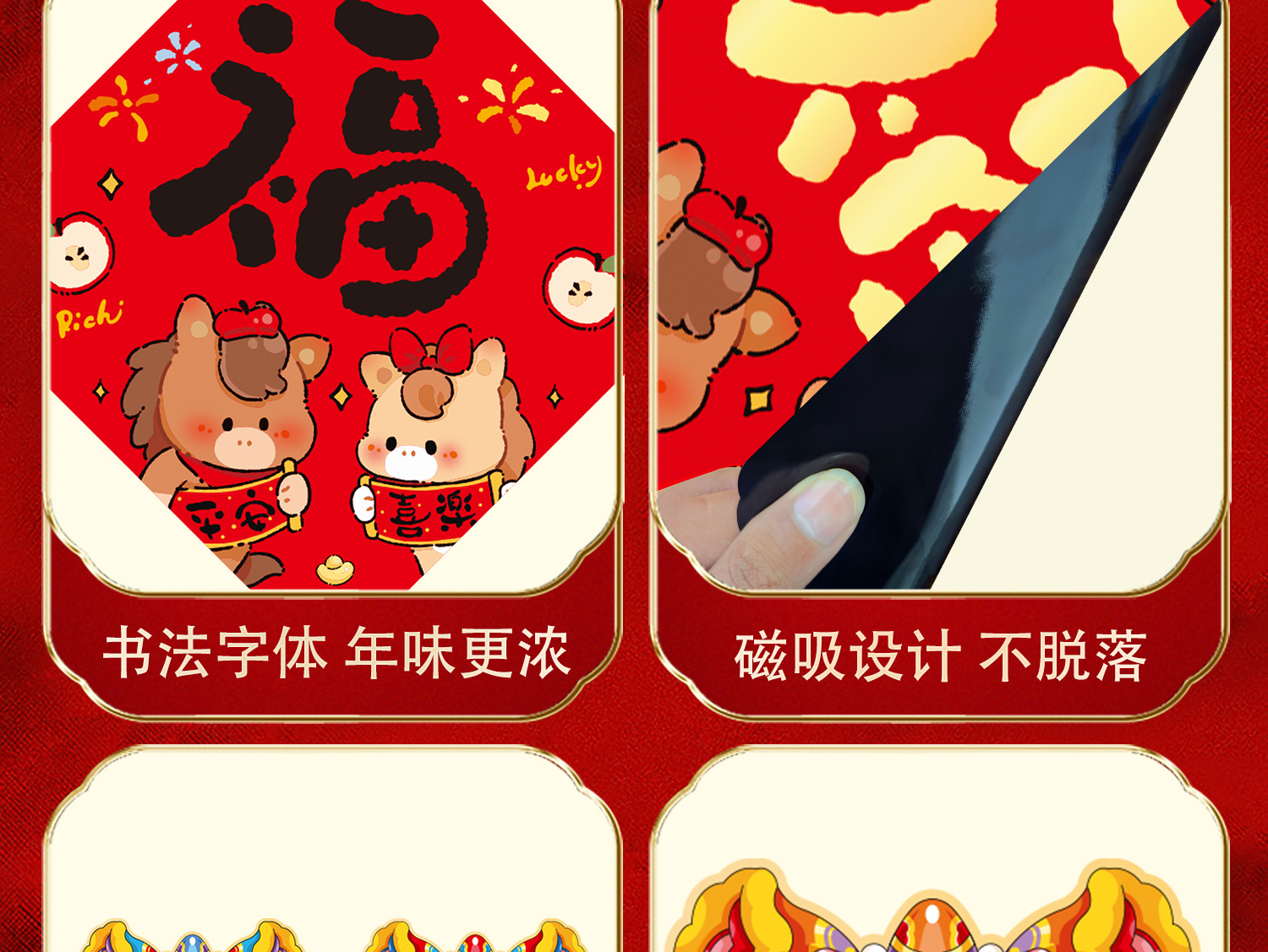 磁吸春联2026马年新款新年对联批货春节用品年货过年入户门福字贴