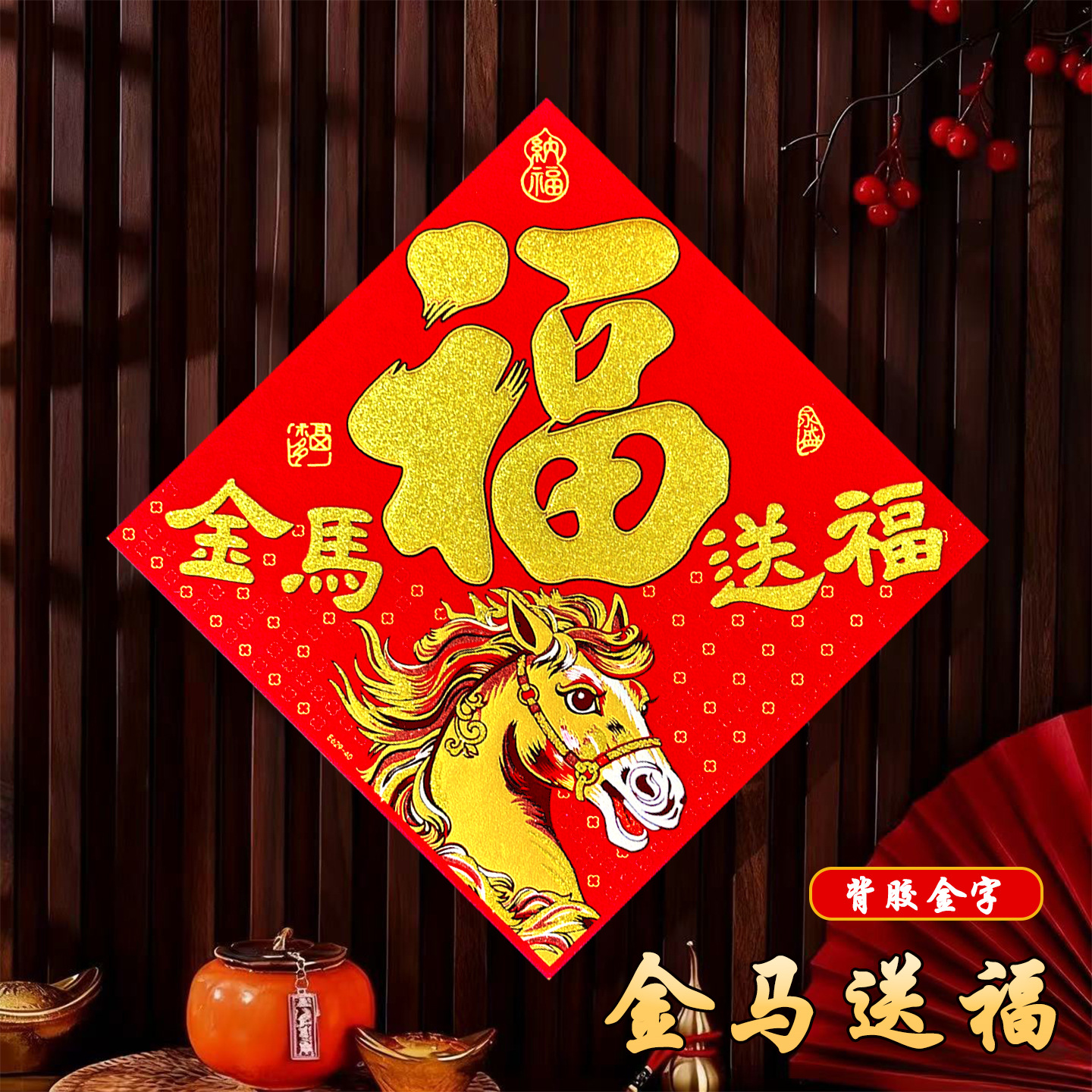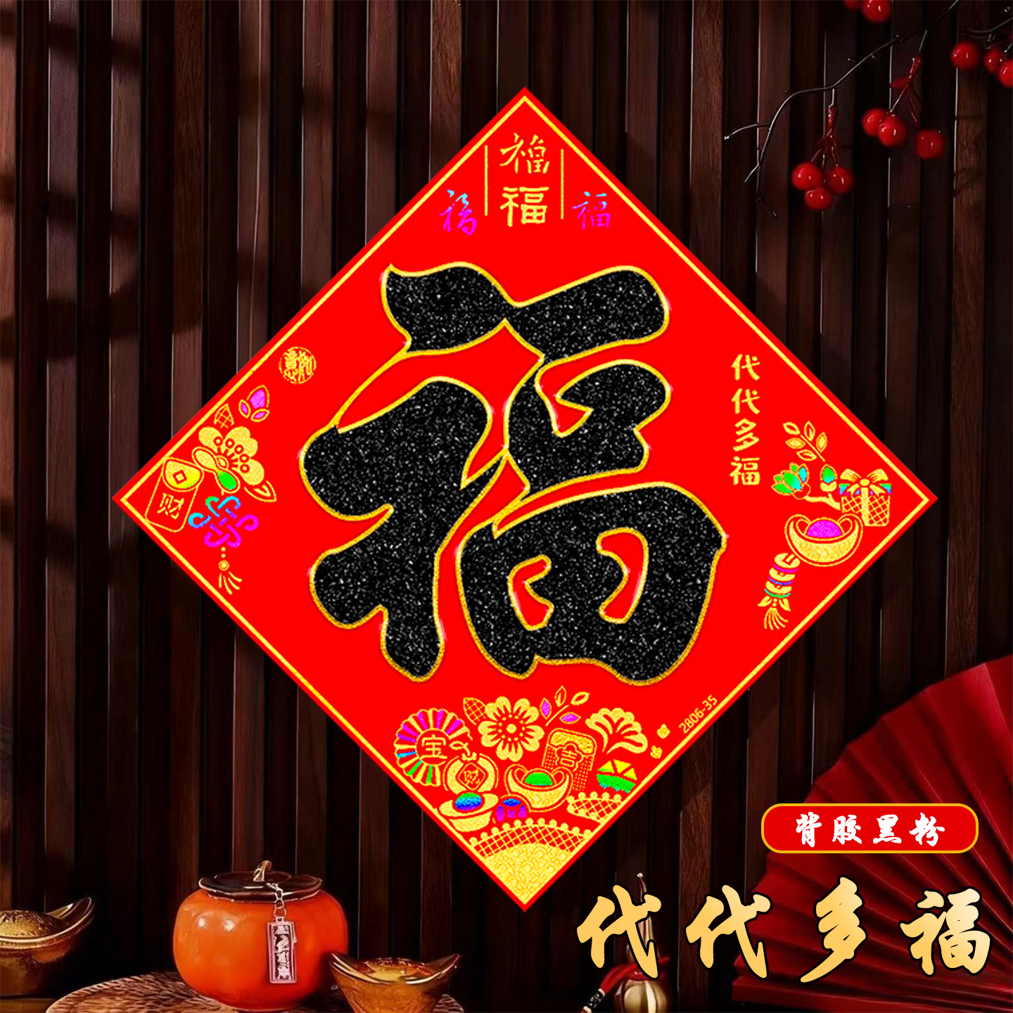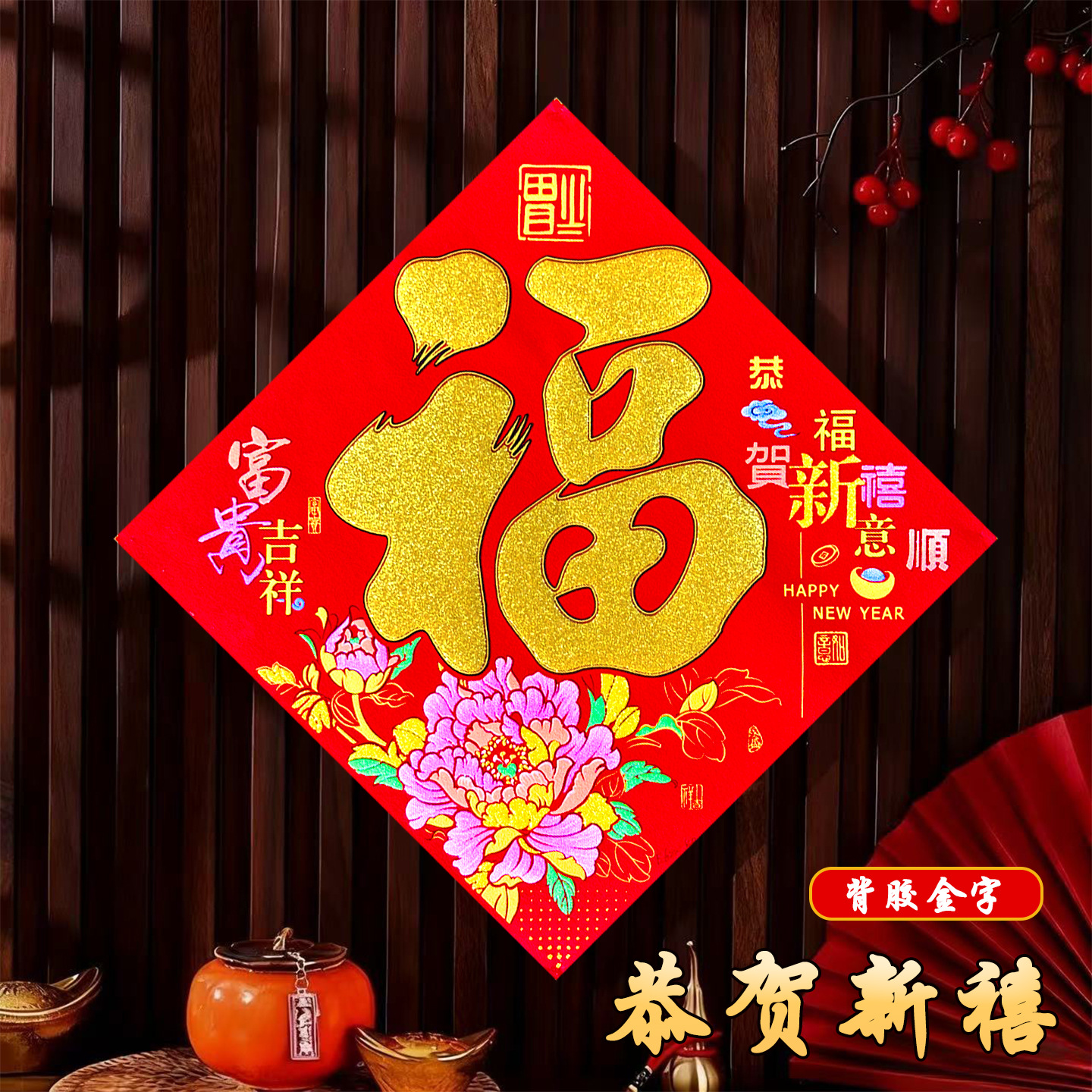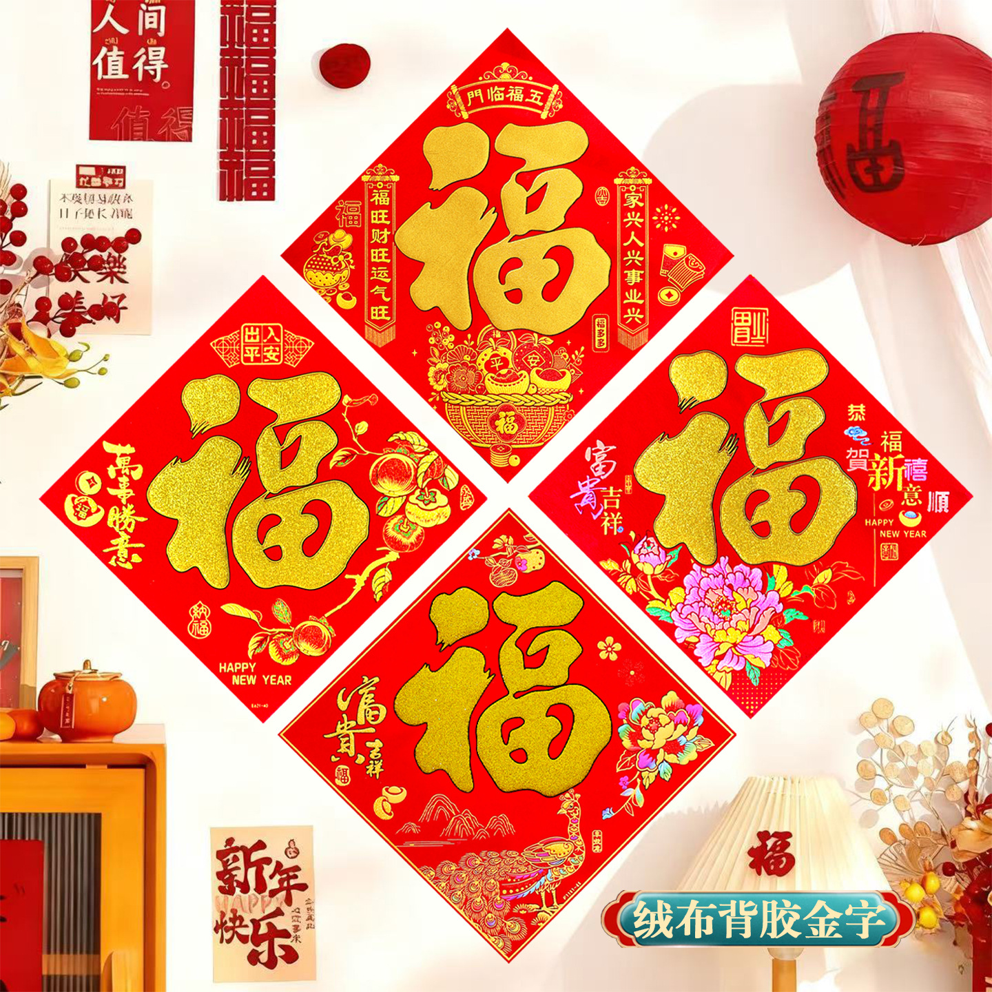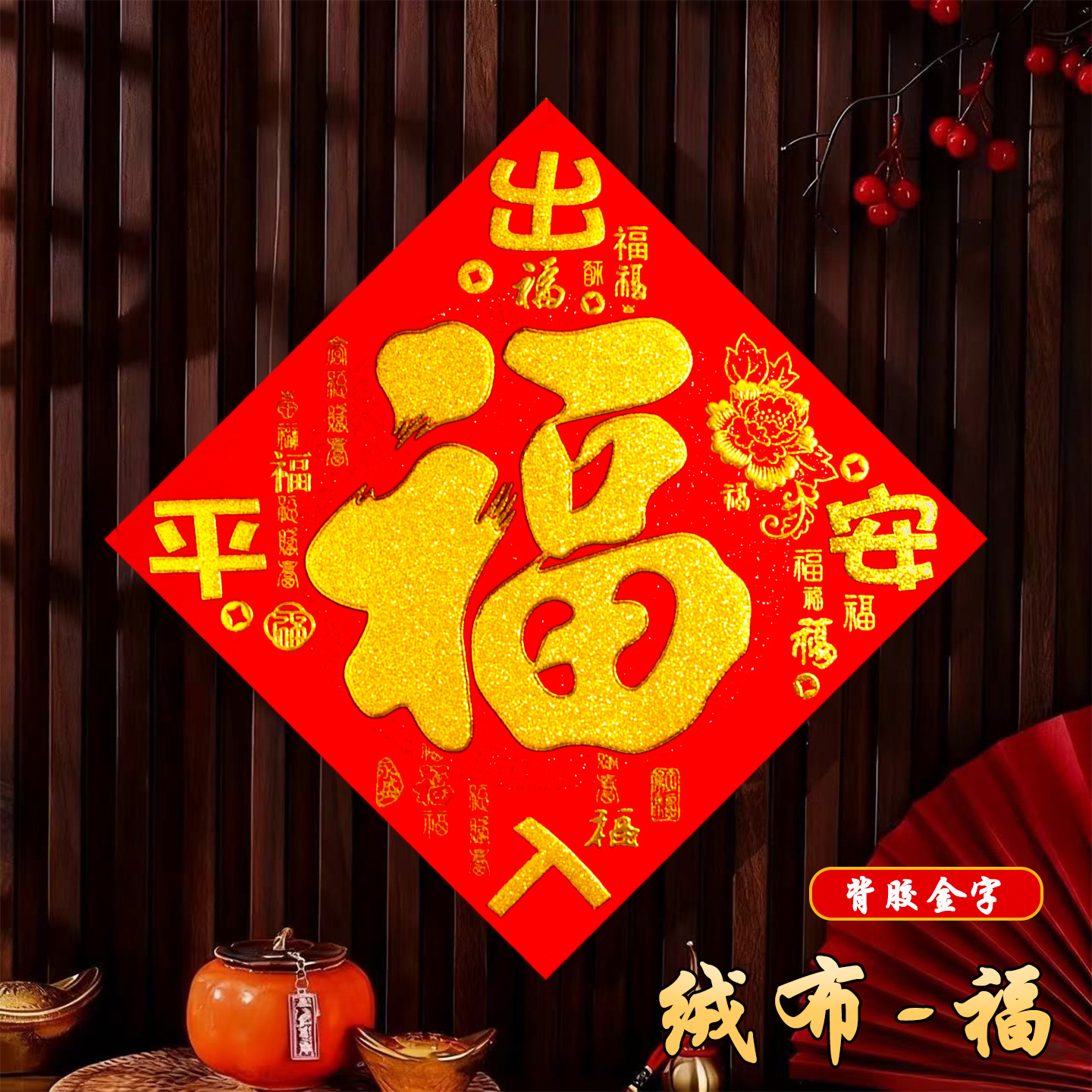 2026年马年新款高档绒布福字全背胶自粘门贴春节年货厂家装饰批发