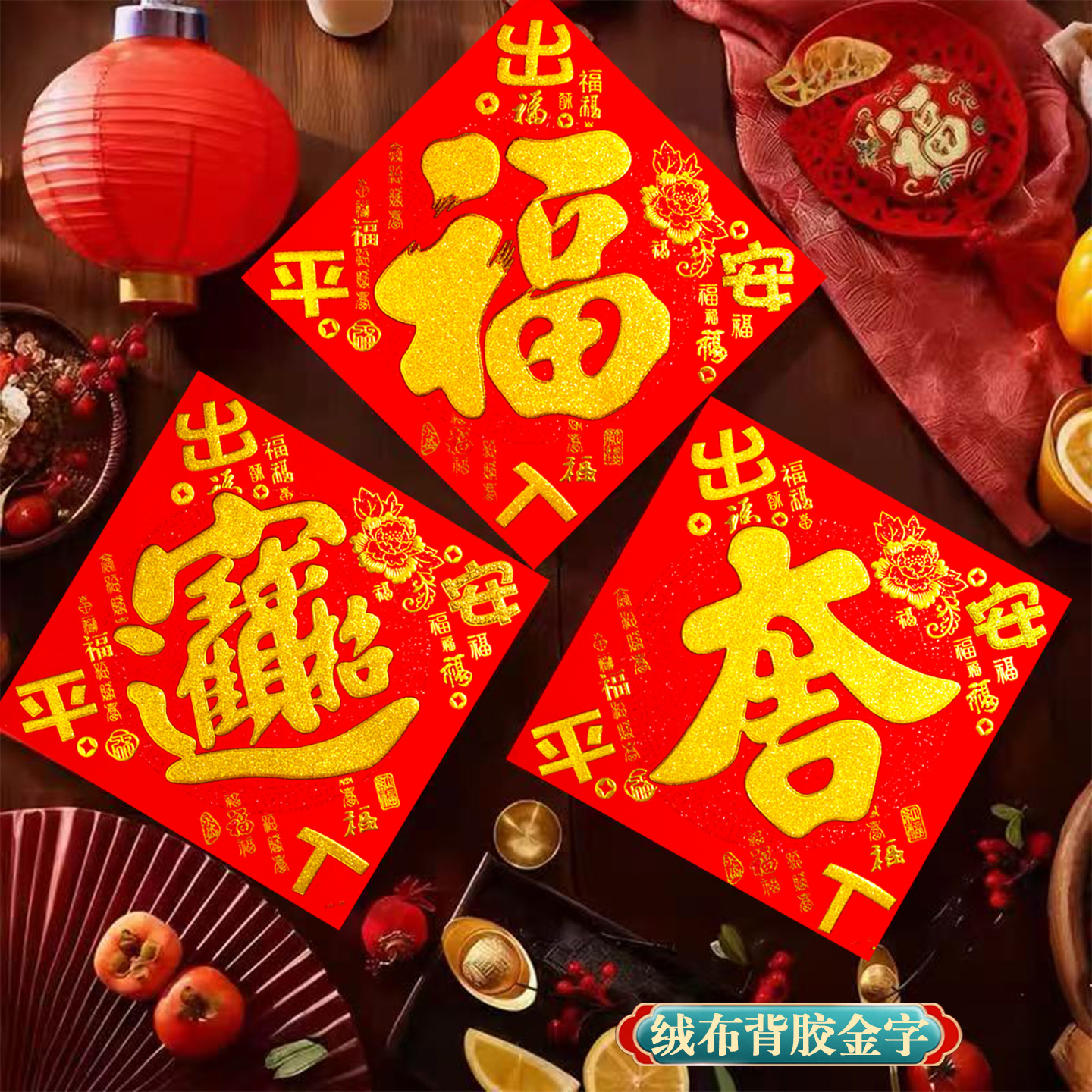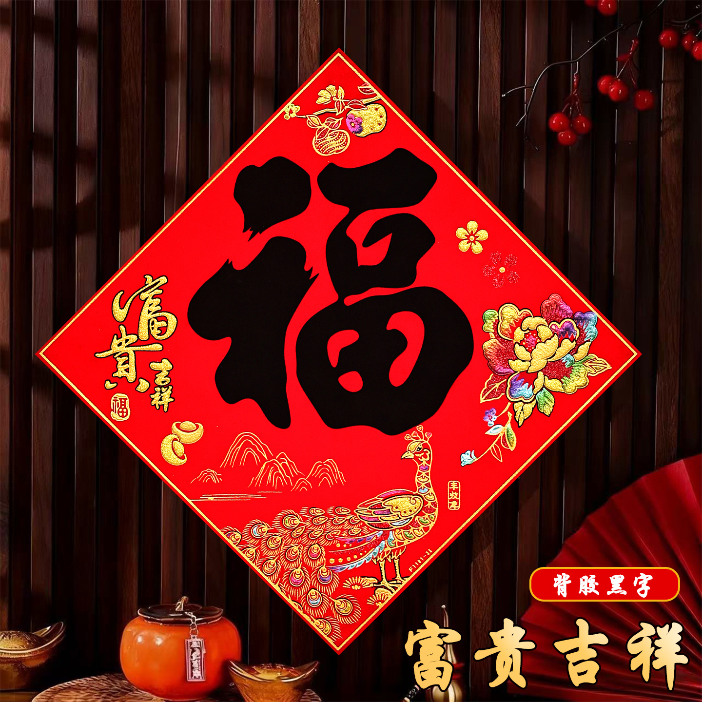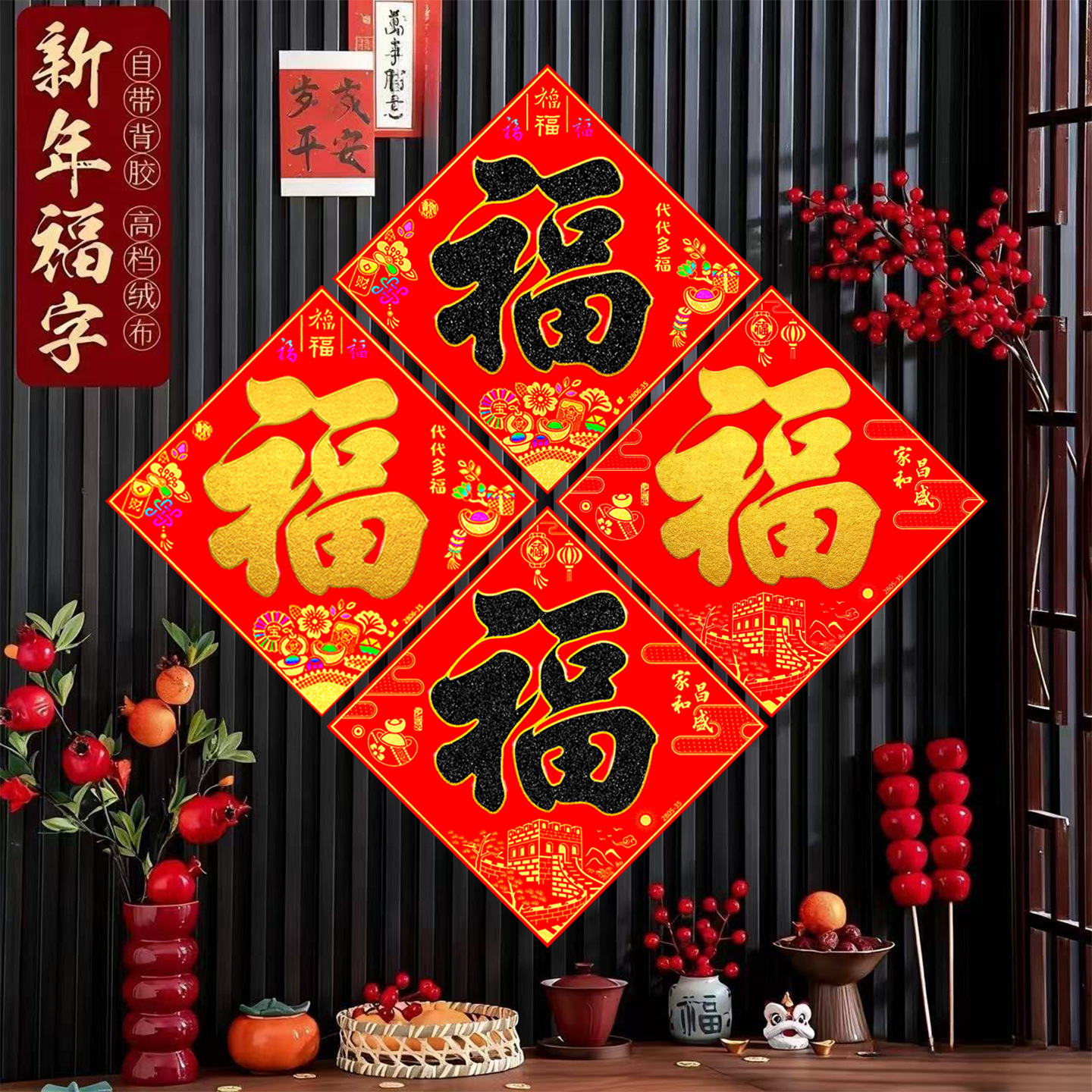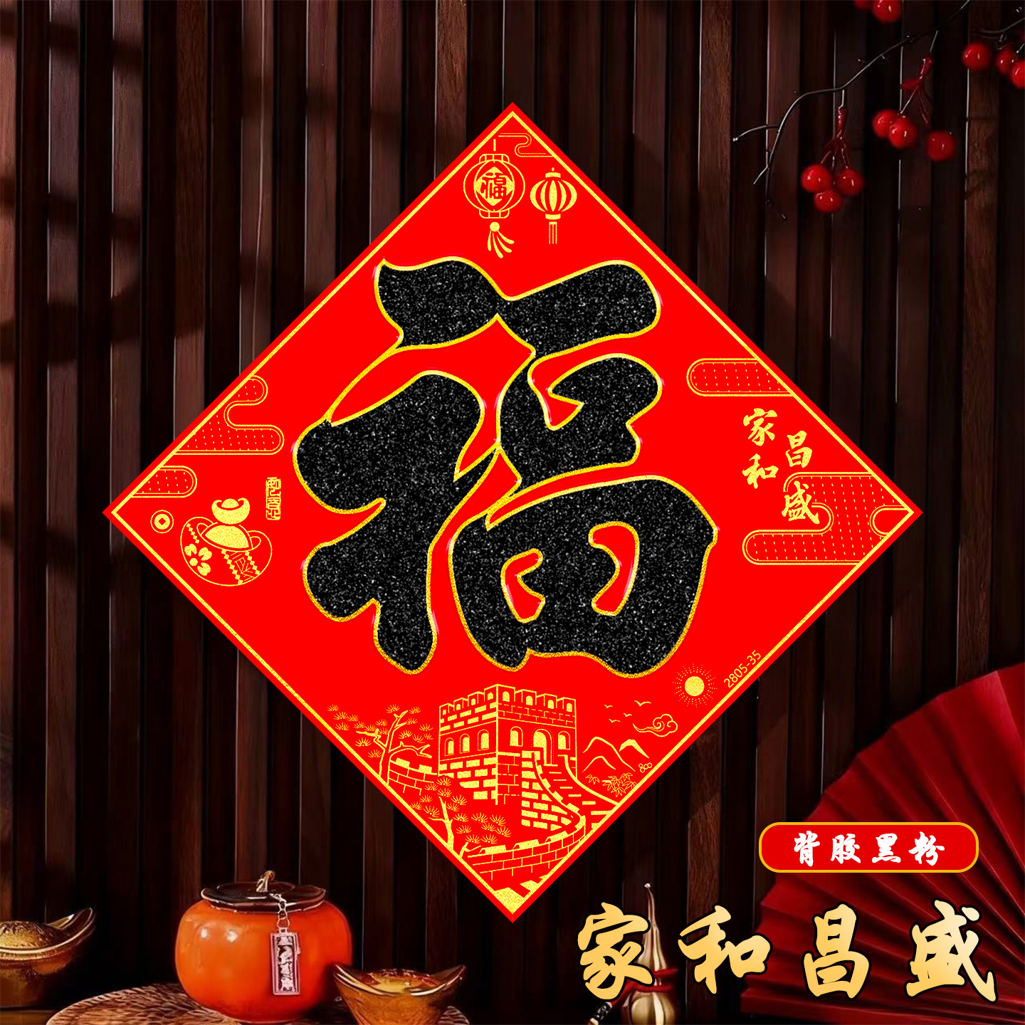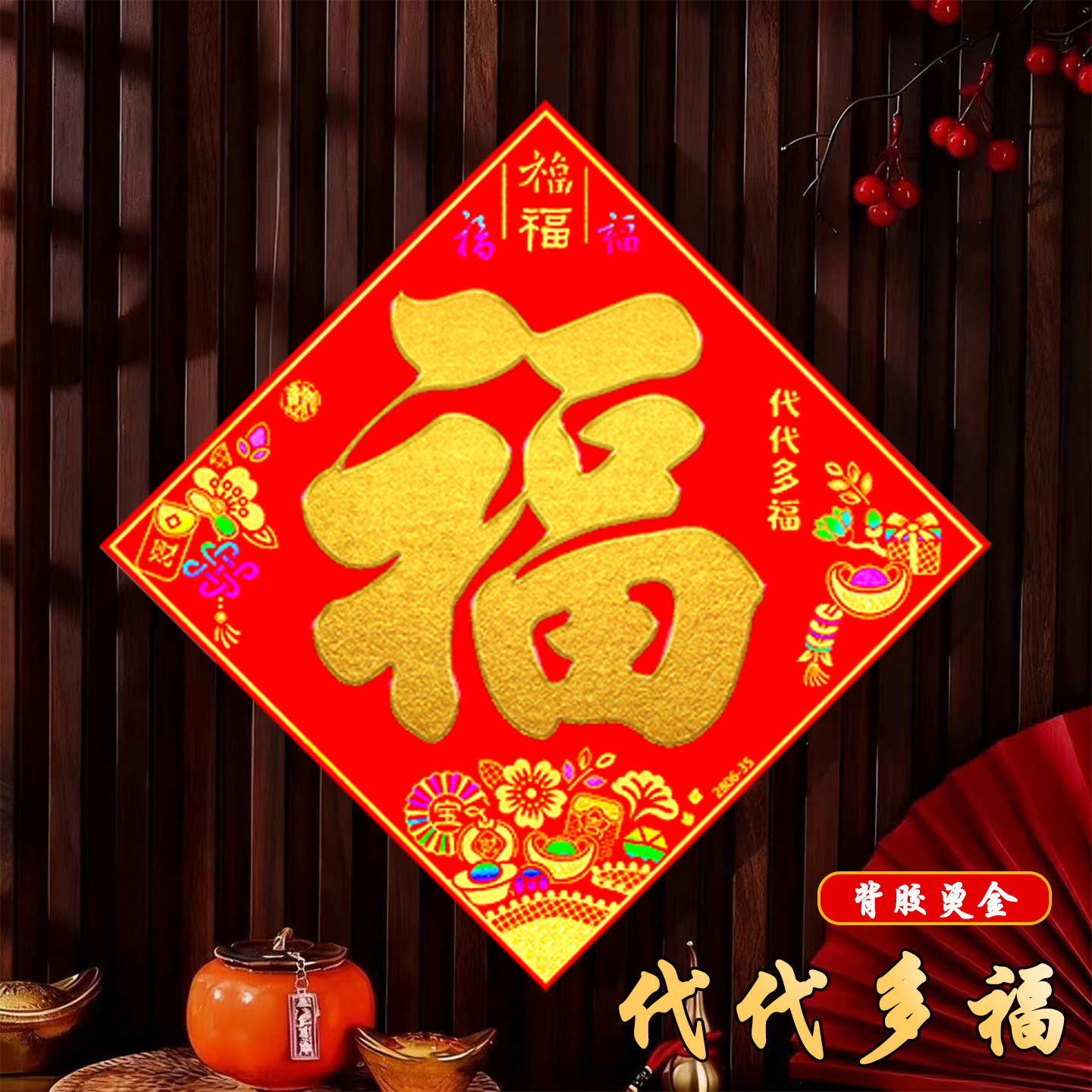2026年马年新款高档绒布福字全背胶自粘门贴春节年货厂家装饰批发