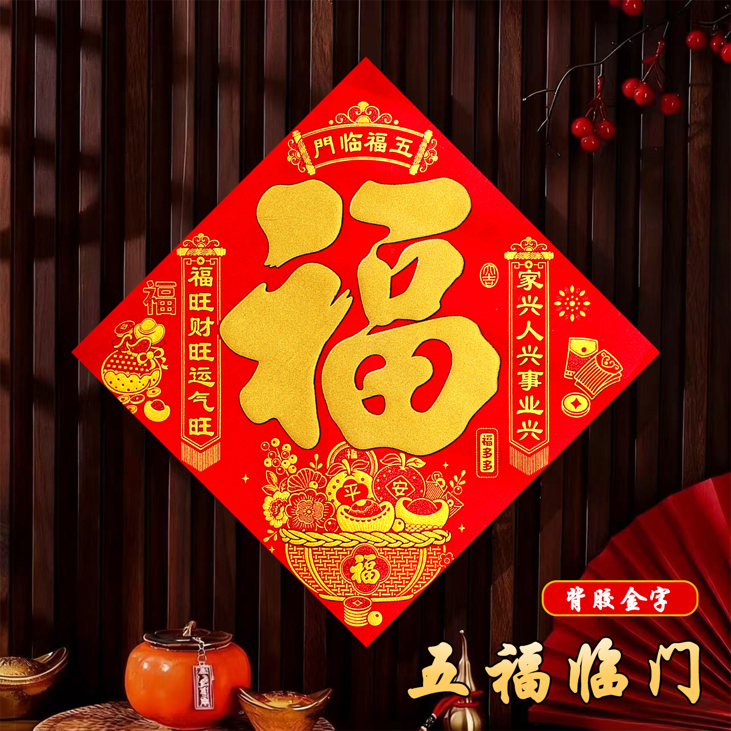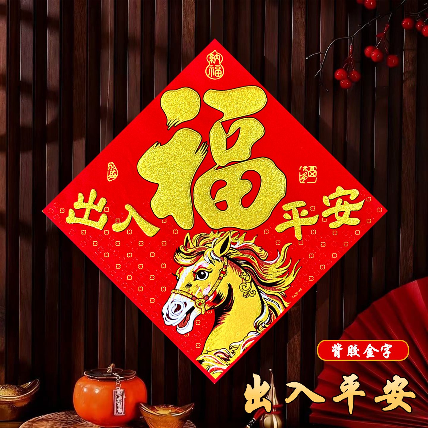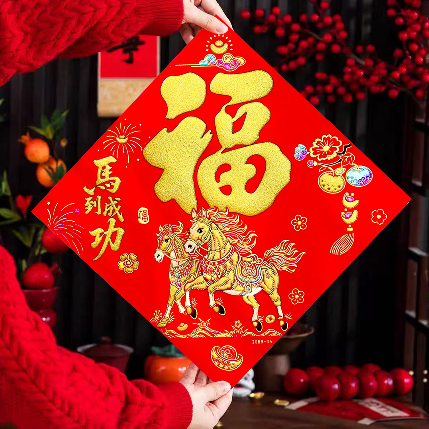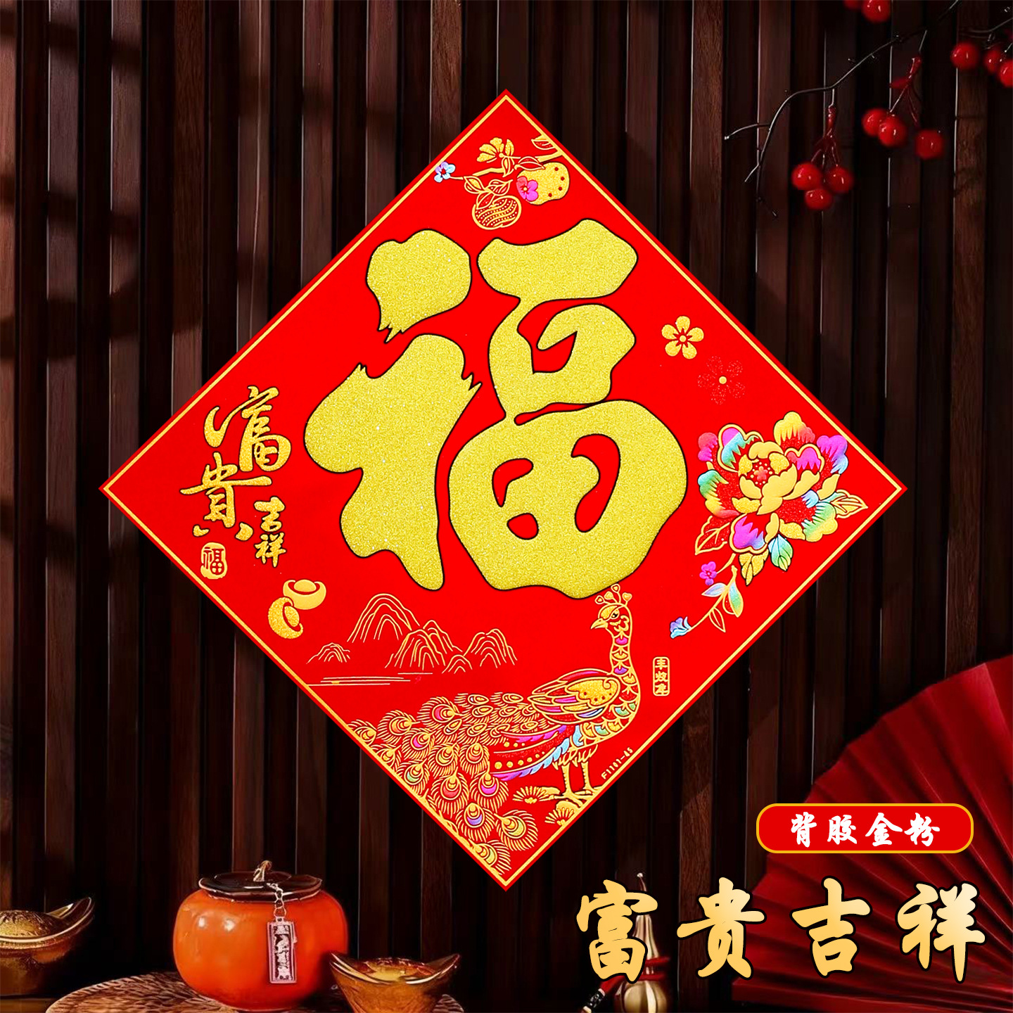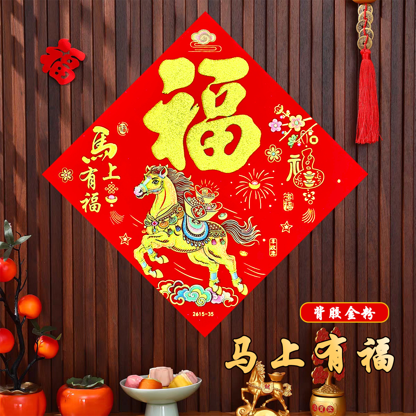 2026年马年新款高档绒布福字全背胶自粘门贴春节年货厂家装饰批发