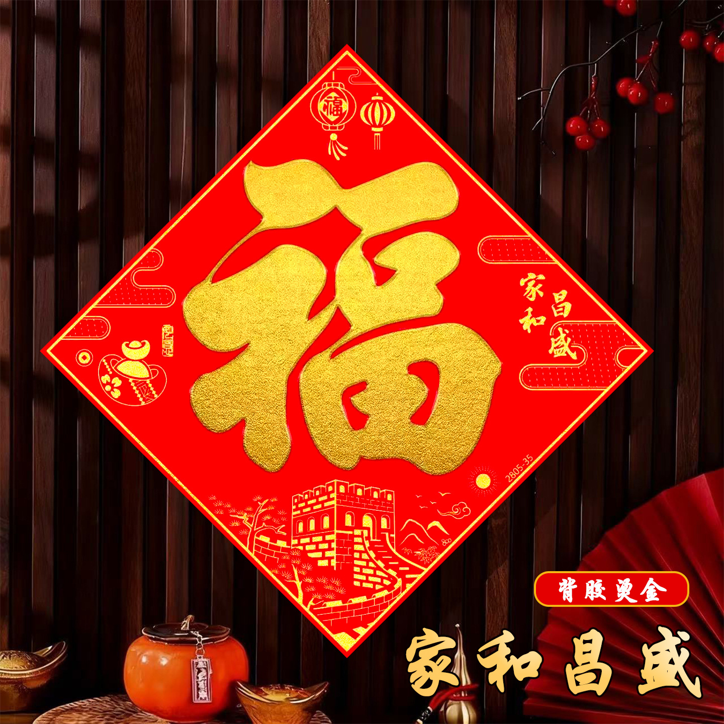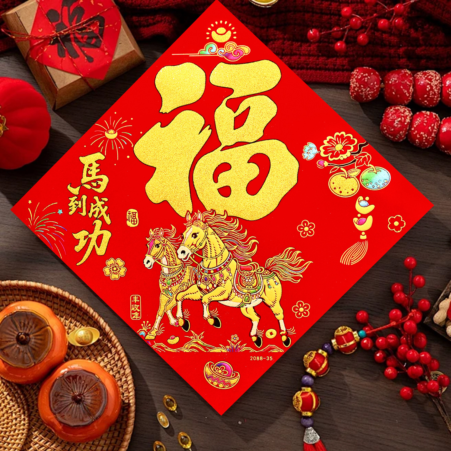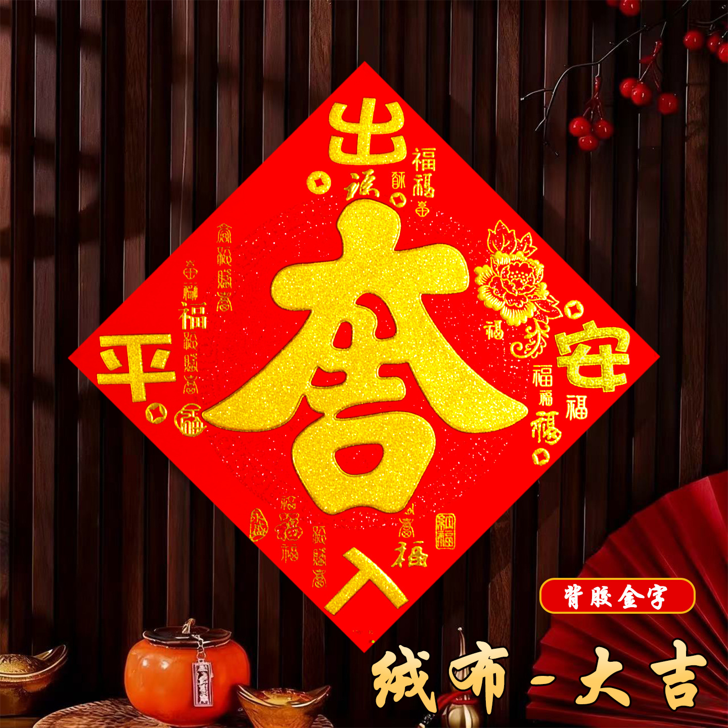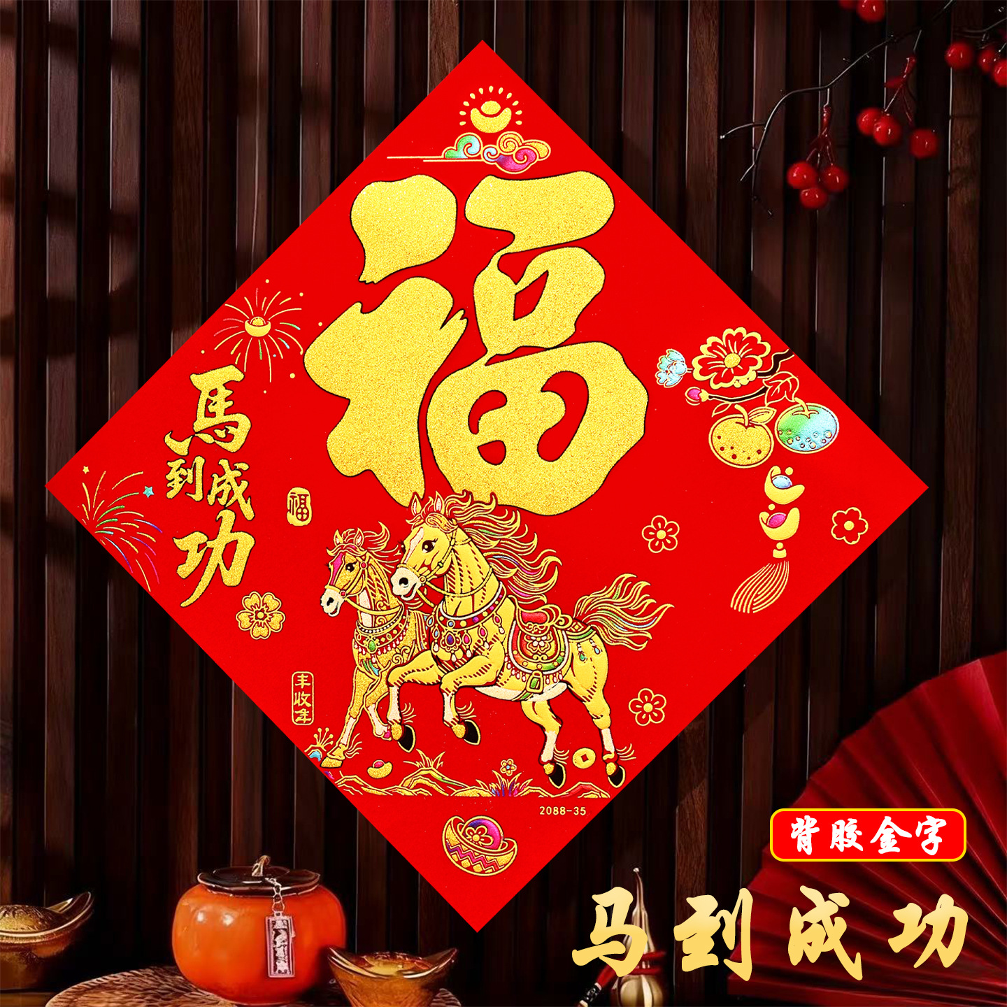 2026年马年新款高档绒布福字全背胶自粘门贴春节年货厂家装饰批发