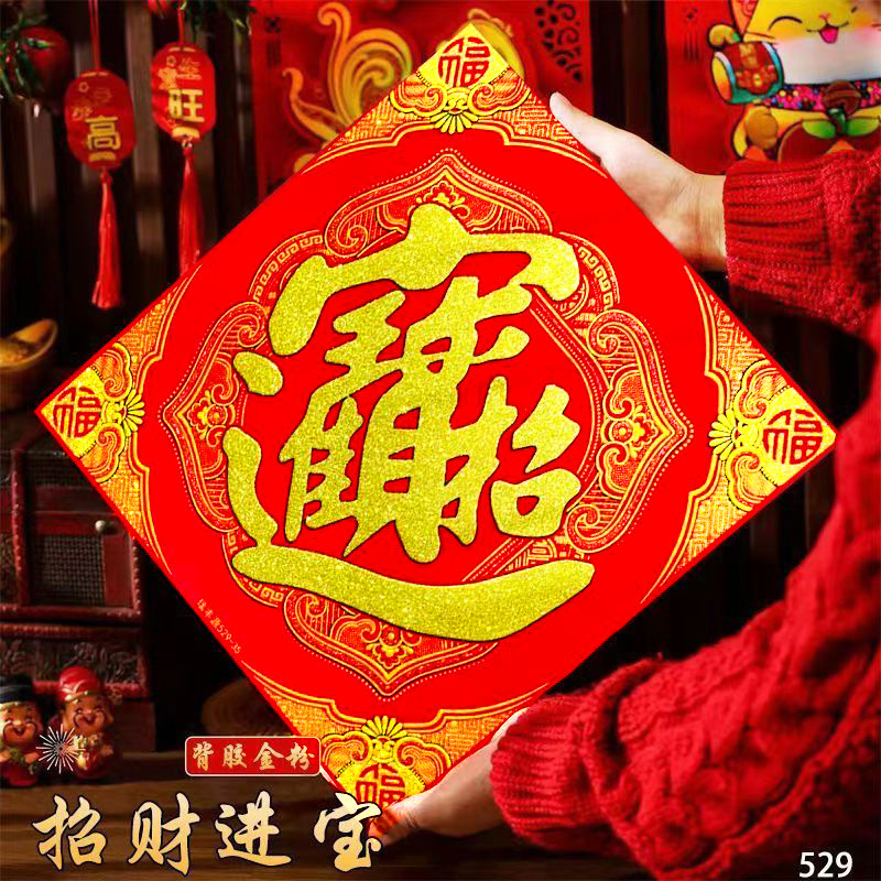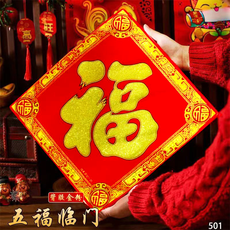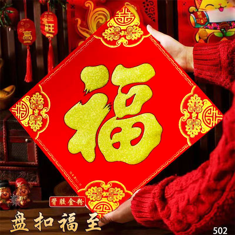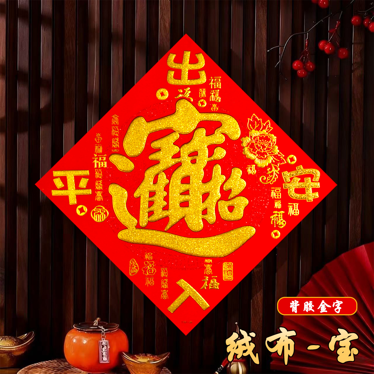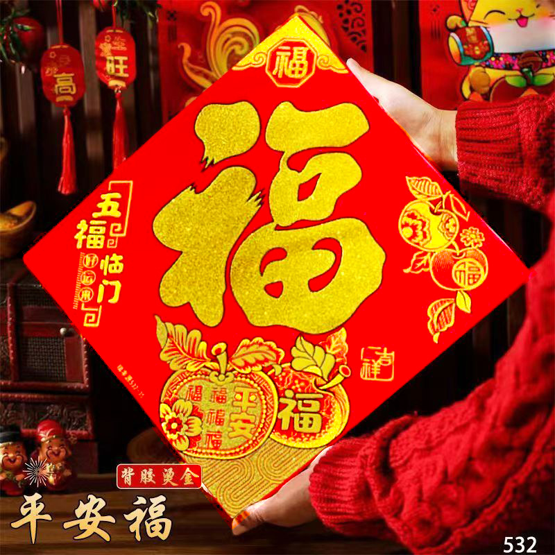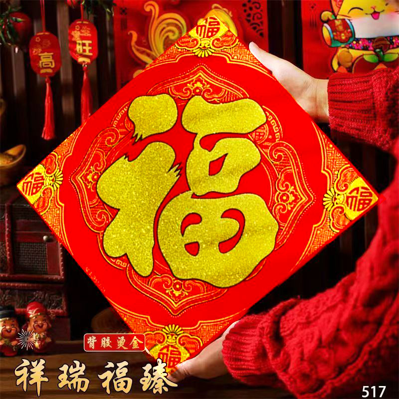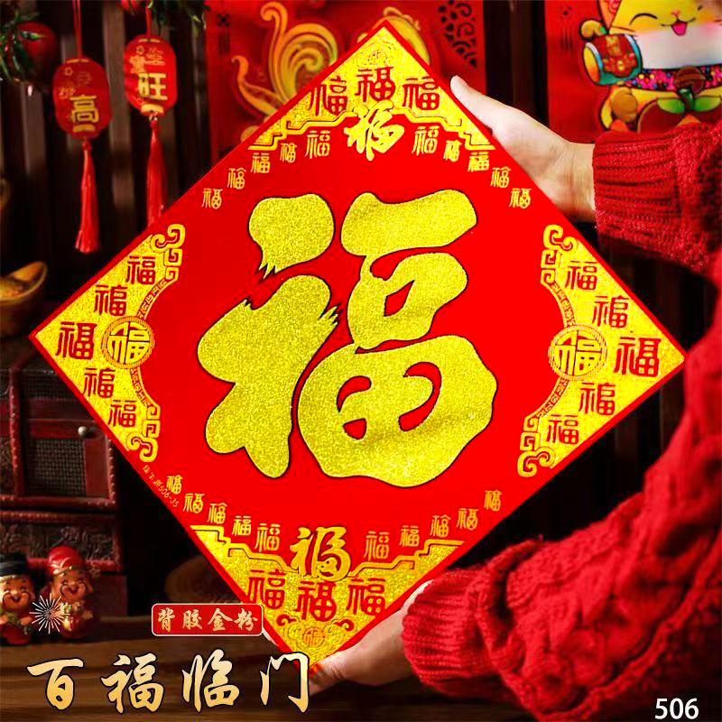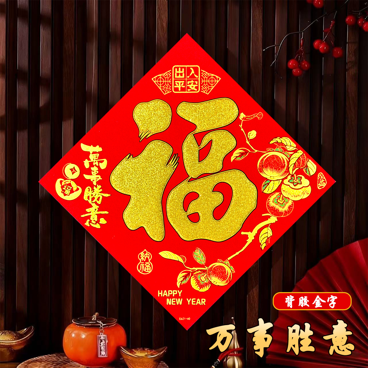 2026年马年新款高档绒布福字全背胶自粘门贴春节年货厂家装饰批发