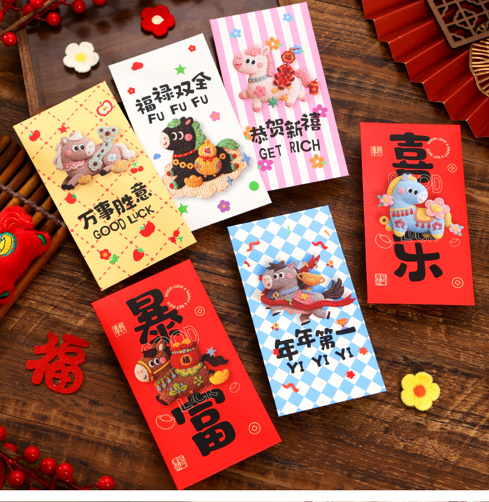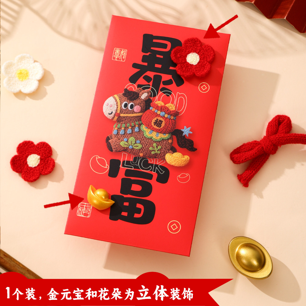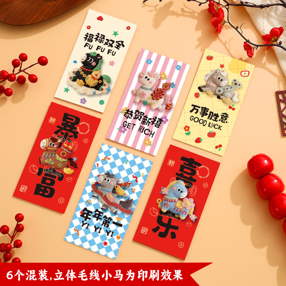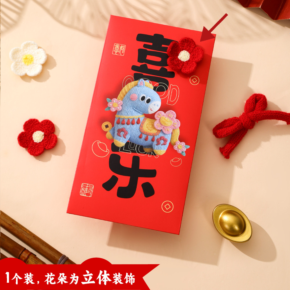 2026新款马年红包袋个性创意立体毛线小马卡通可爱吉祥通用利是封