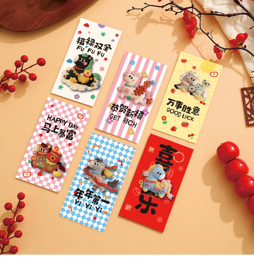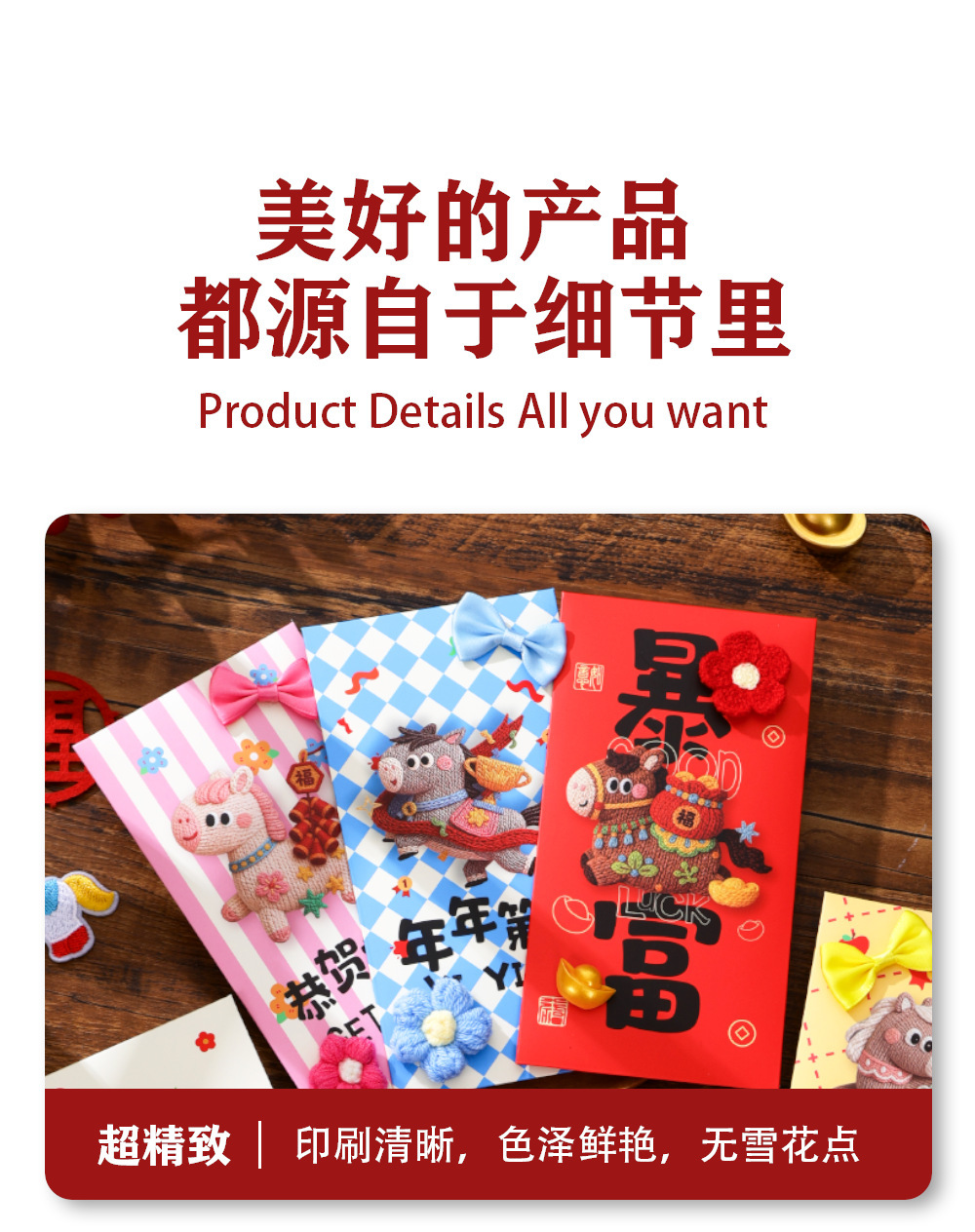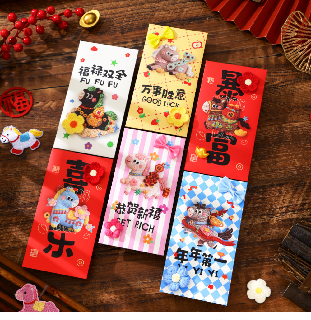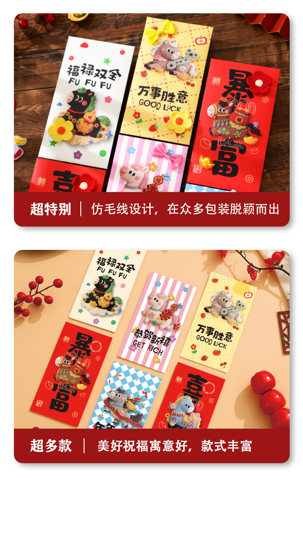2026新款马年红包袋个性创意立体毛线小马卡通可爱吉祥通用利是封