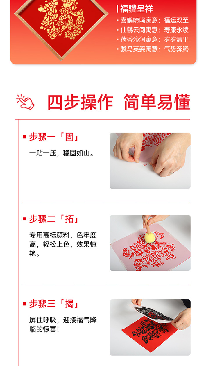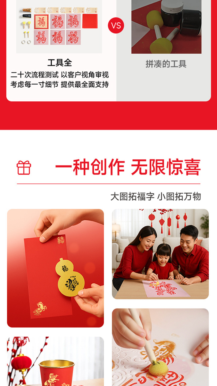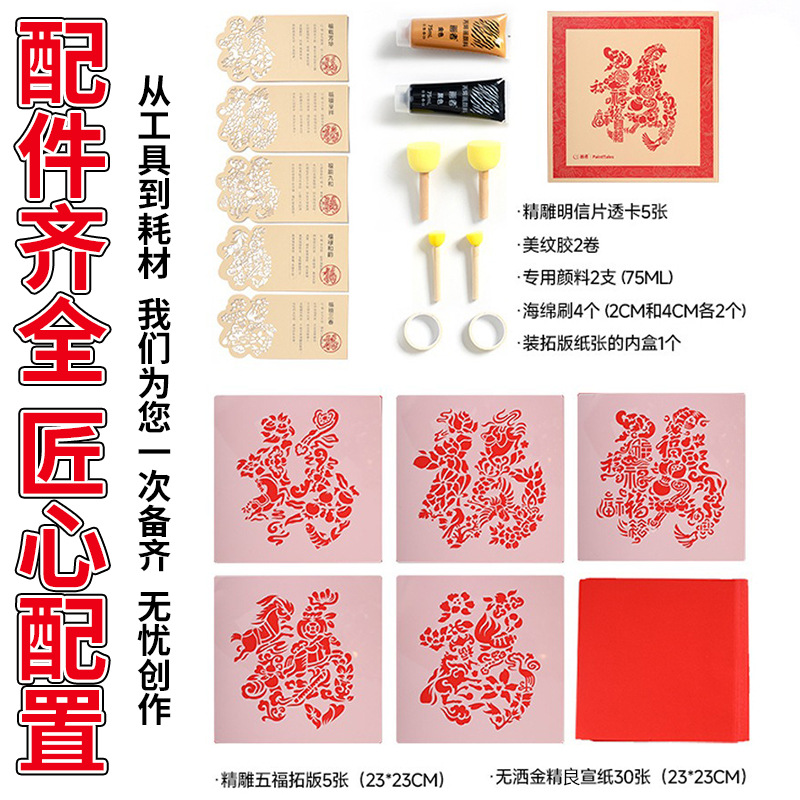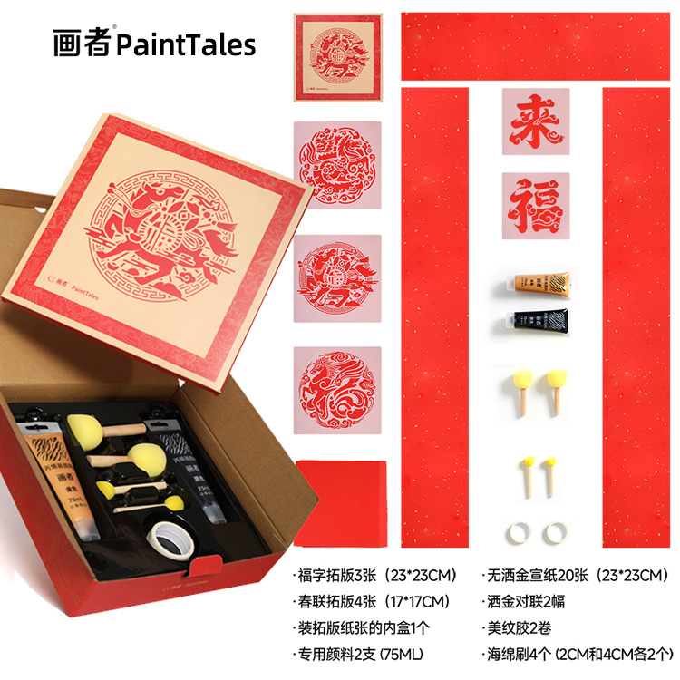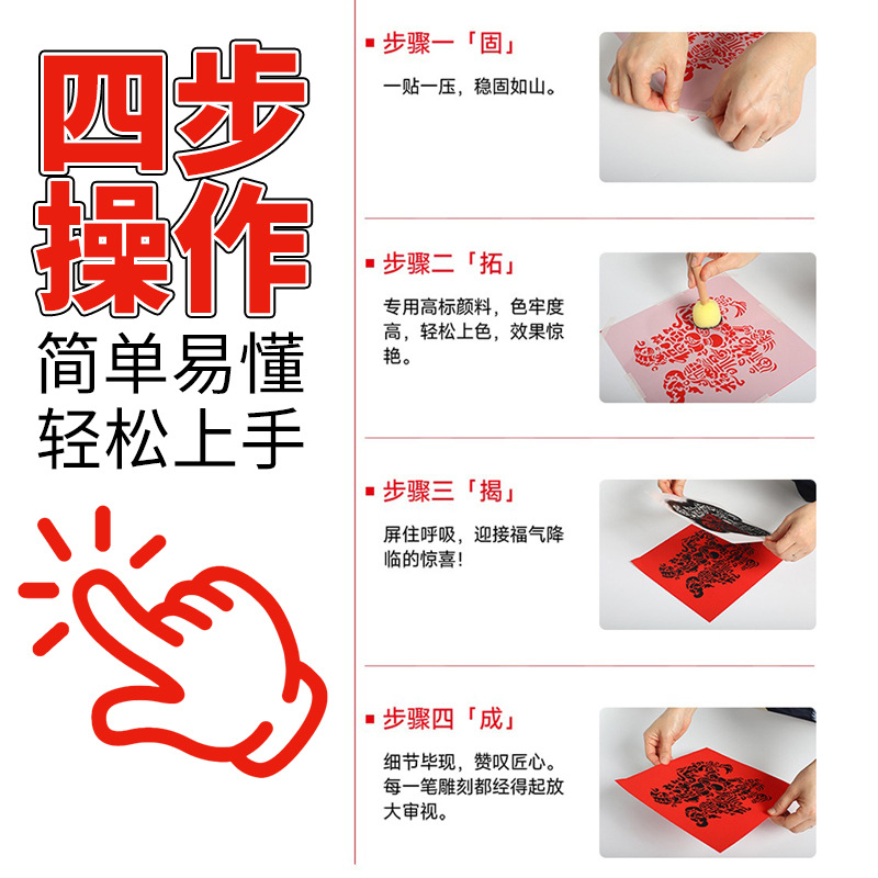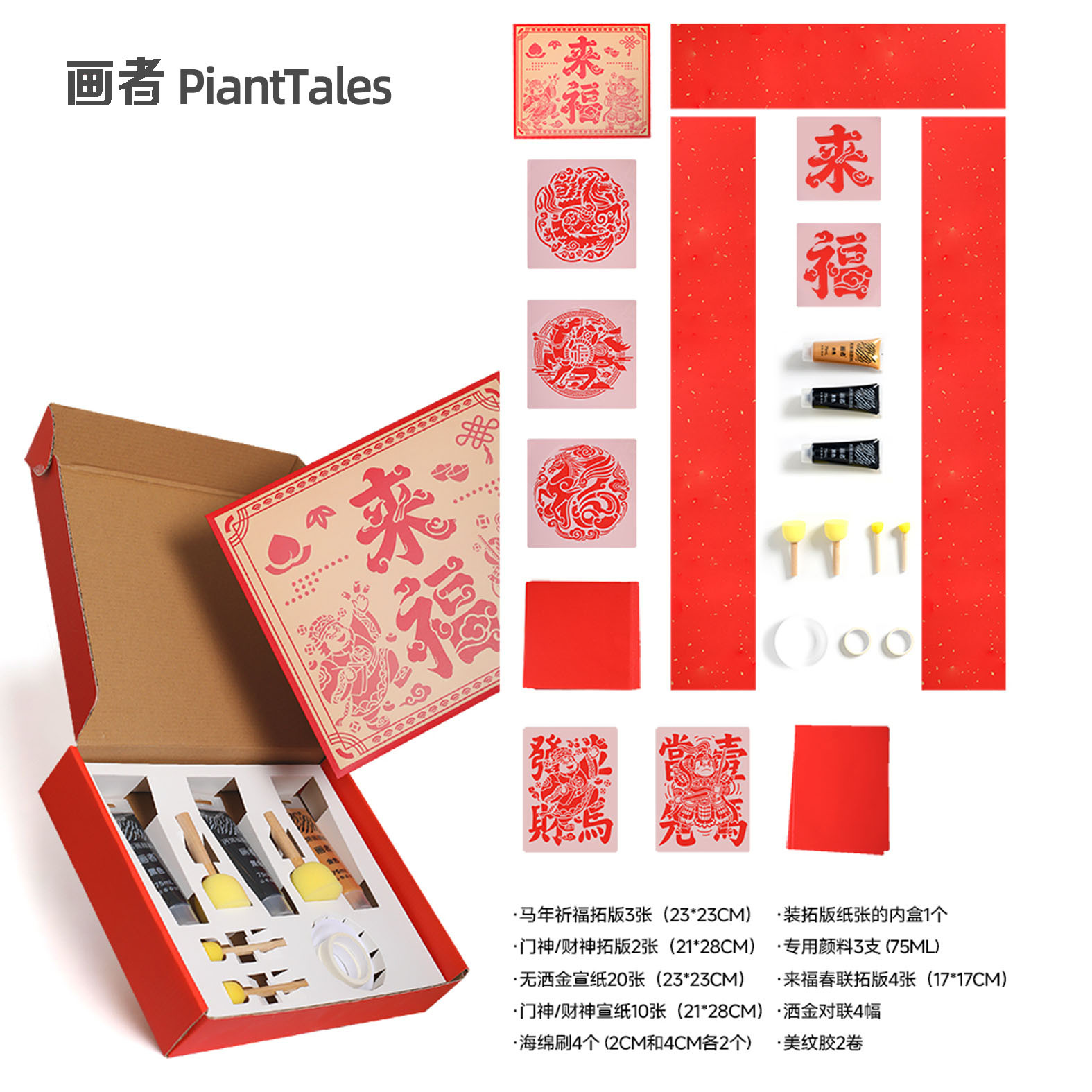 新年福字拓印材料包红色年画/对联diy亲子幼儿园马年手工传统批发