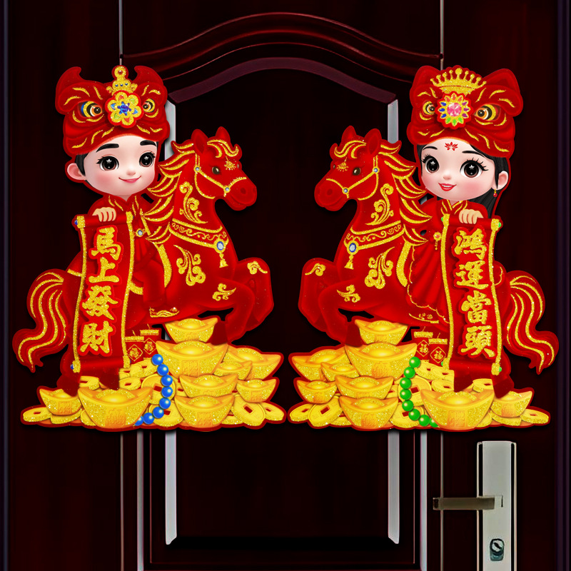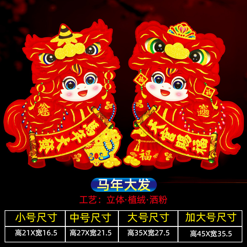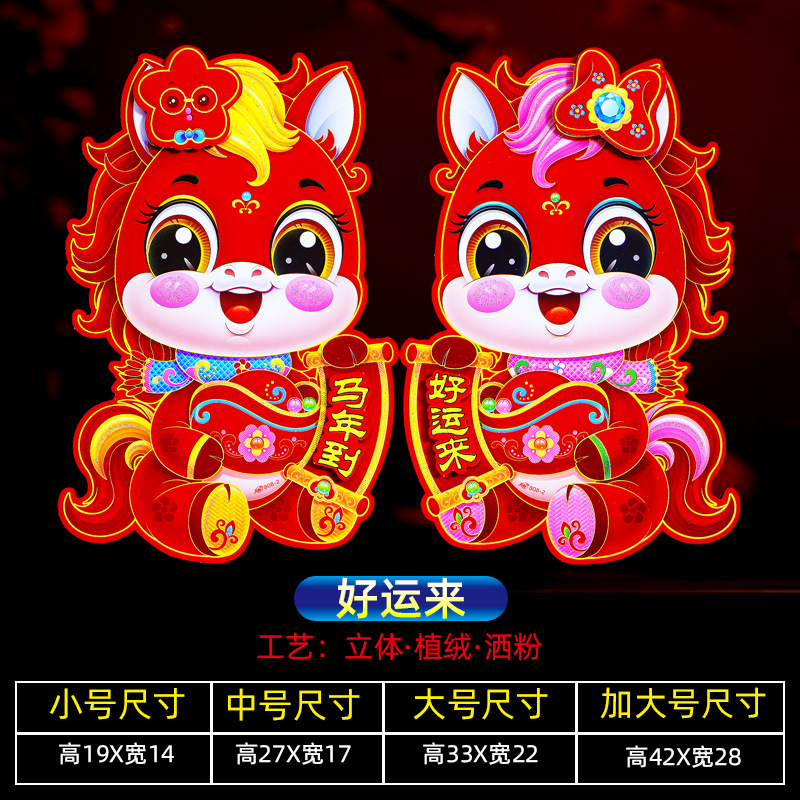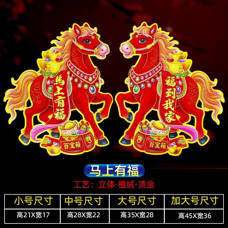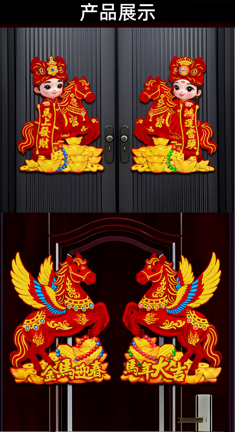 新款植绒立体生肖对贴 2026马年 门贴烫金高档立体生肖门贴装饰