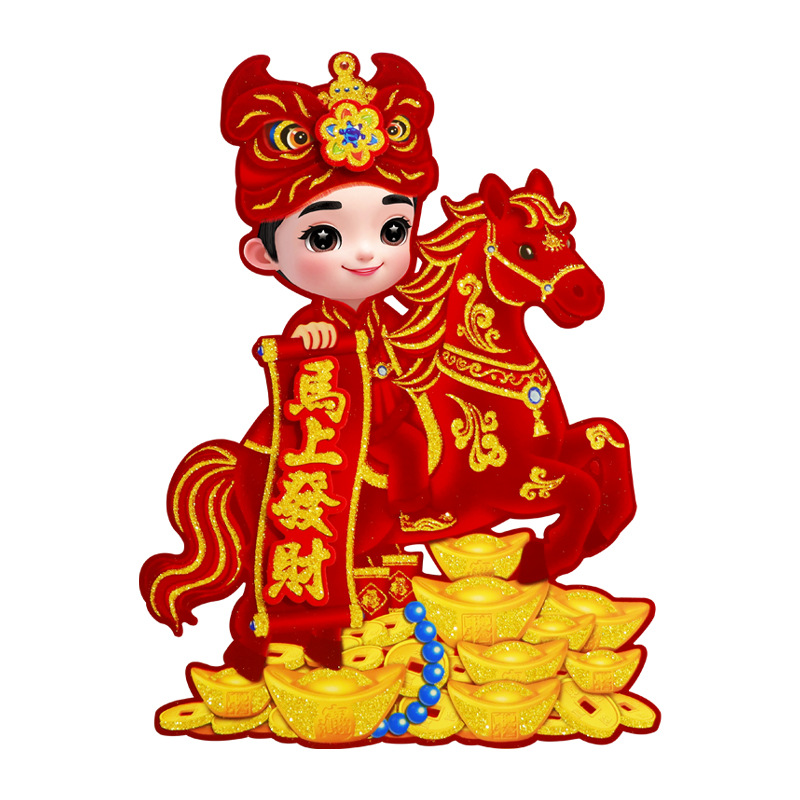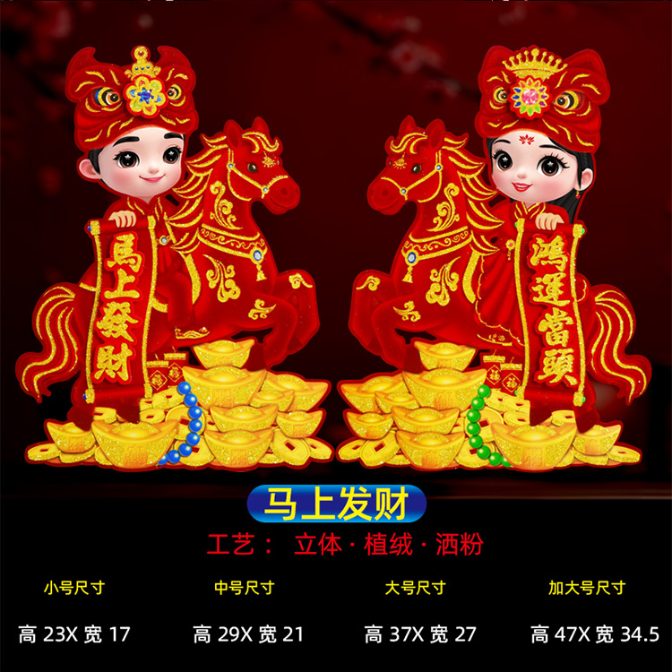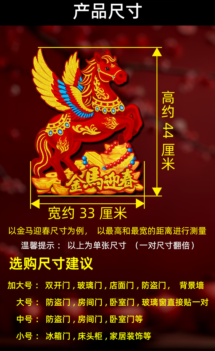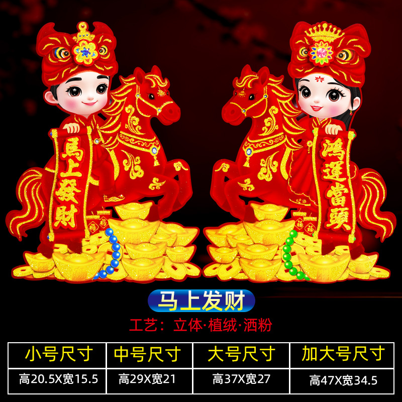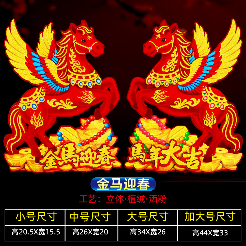 新款植绒立体生肖对贴 2026马年 门贴烫金高档立体生肖门贴装饰