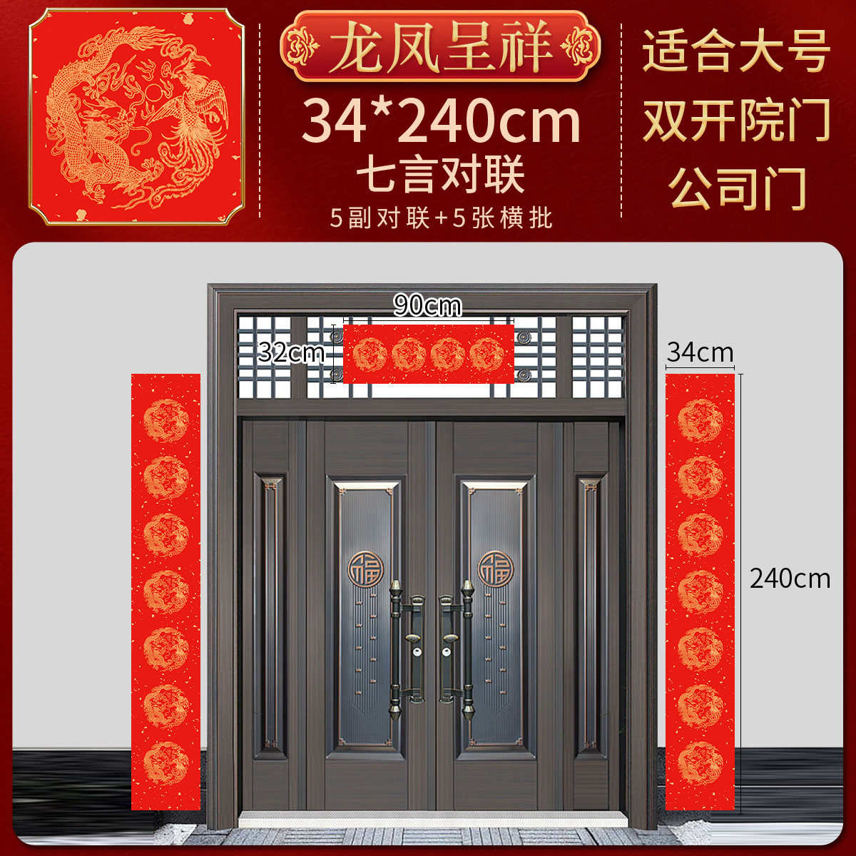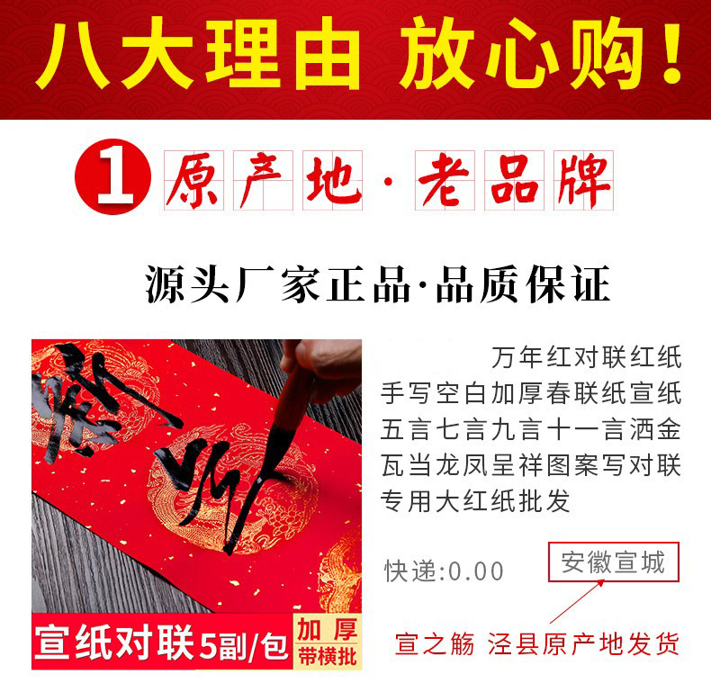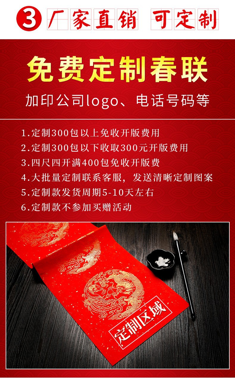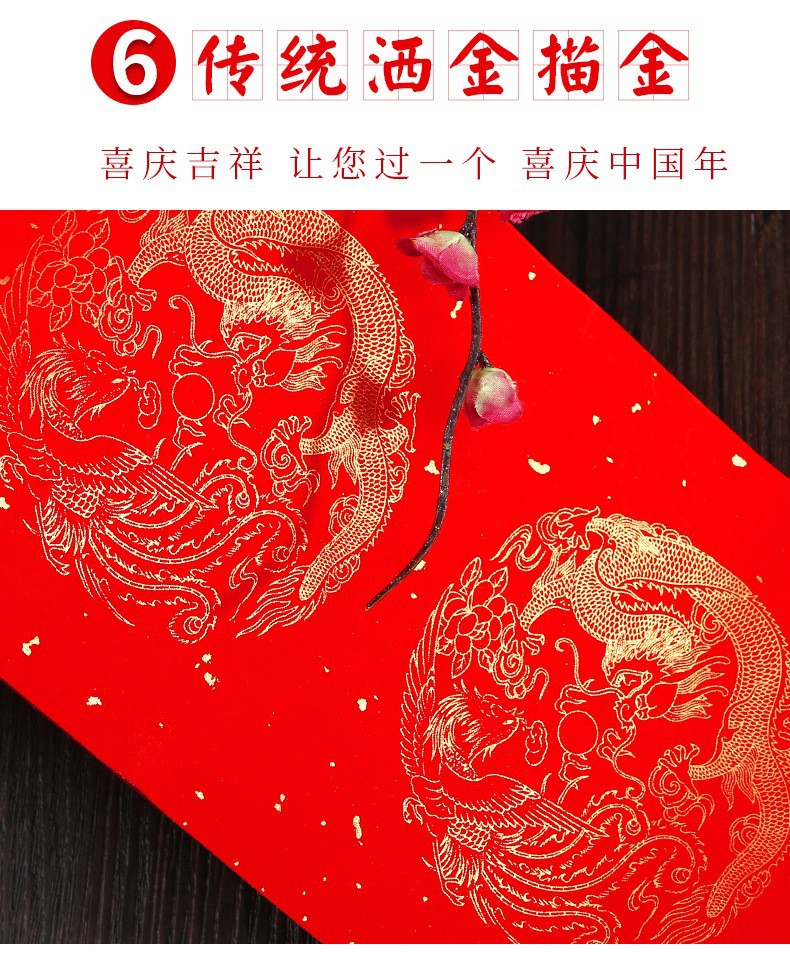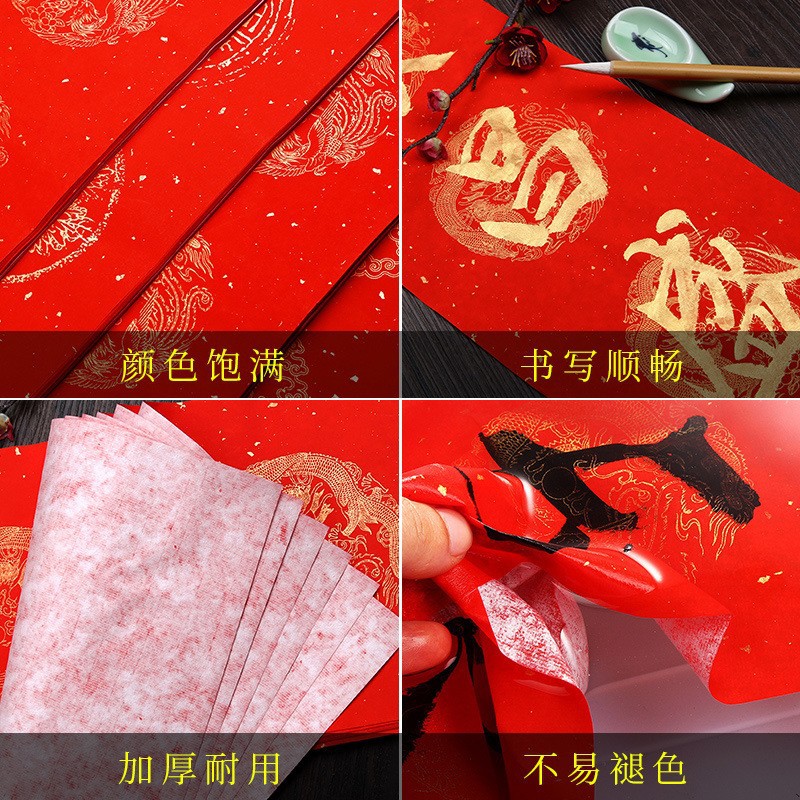 加厚2026马年万年红对联纸手写空白春联五言七言对联福字龙凤烫金