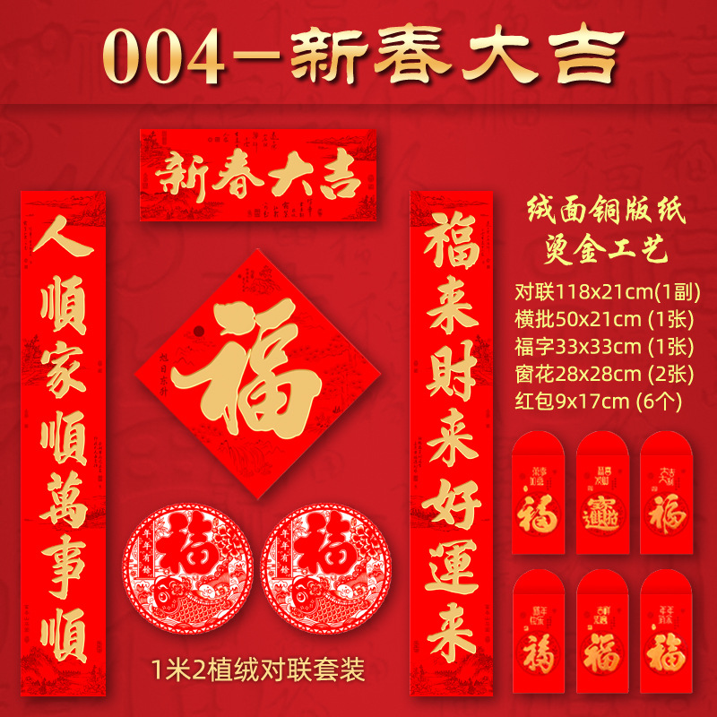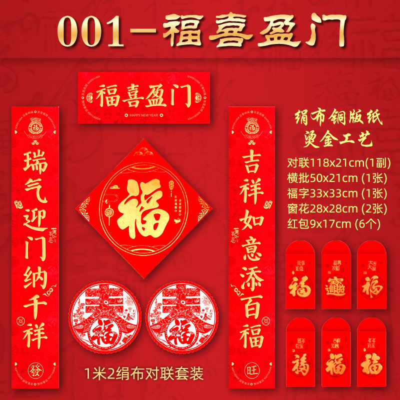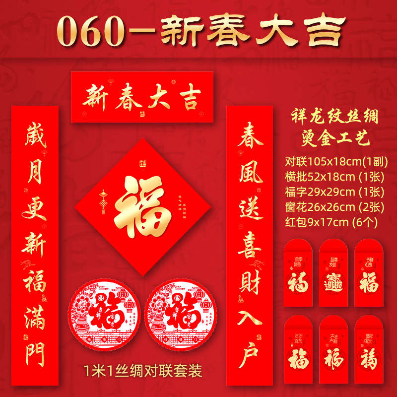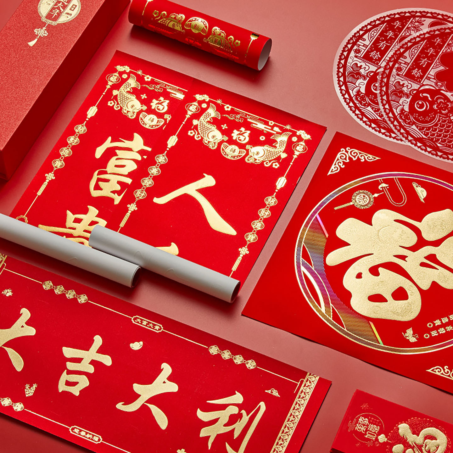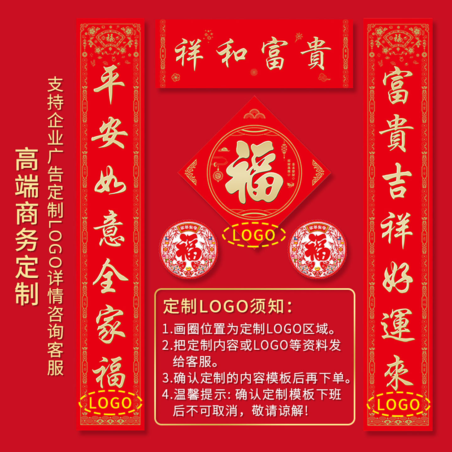 2026春节广告对联加印logo马年大礼包福袋筒烫金植绒丝绸春联礼盒