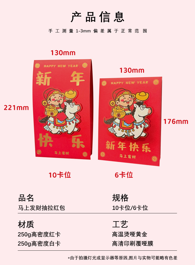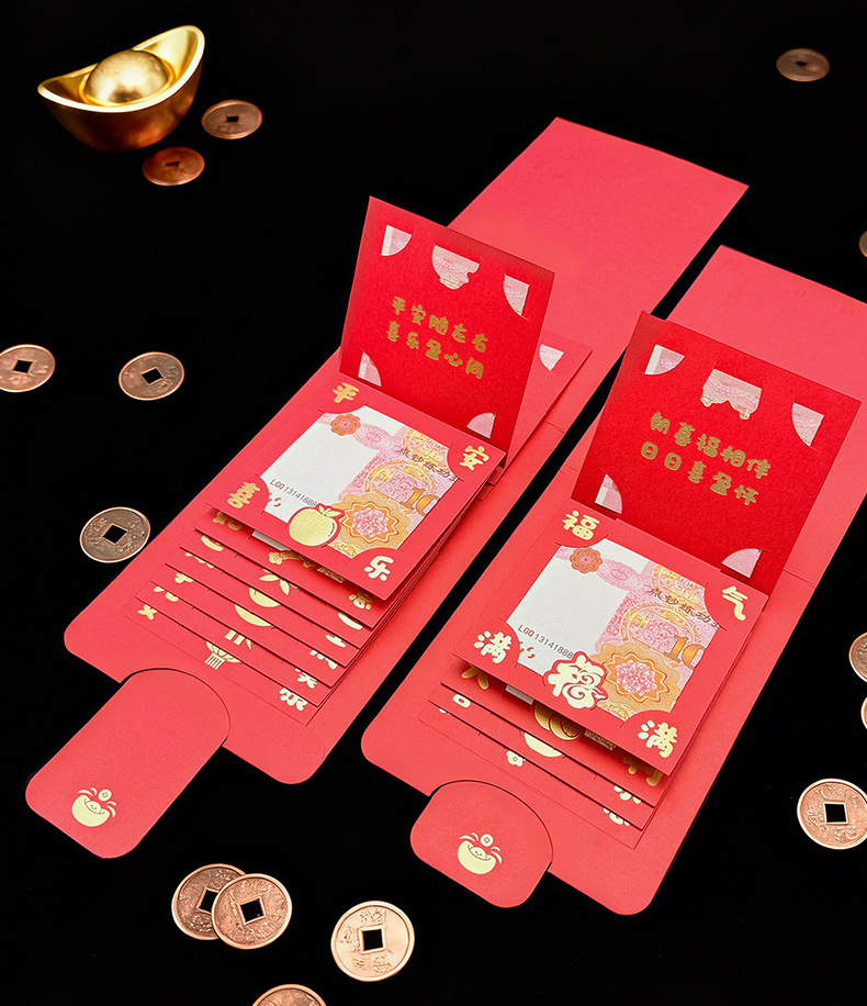 2026马年抽拉卡位红包袋个性创意春节过年儿童压岁钱袋打印利是封