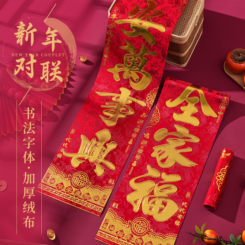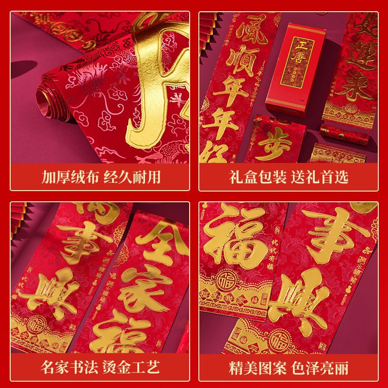 新春布置全背胶绒布对联马年春节门联2026新年装饰春联自粘大门贴