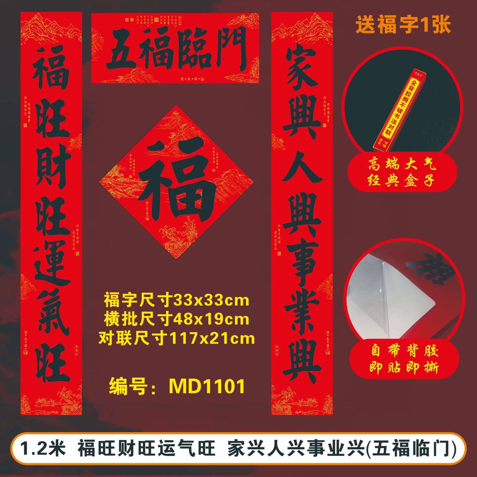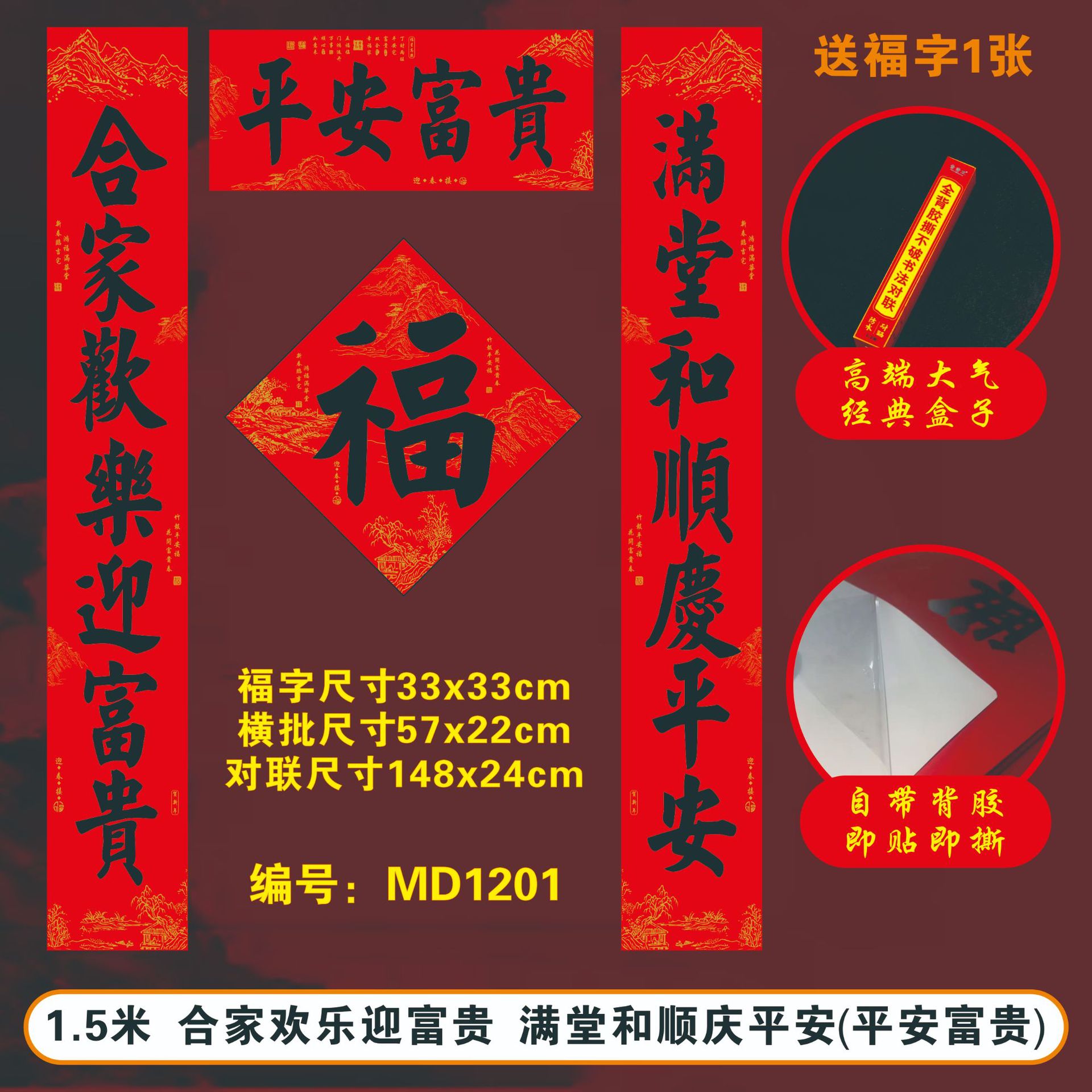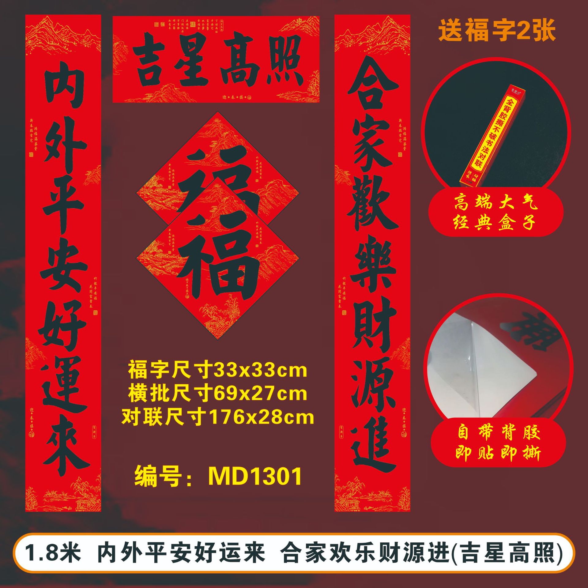 2026马年春节全背胶对联耐晒不褪色撕不破大门春联厂家过年货批发