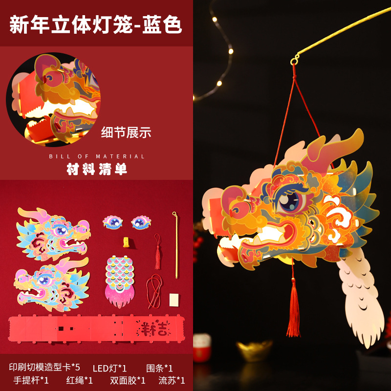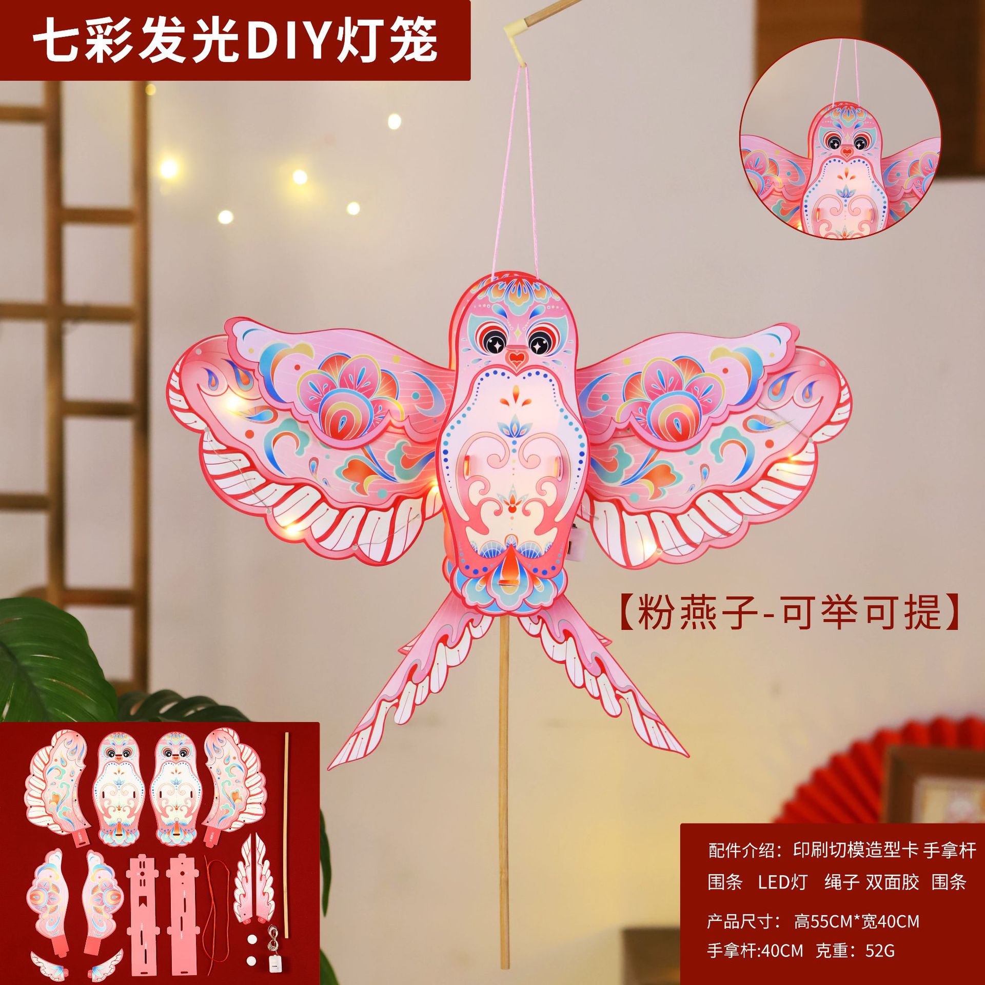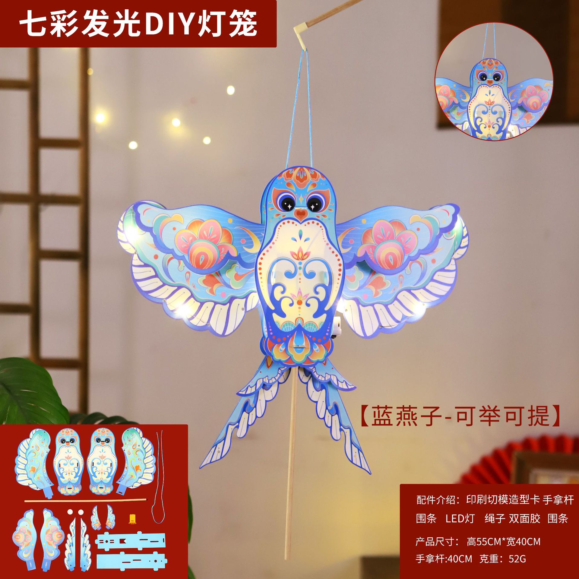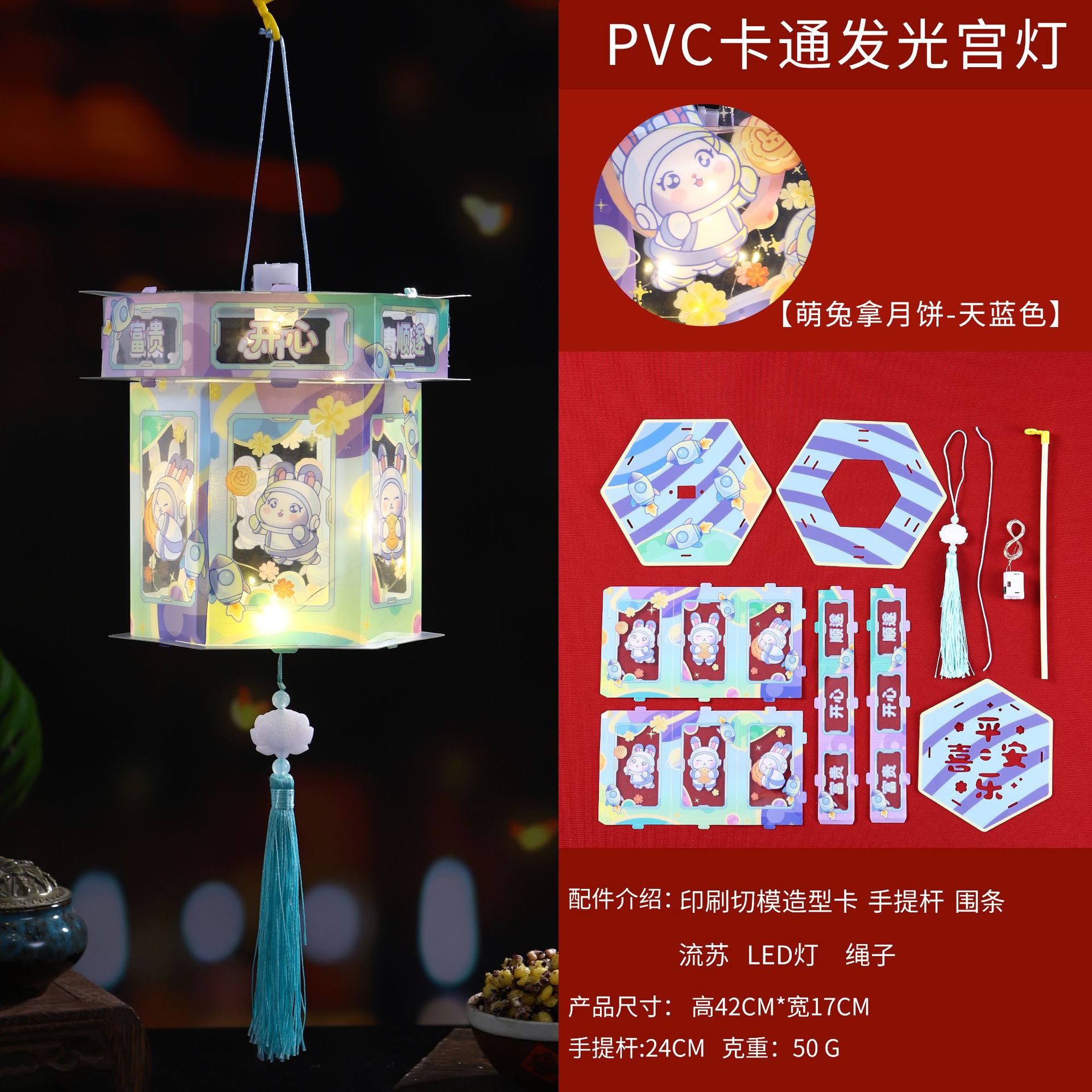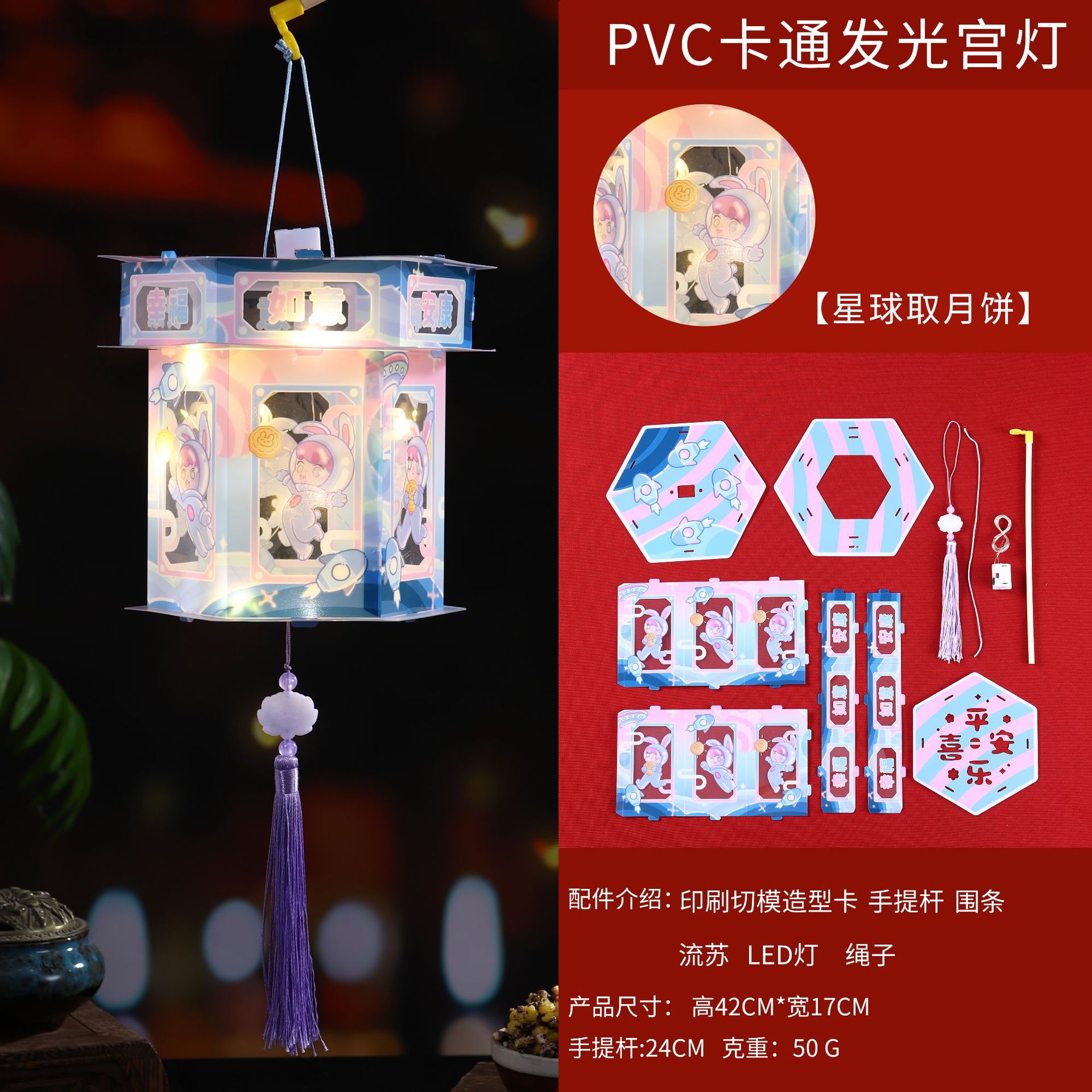 中秋节灯笼儿童手提花灯diy材料包360度旋转风车发光灯笼摆摊灯笼