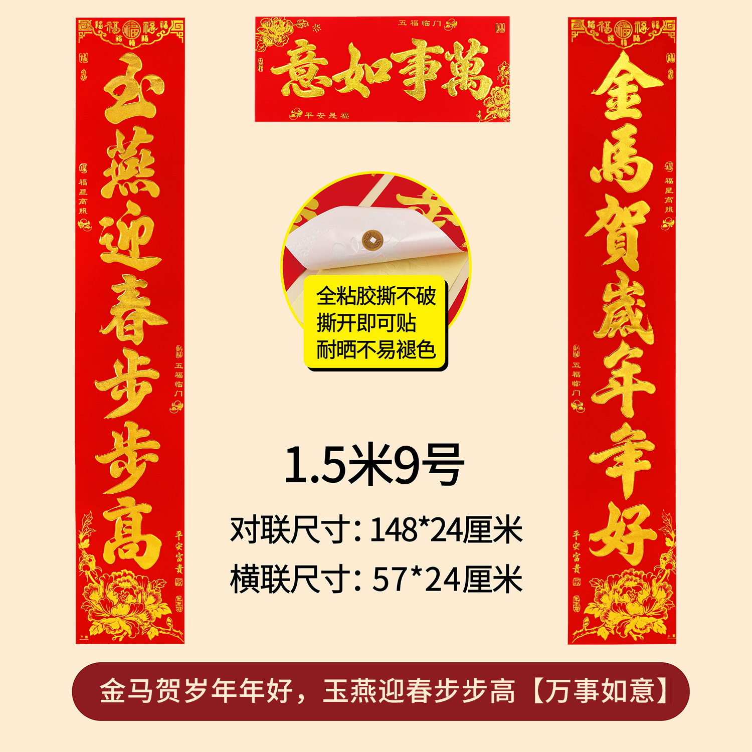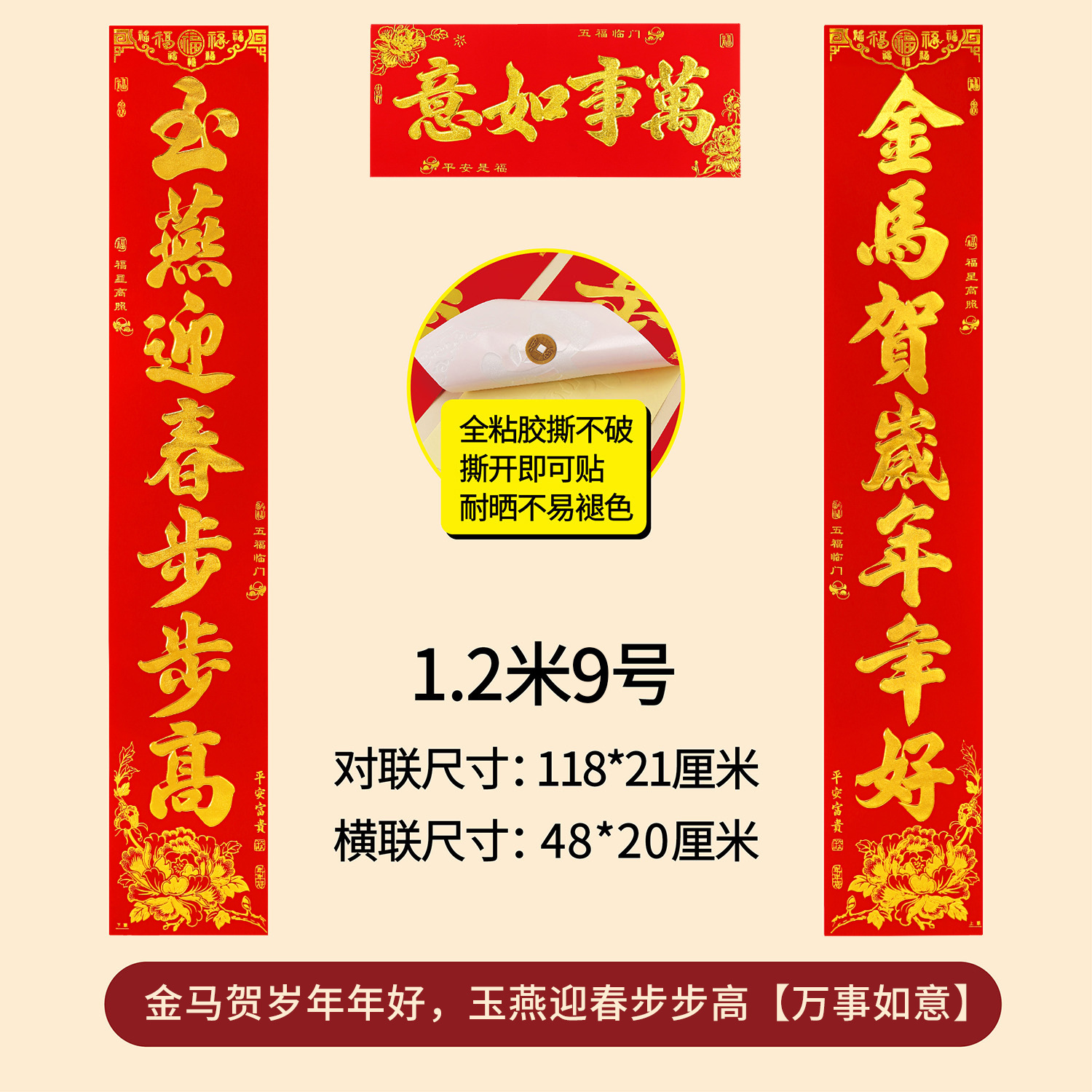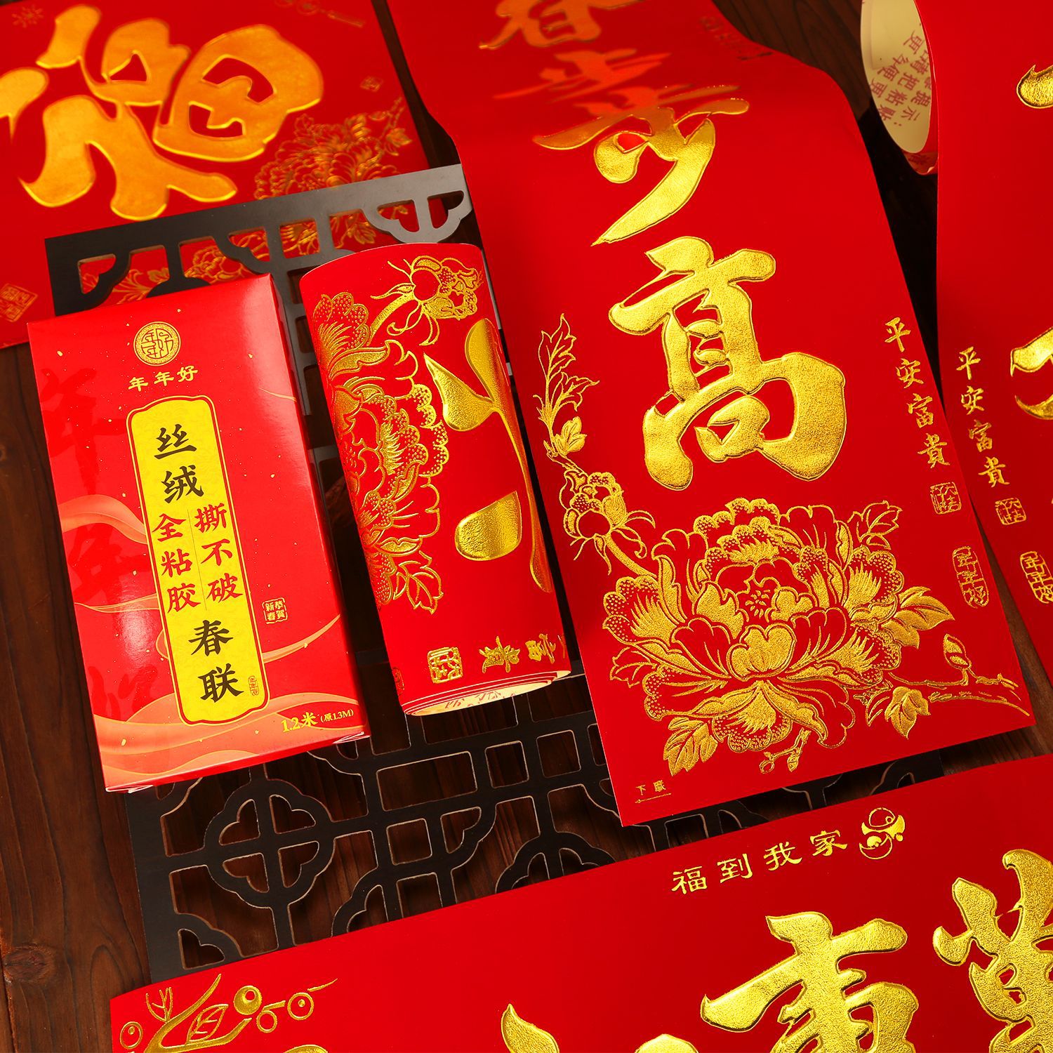马年对联2026年年好全背胶对联丝绒金字烫金对联礼盒自粘撕不破