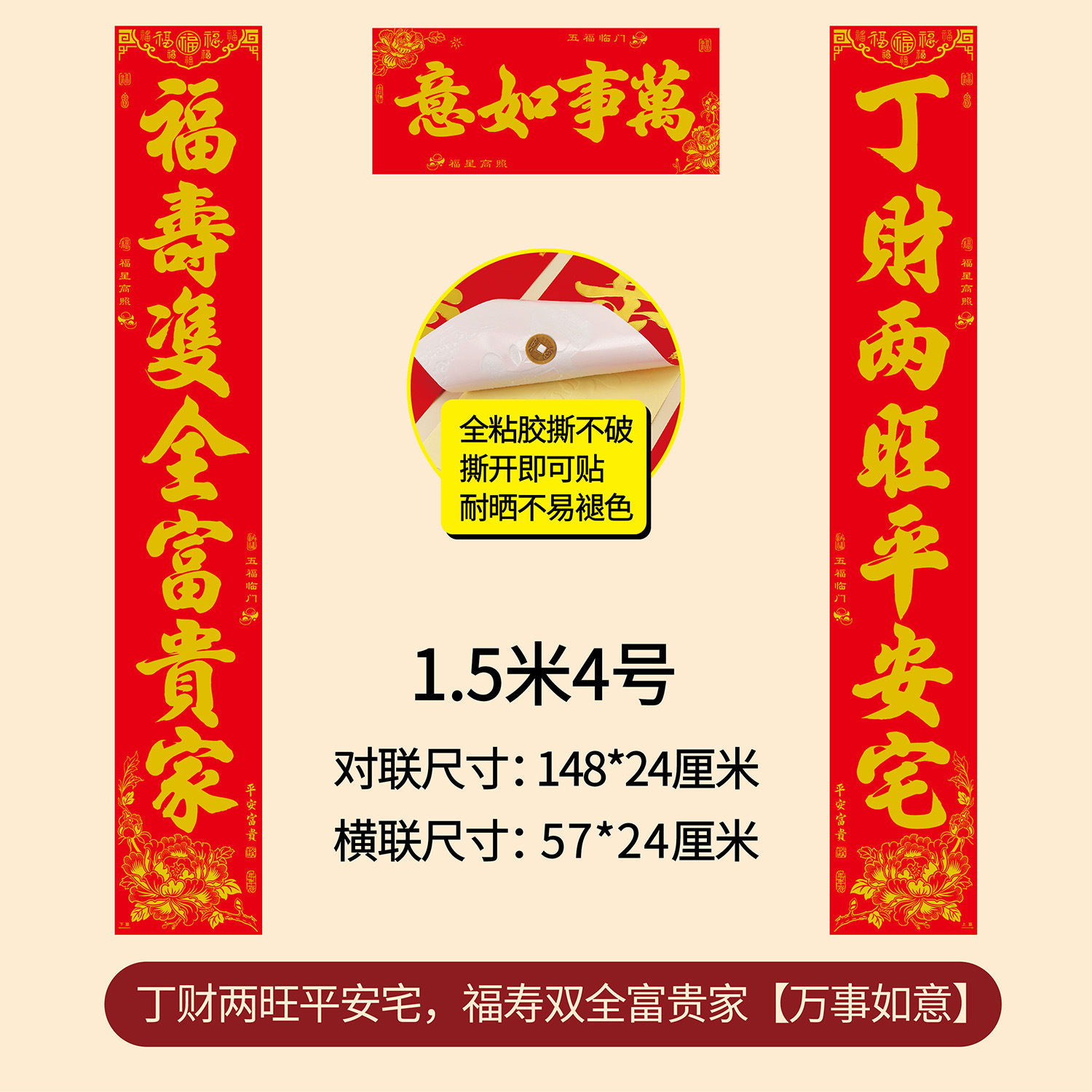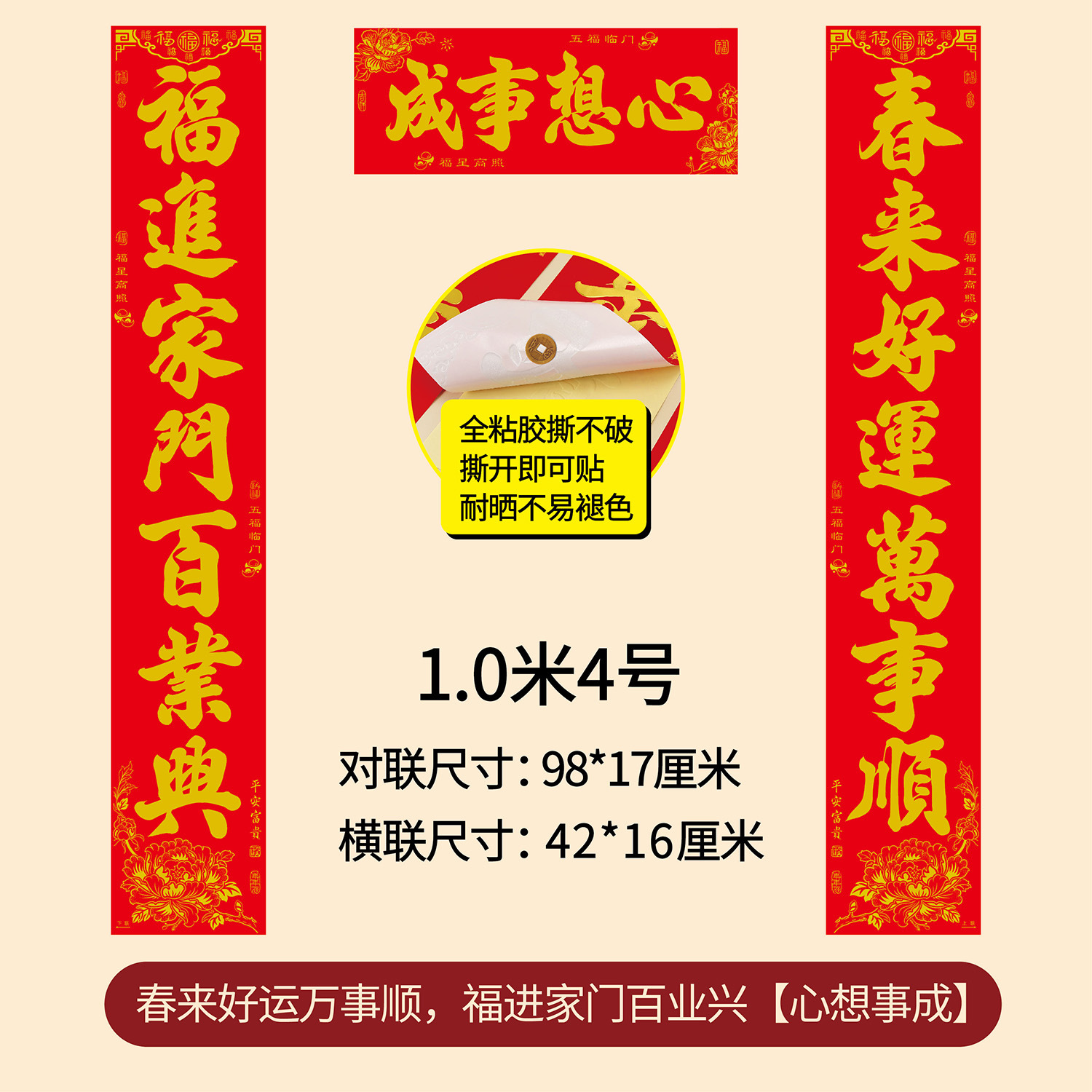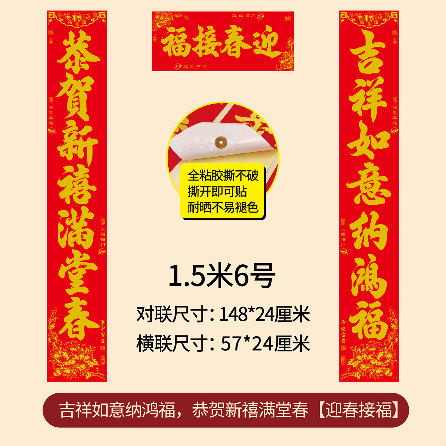 马年对联2026年年好全背胶对联丝绒金字烫金对联礼盒自粘撕不破