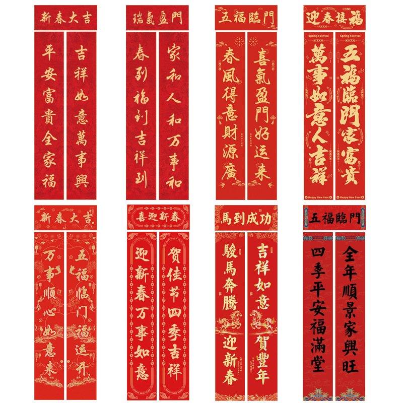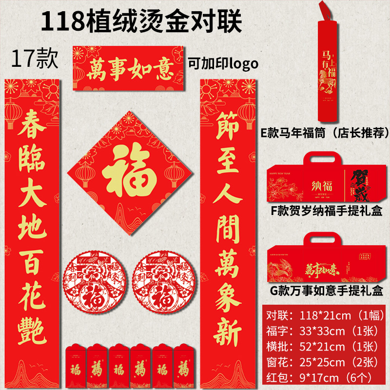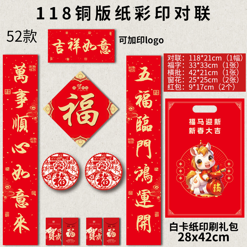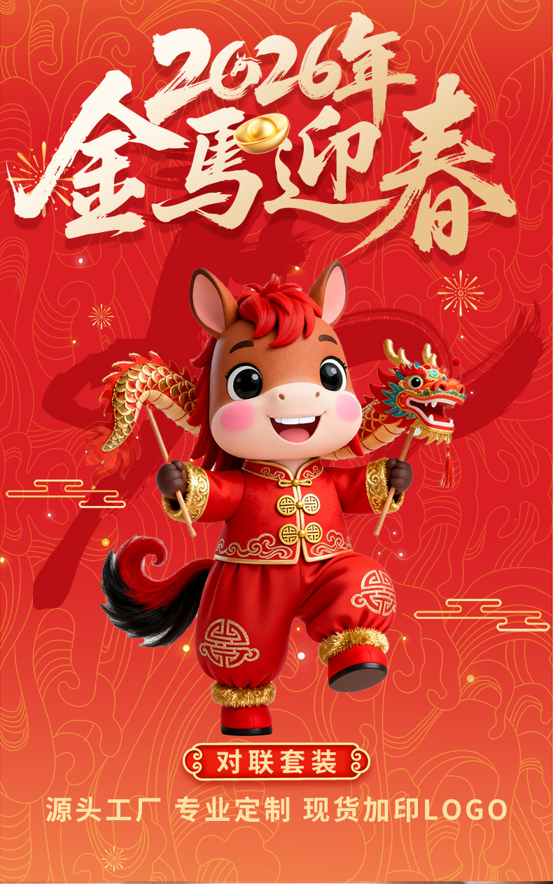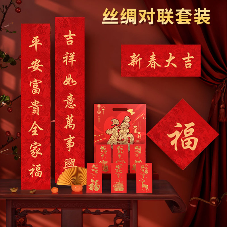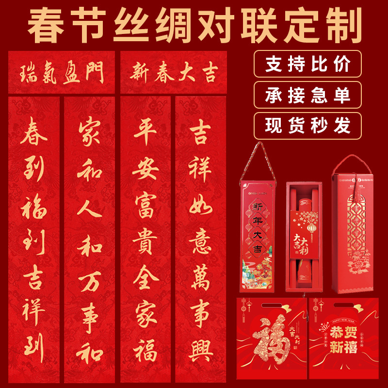 2026马年丝绸对联定制植绒高档礼盒烫金春联批货龙纹布对联大礼包