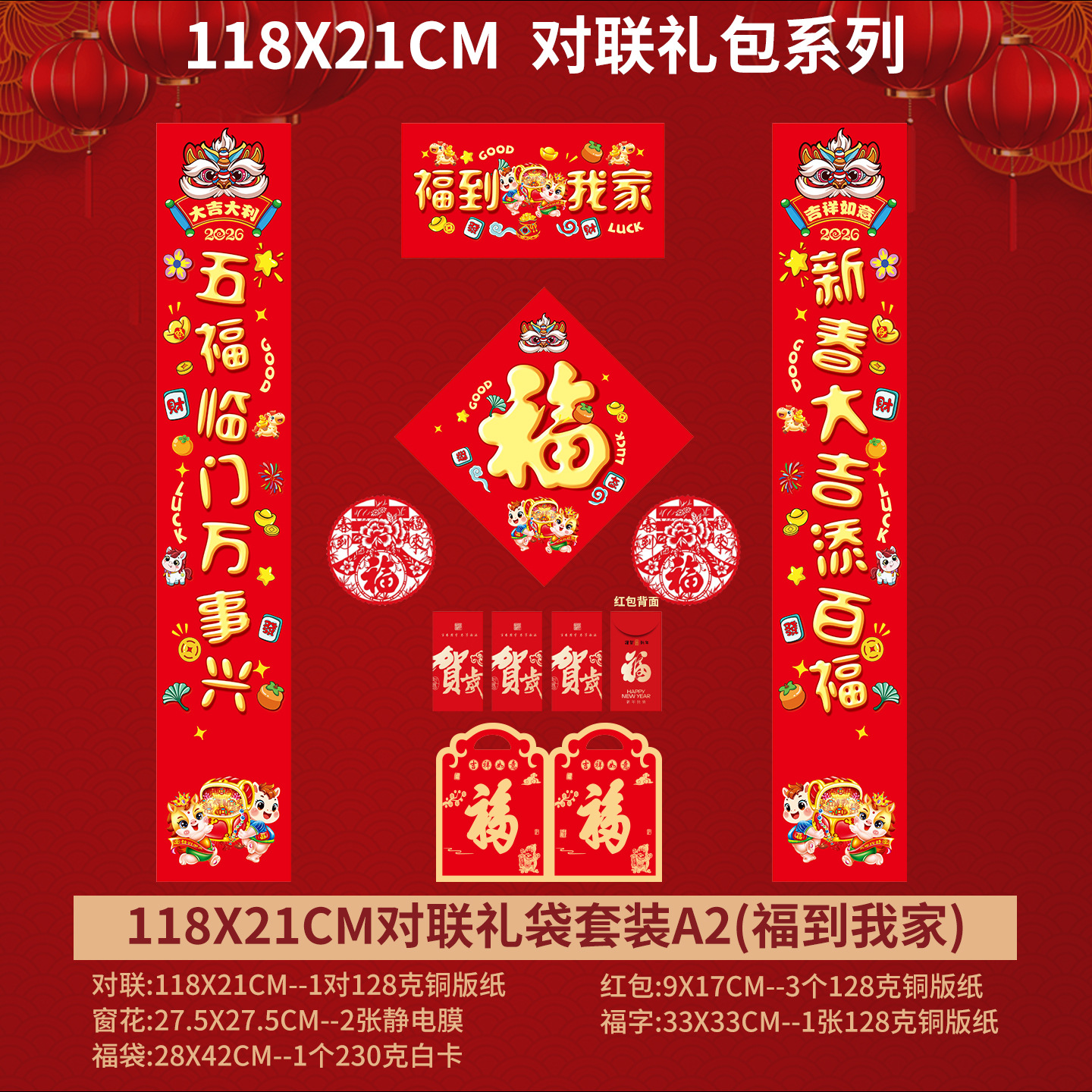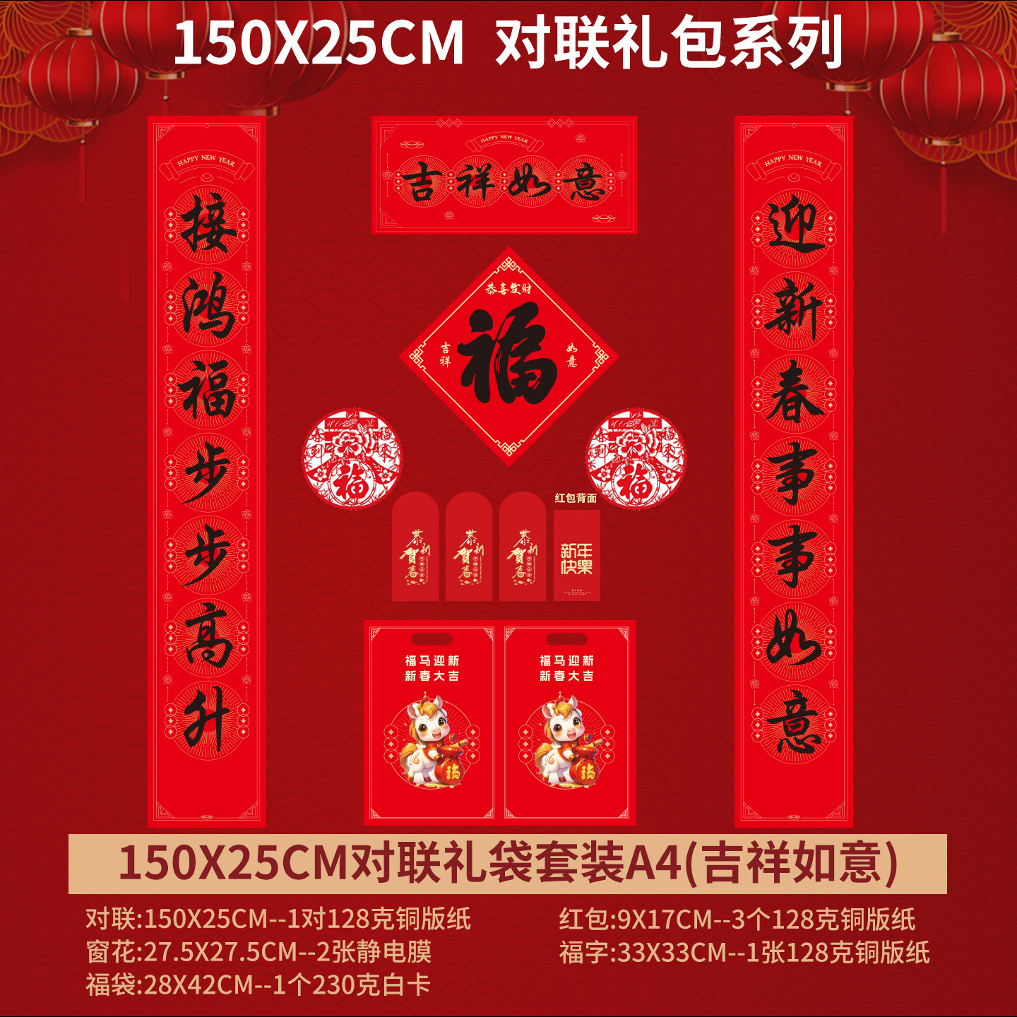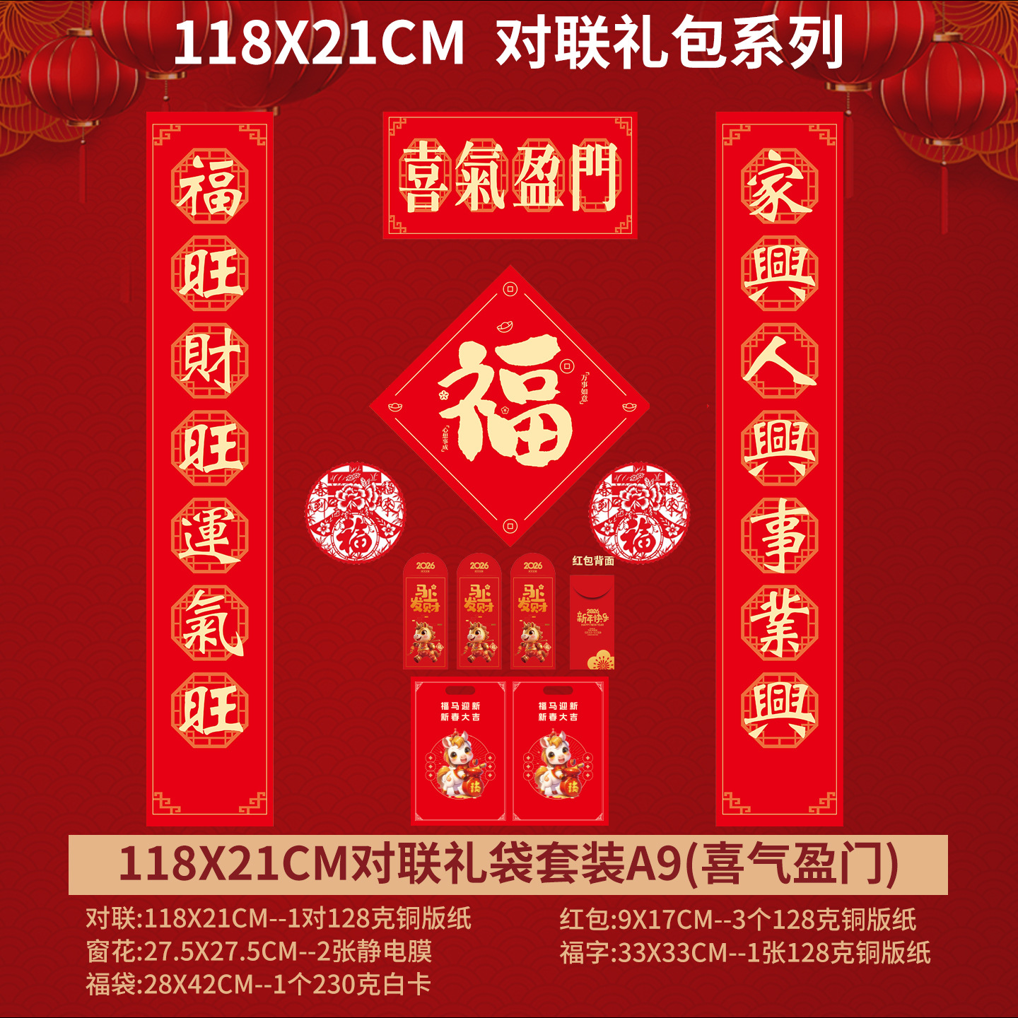 2026年马年对联春联批发定做春节对联烫金定制门联套装礼包广告