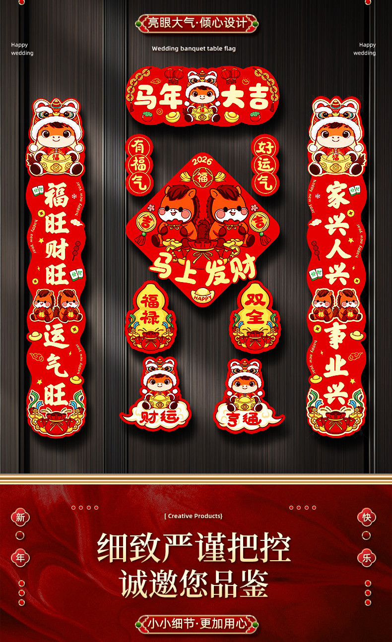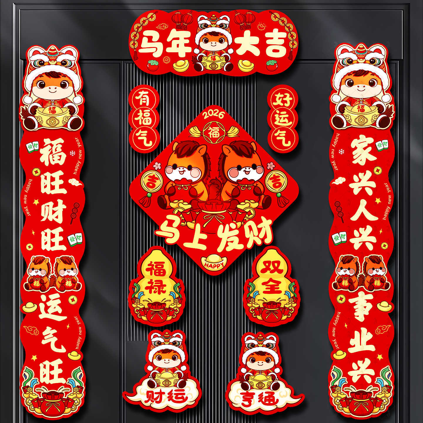 新款2026磁吸马年卡通对联春联家用新年春节过年福字布置门贴装饰