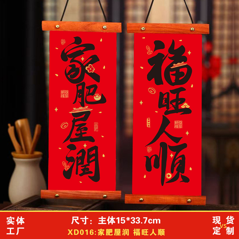 新款烫金绒布木质挂轴小对联广告定制家用乔迁入户挥春装饰品批发