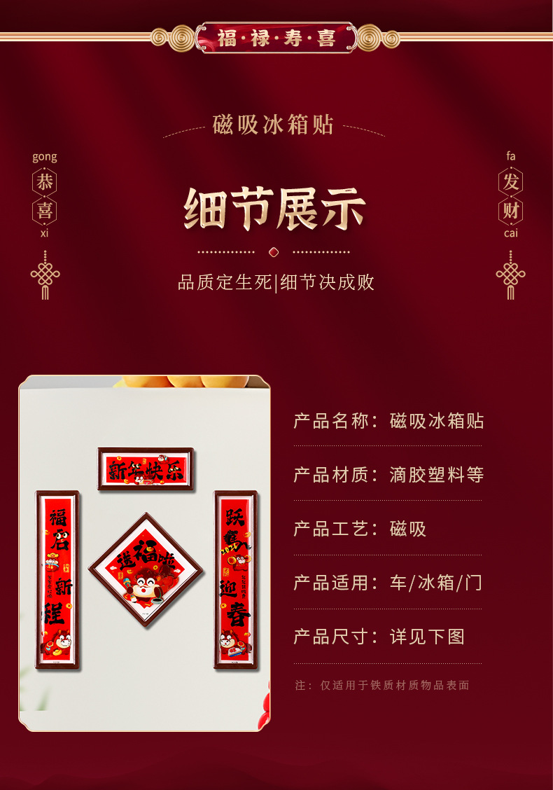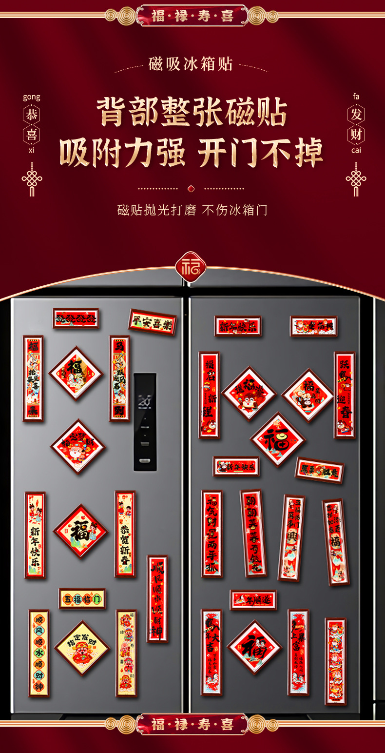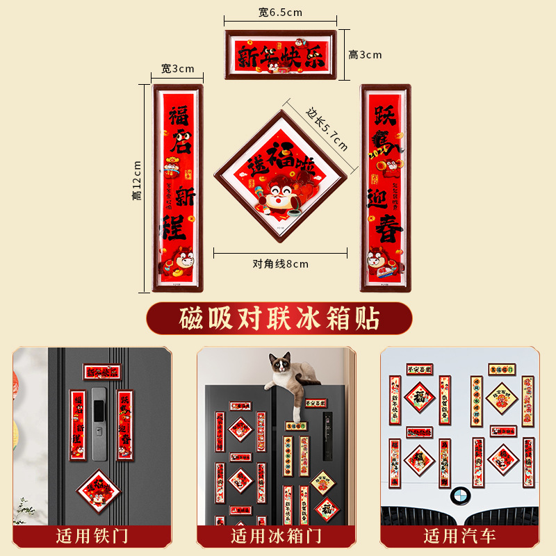 新年磁吸冰箱贴小对联新款马年福字门贴春节过年氛围布置装饰对联
