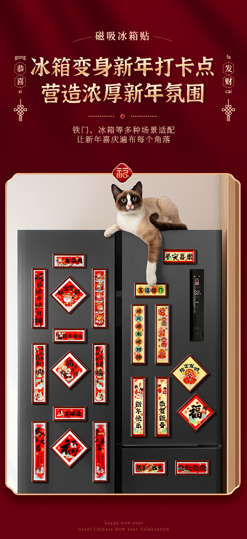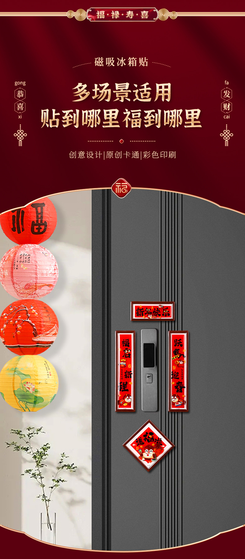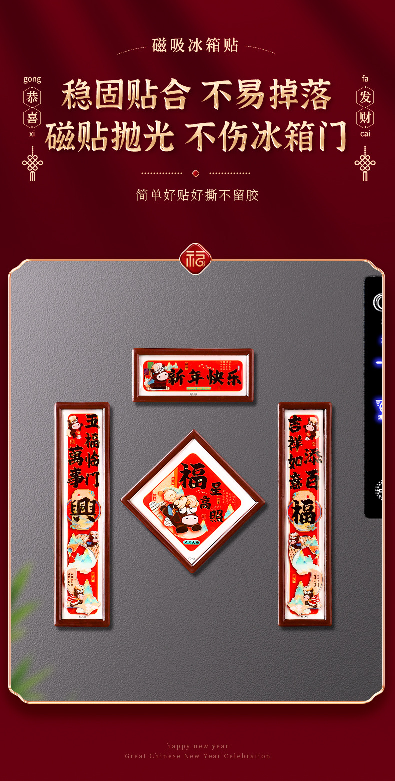 新年磁吸冰箱贴小对联新款马年福字门贴春节过年氛围布置装饰对联