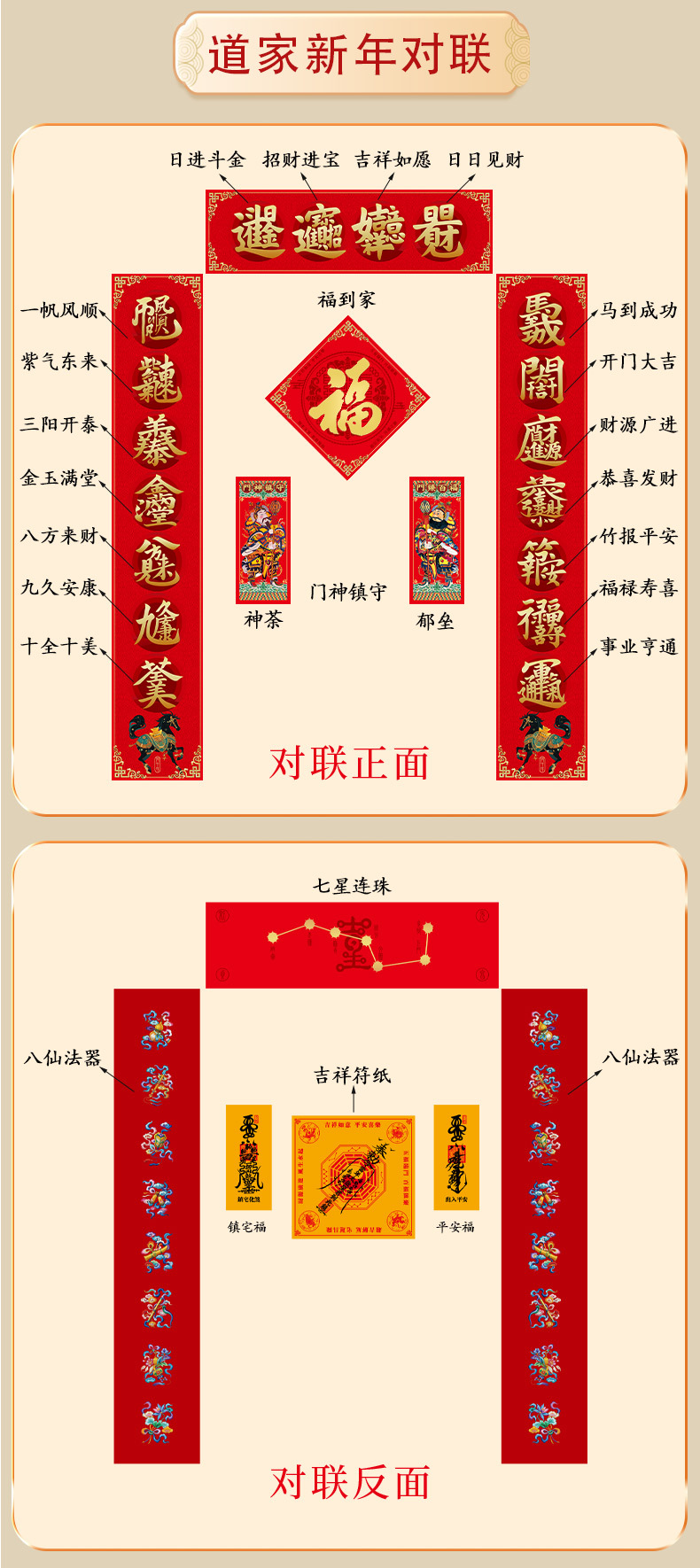 批发2026丙午马年 新春新年对联 道家合字对联 门神镇守门臻百福