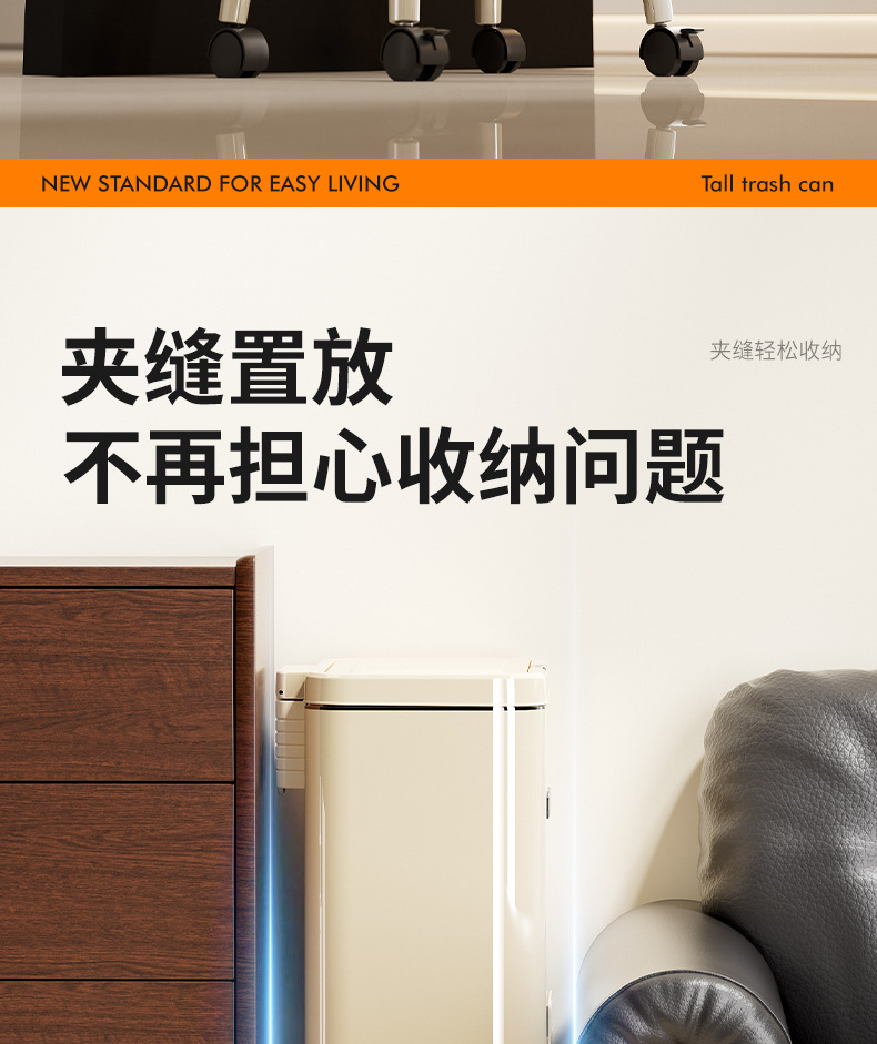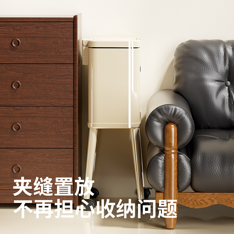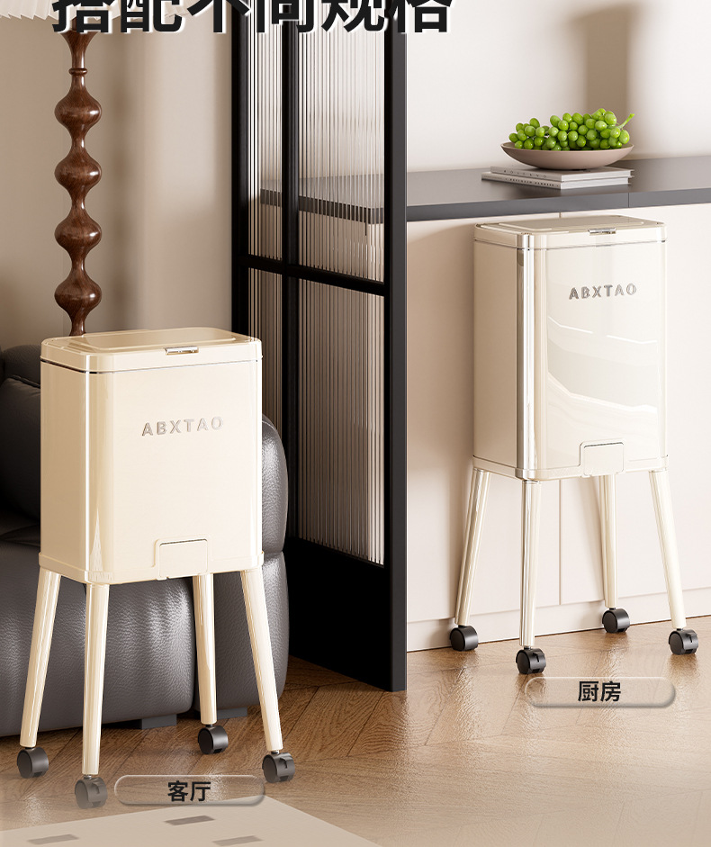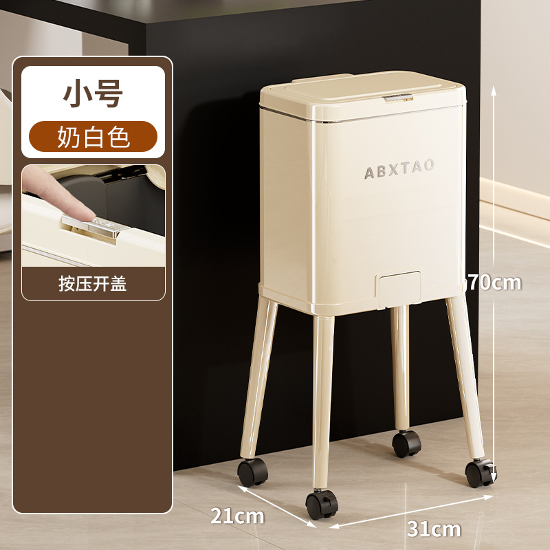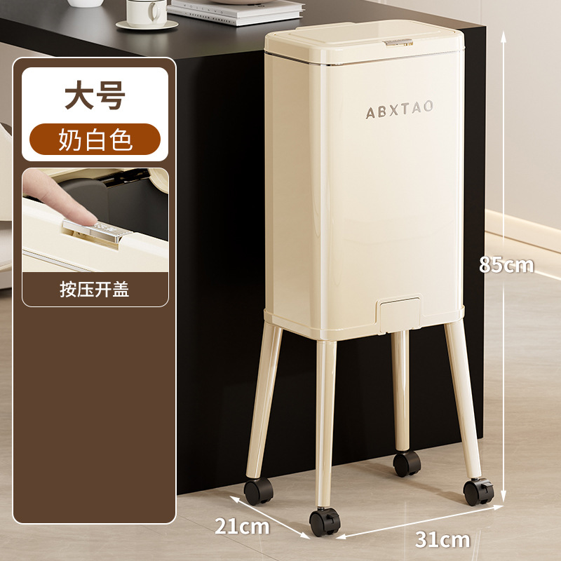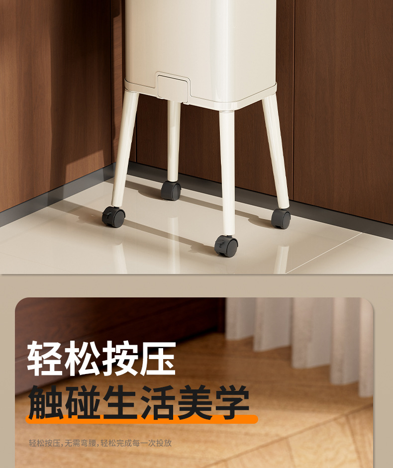 大容量带盖高级感垃圾桶家用厨房创意不伤腰夹缝带轮收纳篓可贴牌