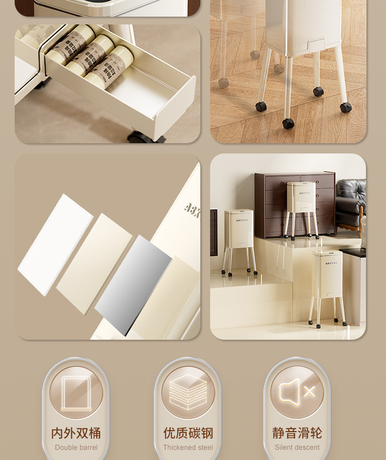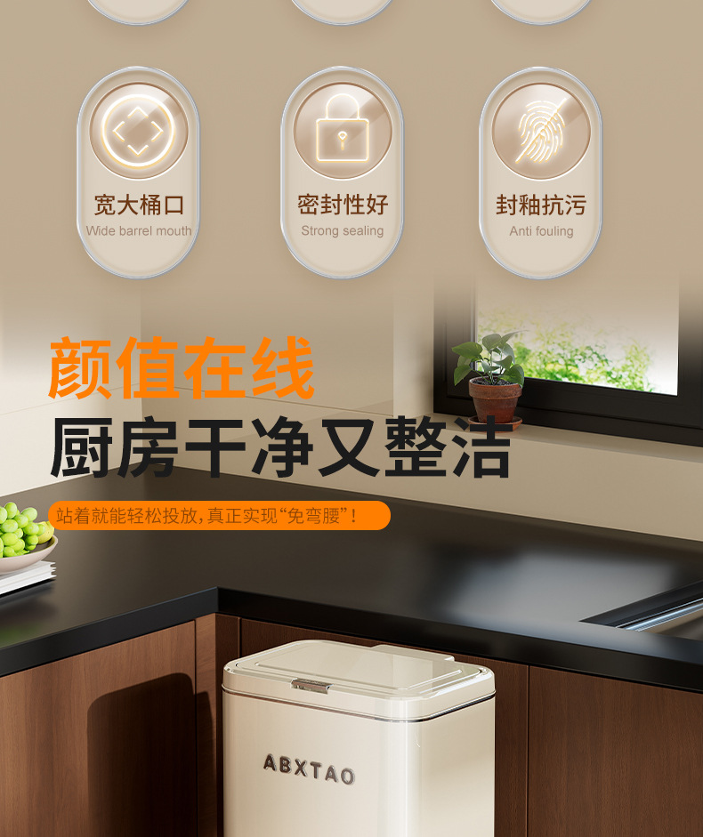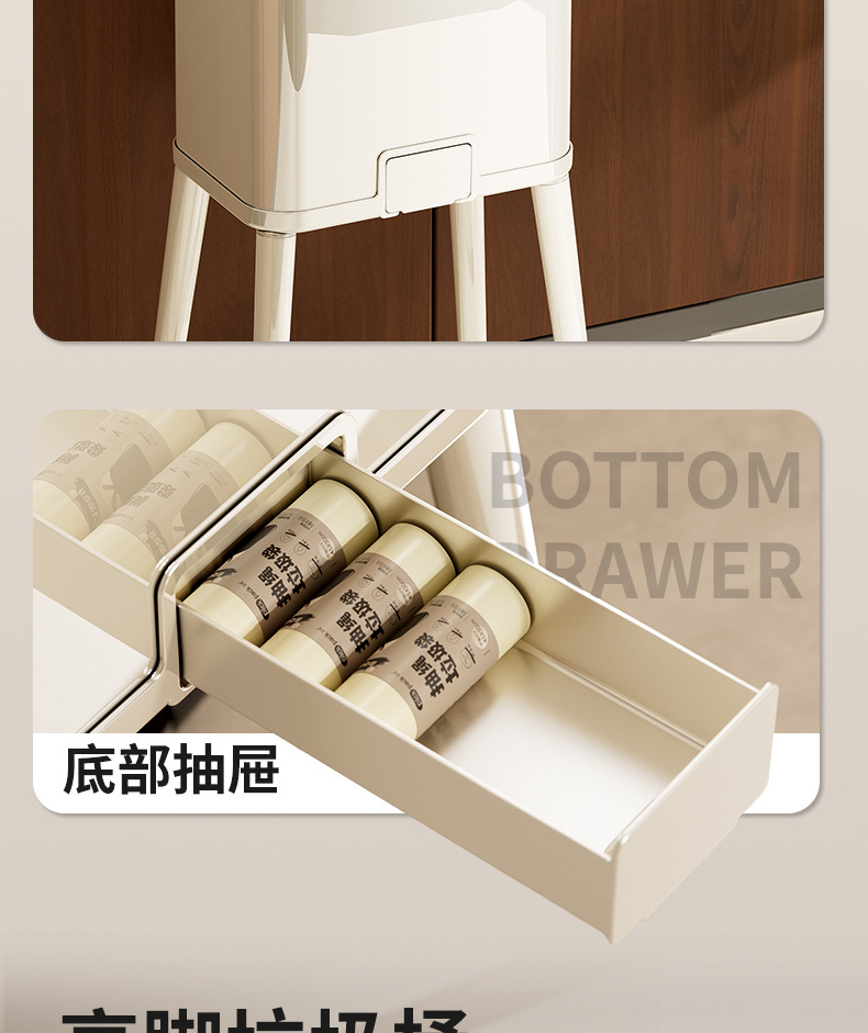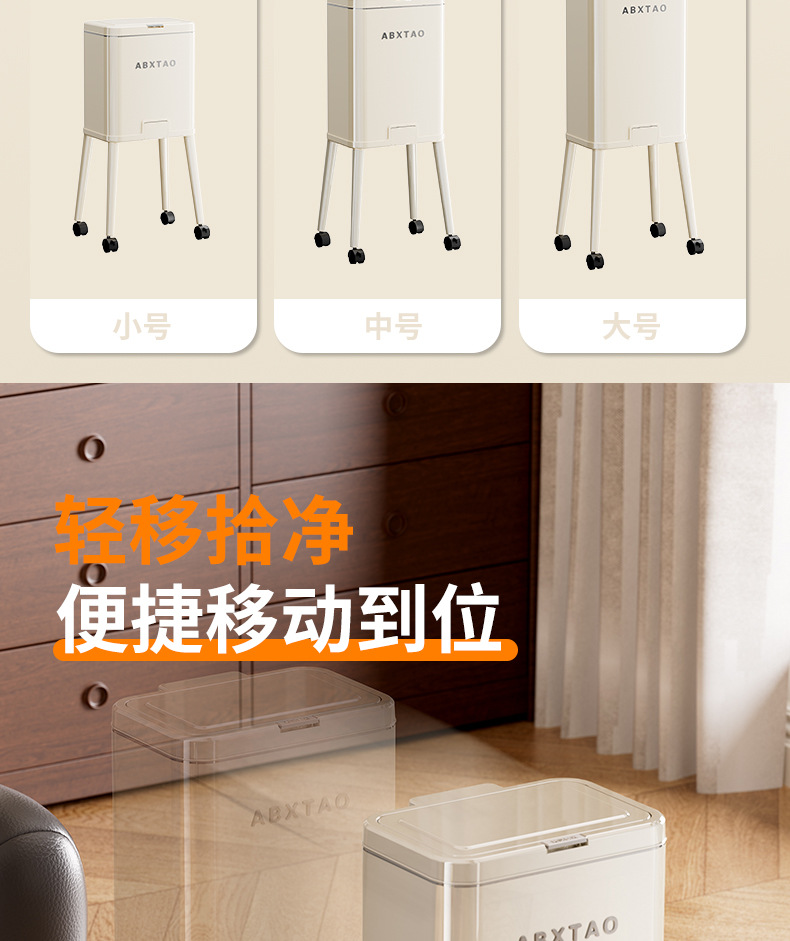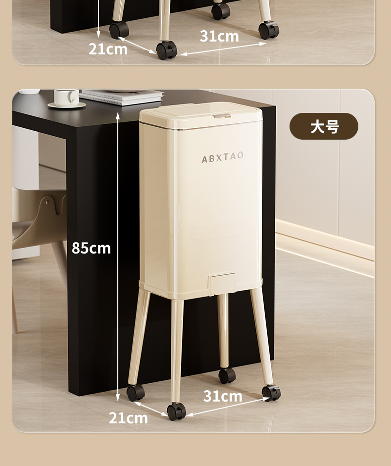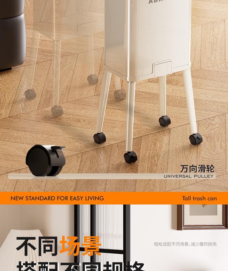 大容量带盖高级感垃圾桶家用厨房创意不伤腰夹缝带轮收纳篓可贴牌