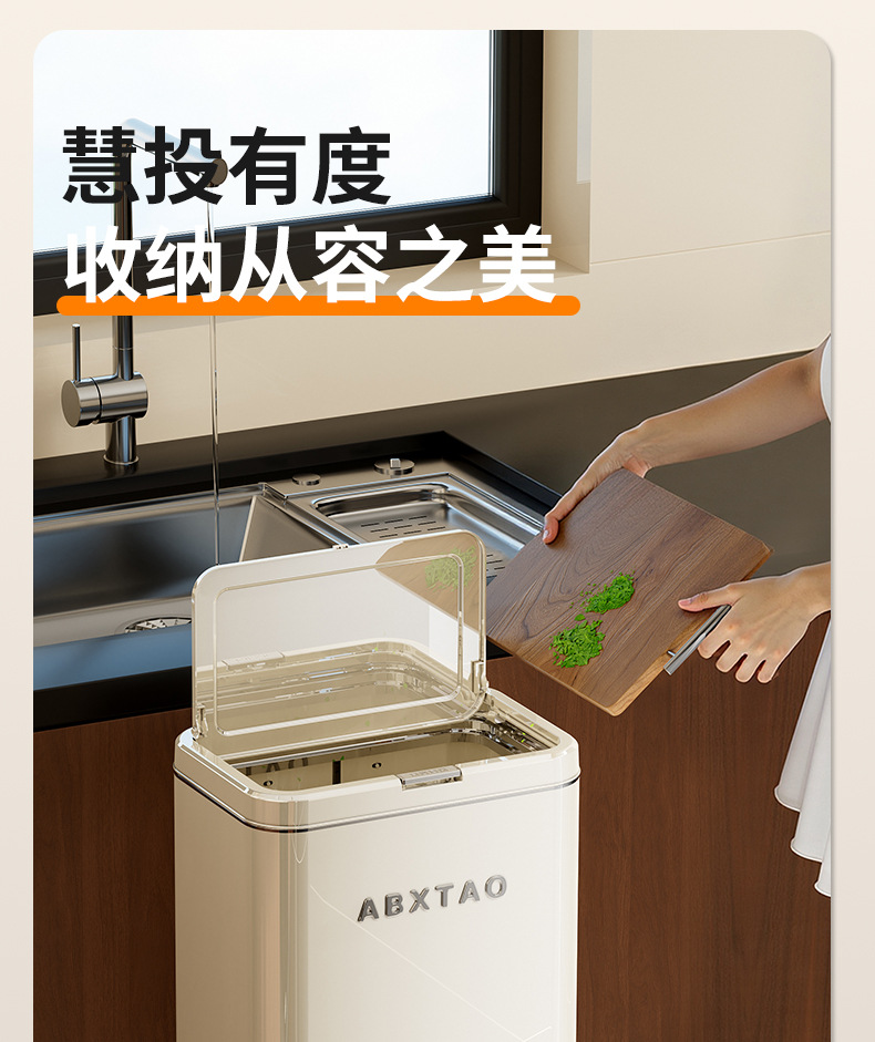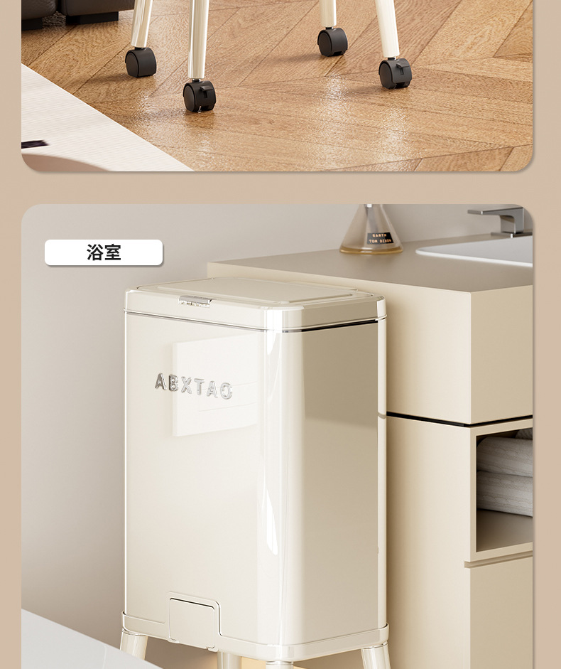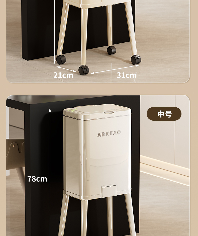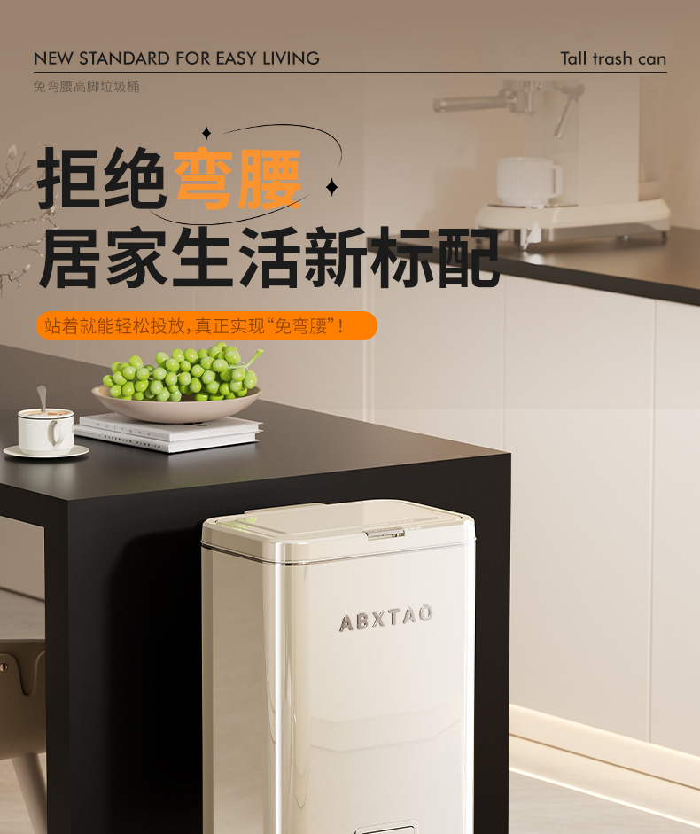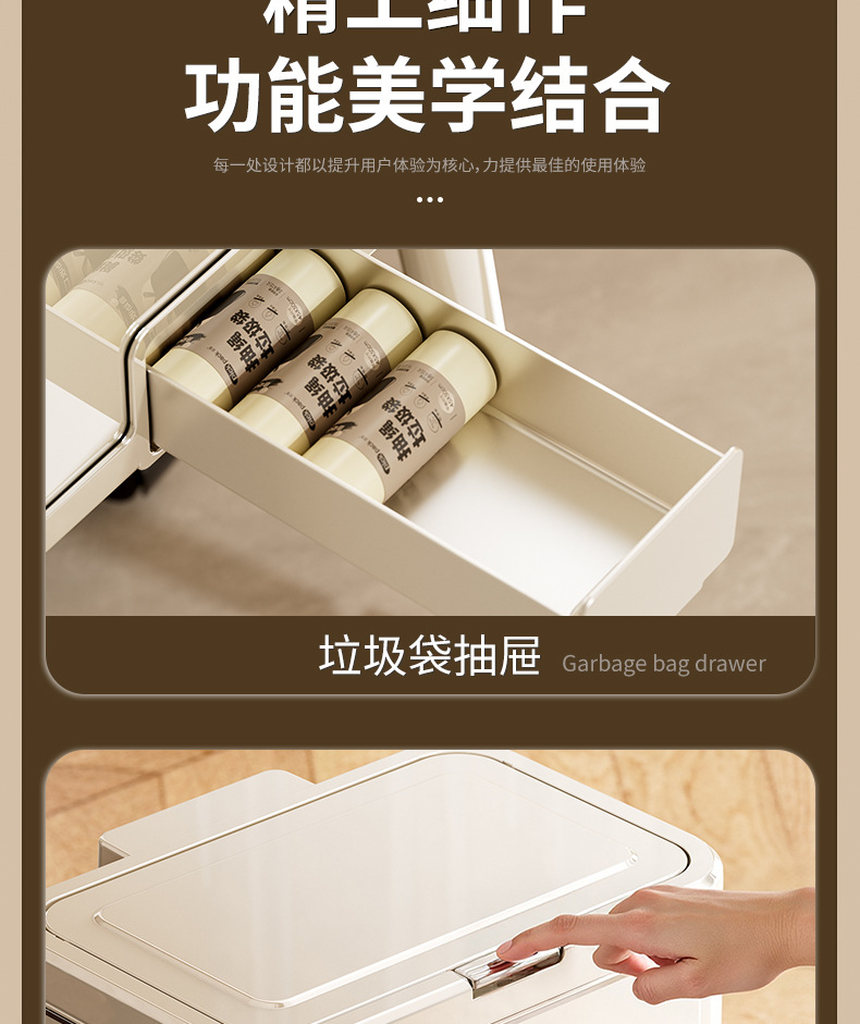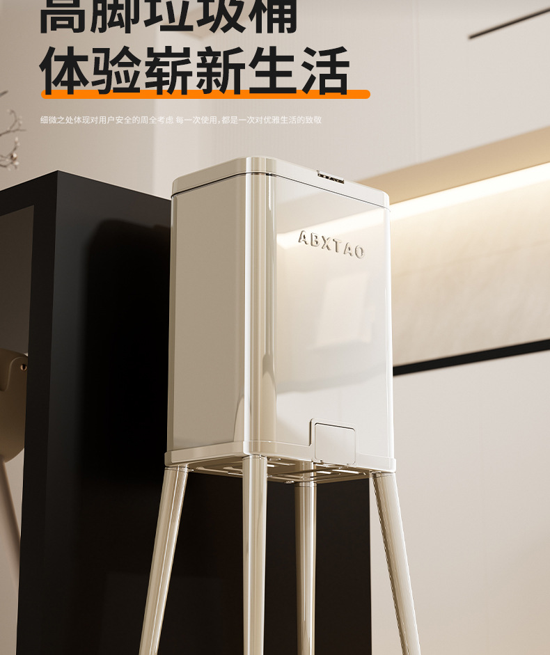 大容量带盖高级感垃圾桶家用厨房创意不伤腰夹缝带轮收纳篓可贴牌