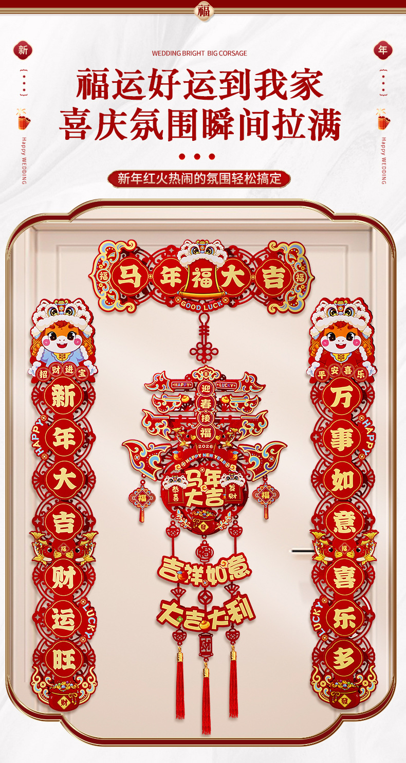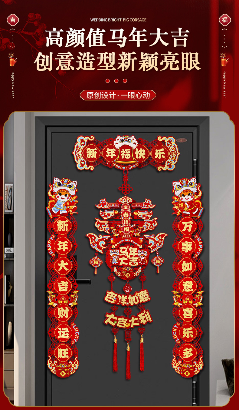 对联2026马年新款春节家用过年大门布置福字门贴装饰新年磁吸春联