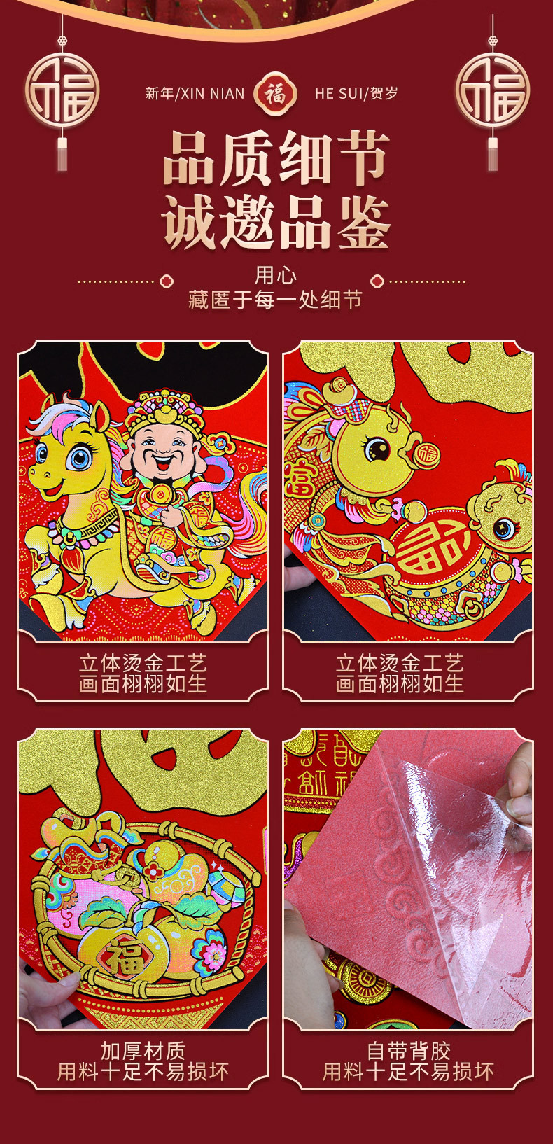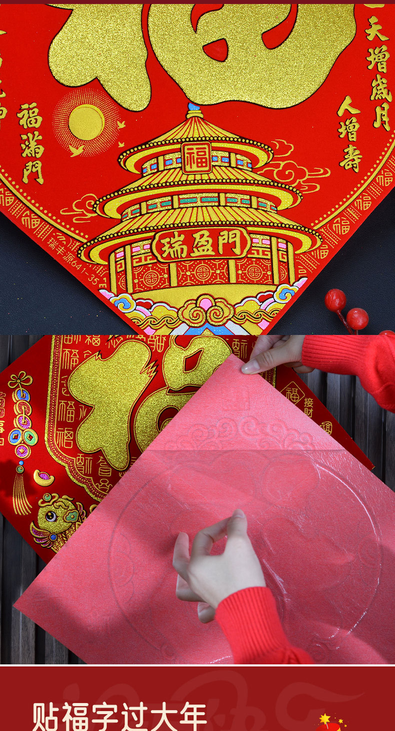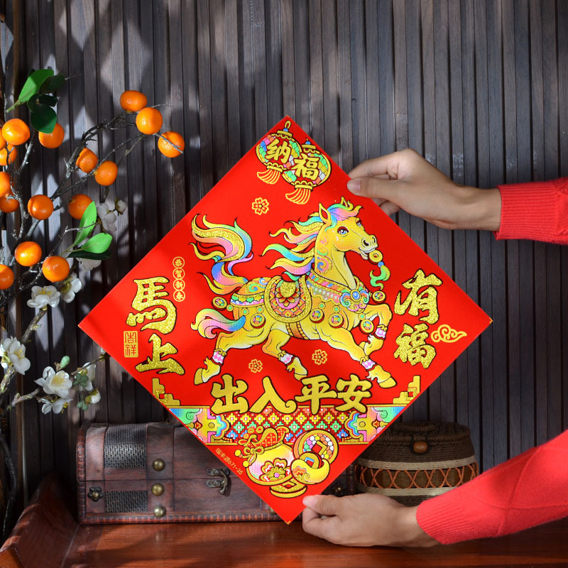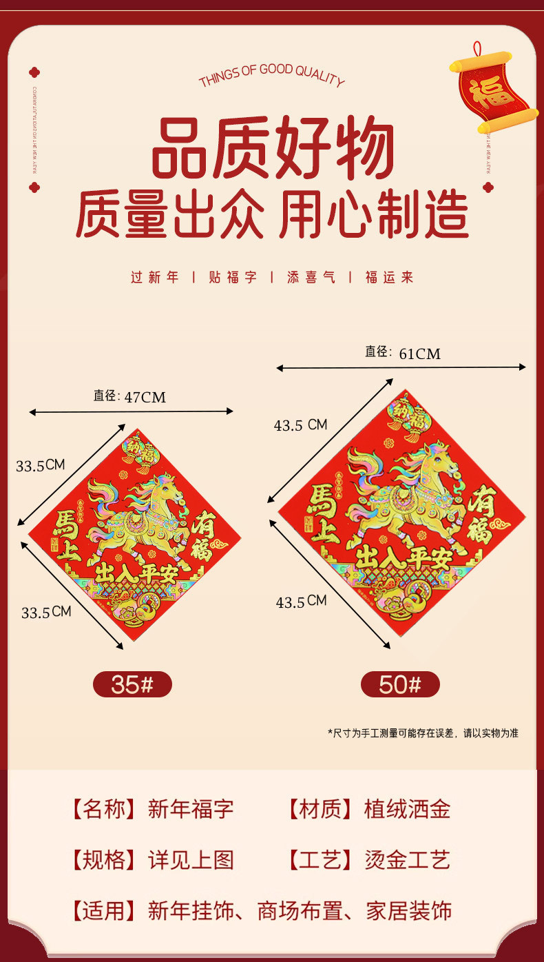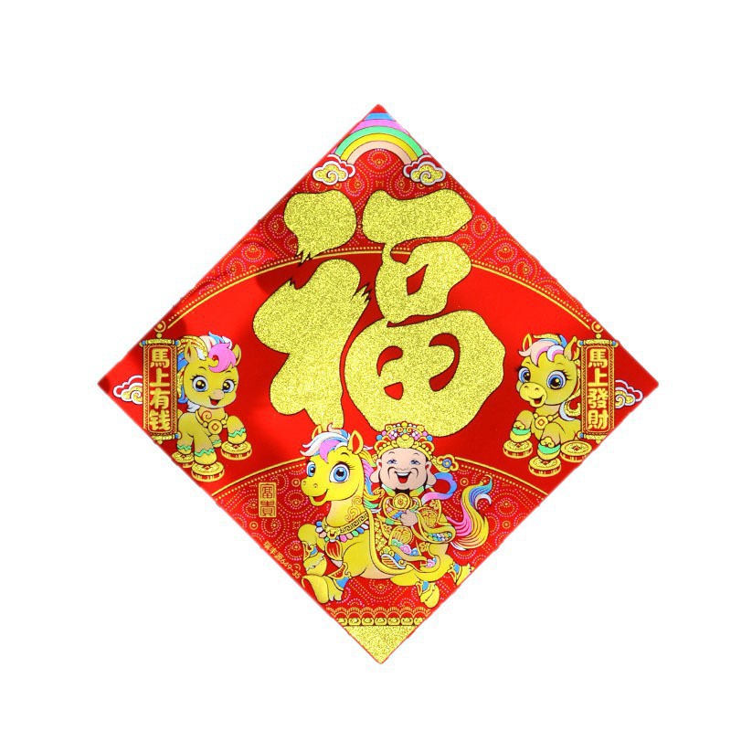2026年马年新款生肖福字贴装饰自带背胶烫金绒布过年门贴装饰福