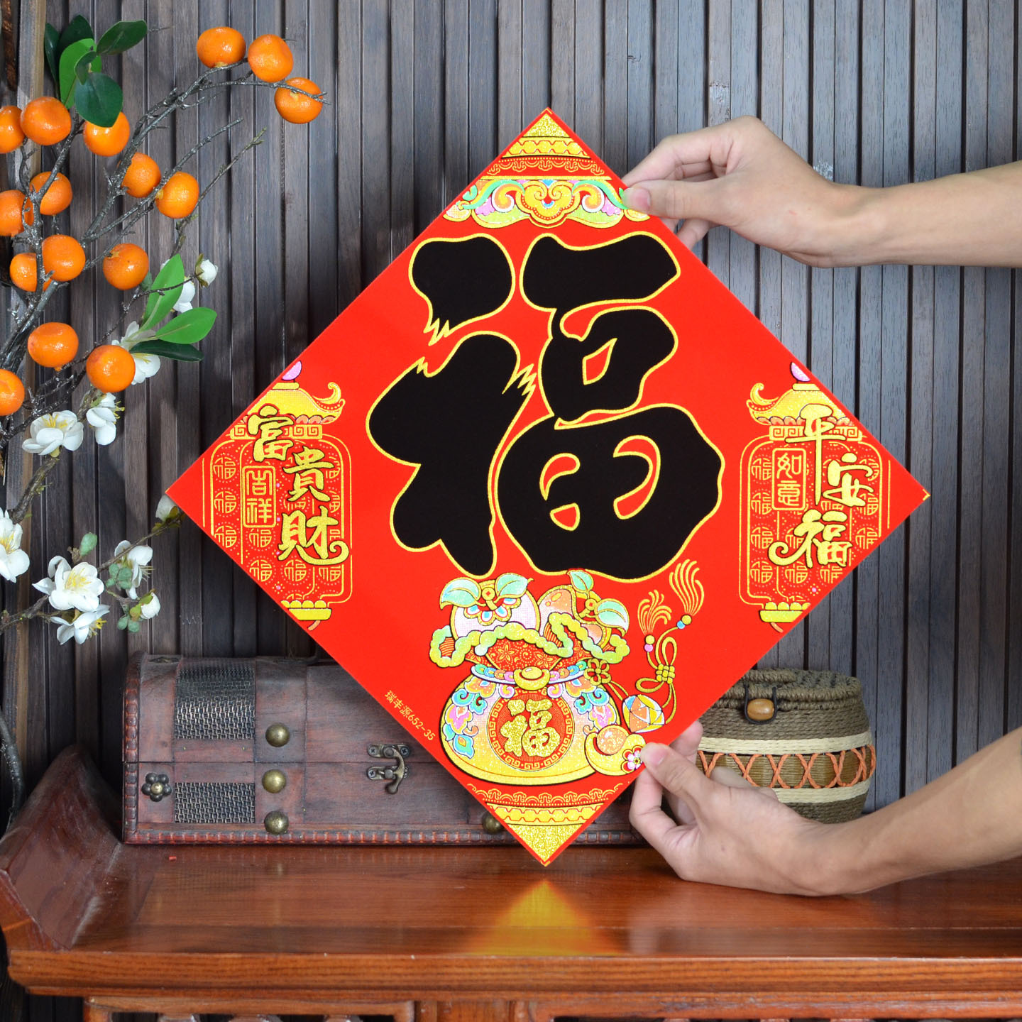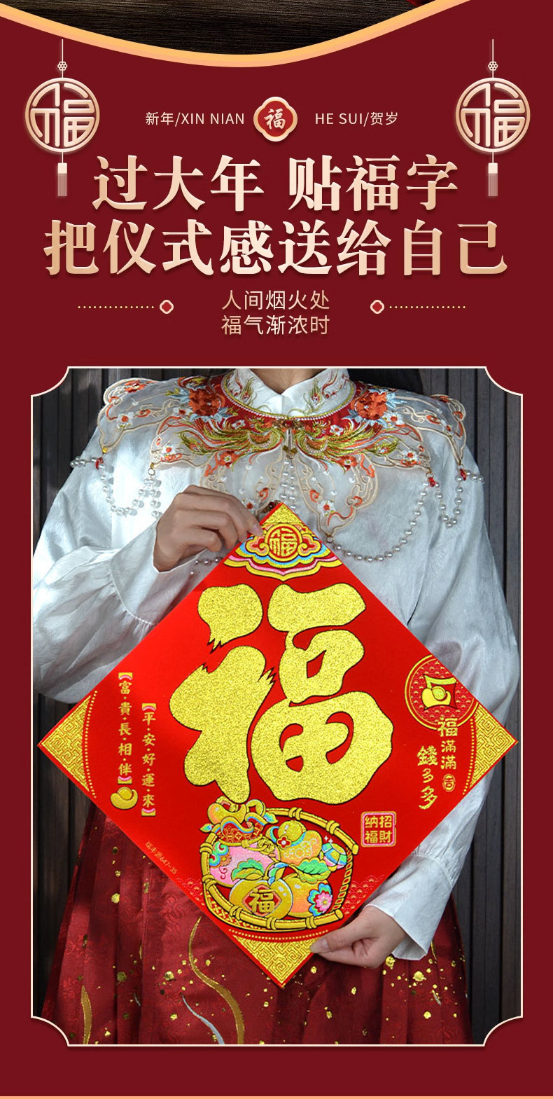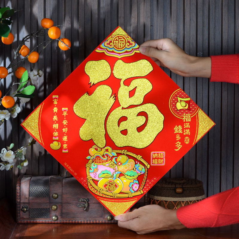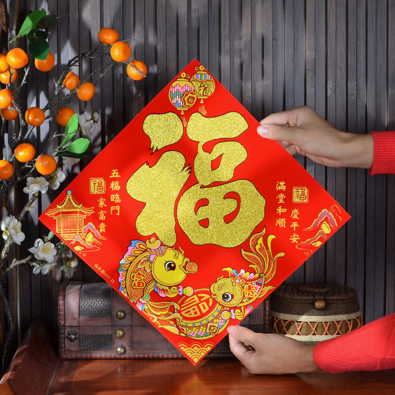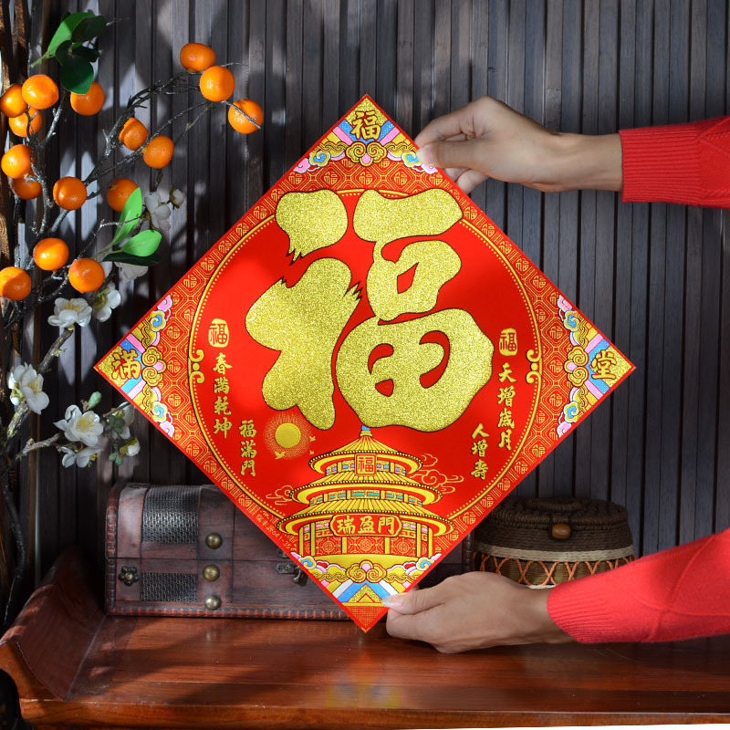 2026年马年新款生肖福字贴装饰自带背胶烫金绒布过年门贴装饰福