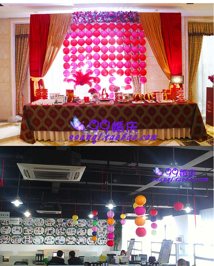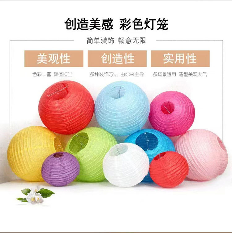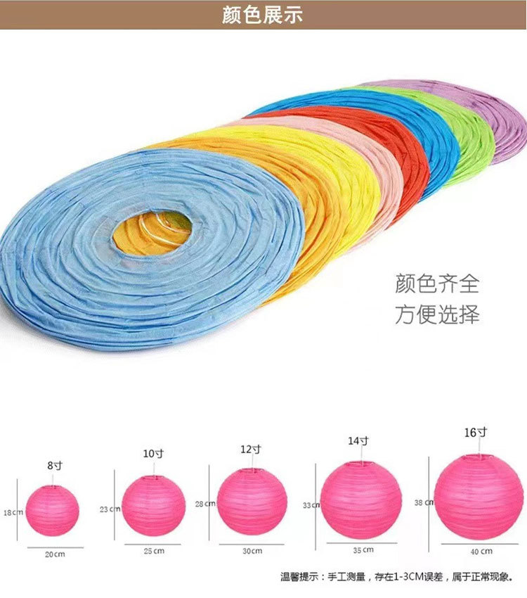 婚礼布置彩色灯笼元宵春节婚庆纸灯笼喜庆装饰可折叠手工圆形灯笼