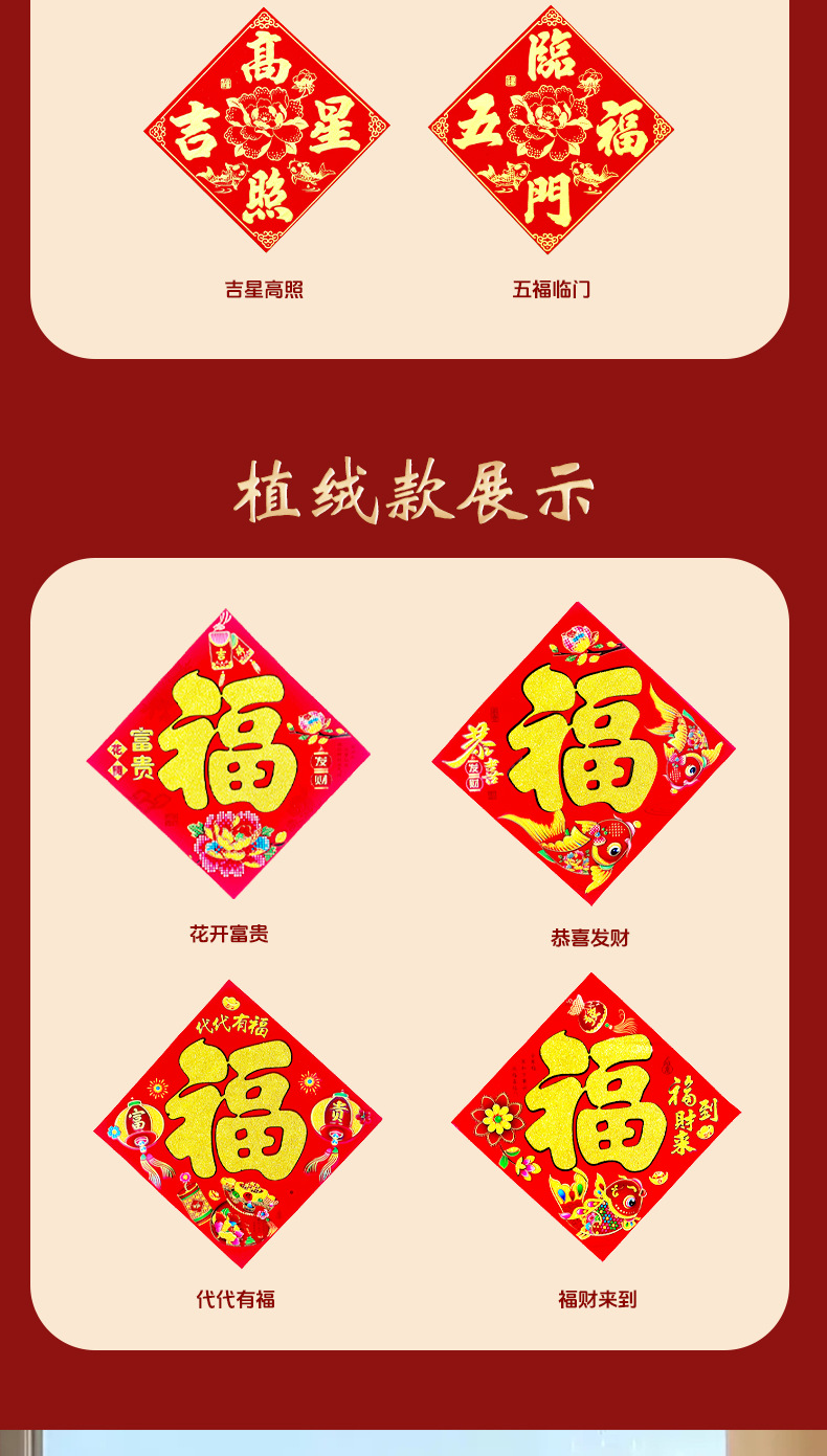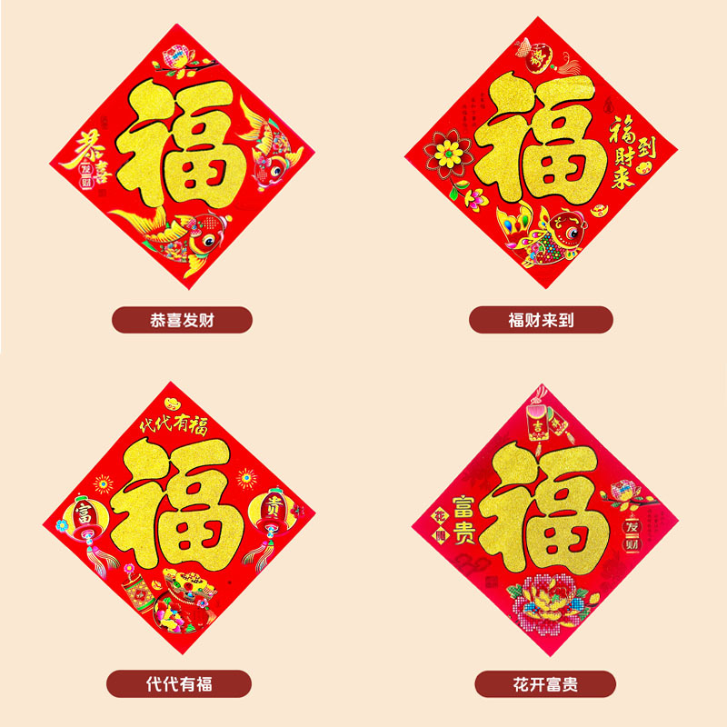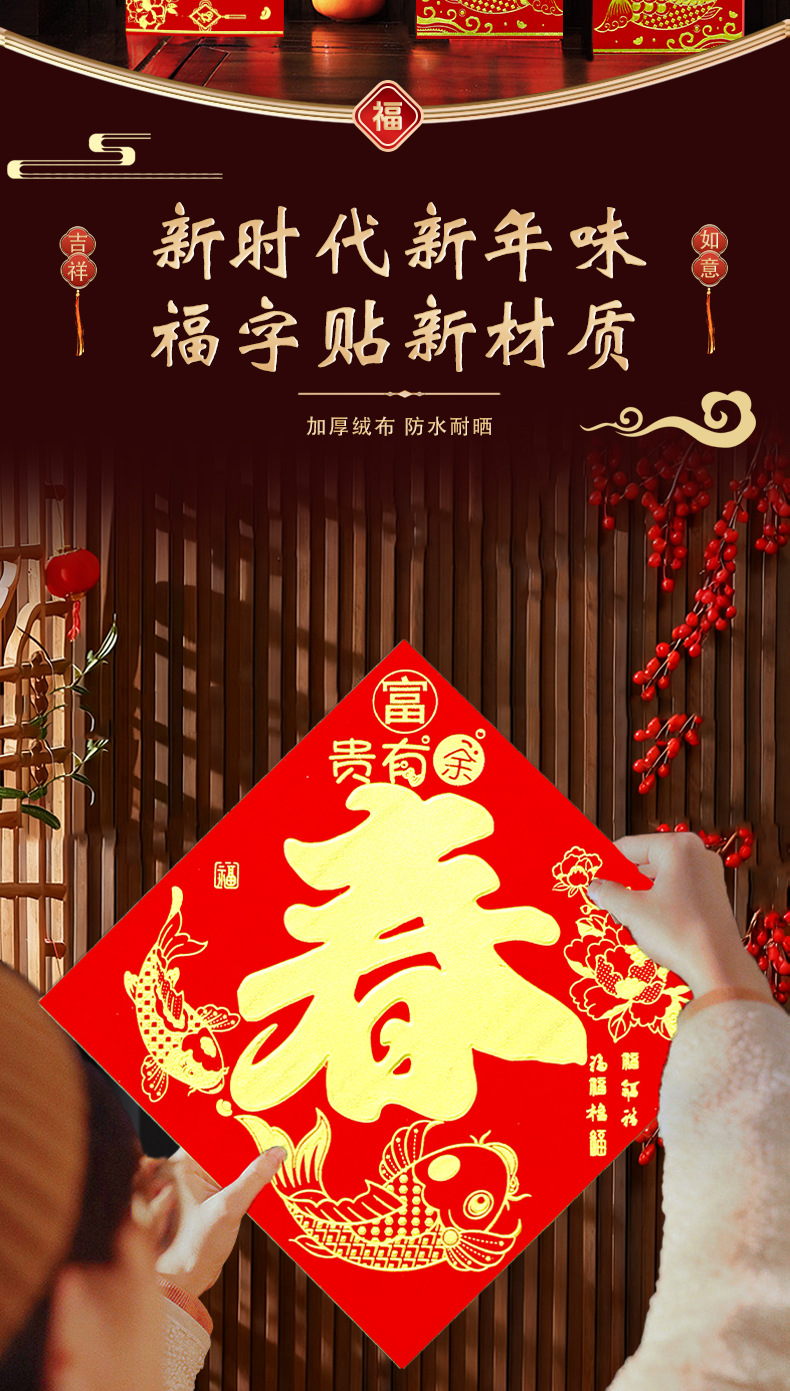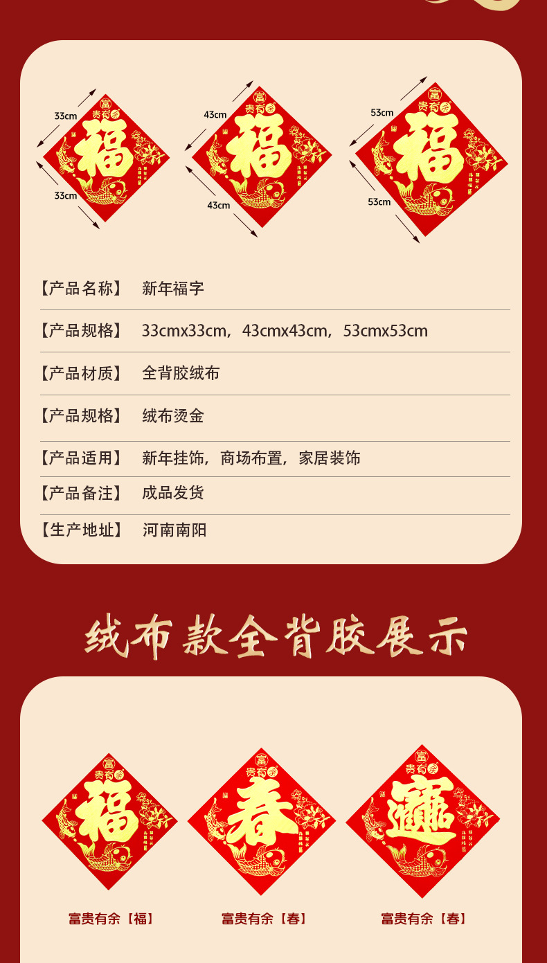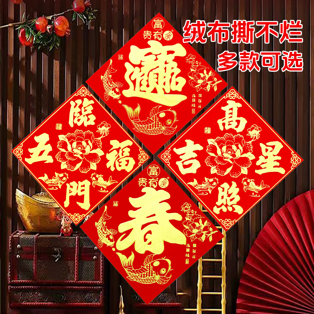 植绒福字绒布福2026马年门贴装饰大门新春绒布烫金过年福字门贴
