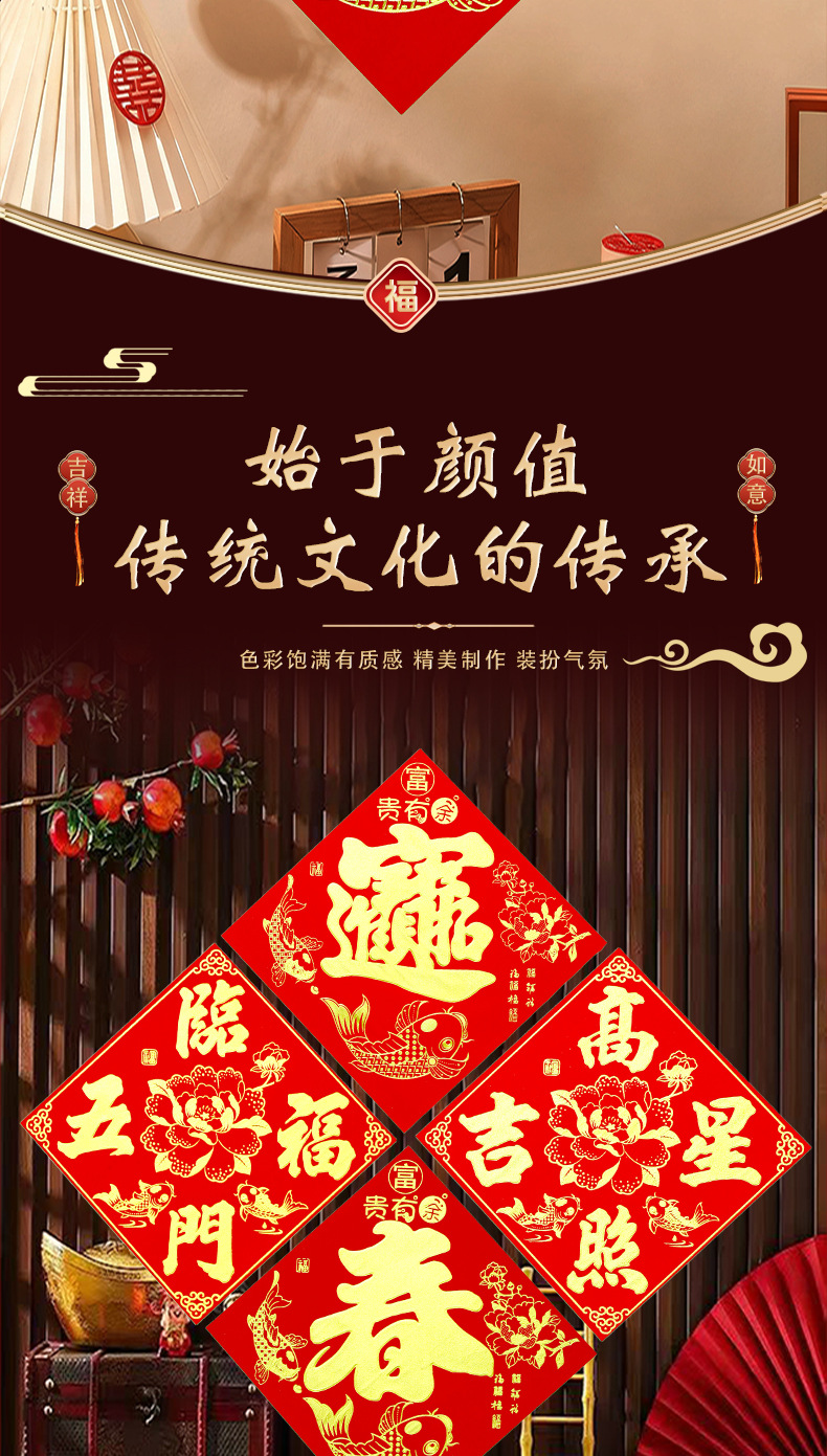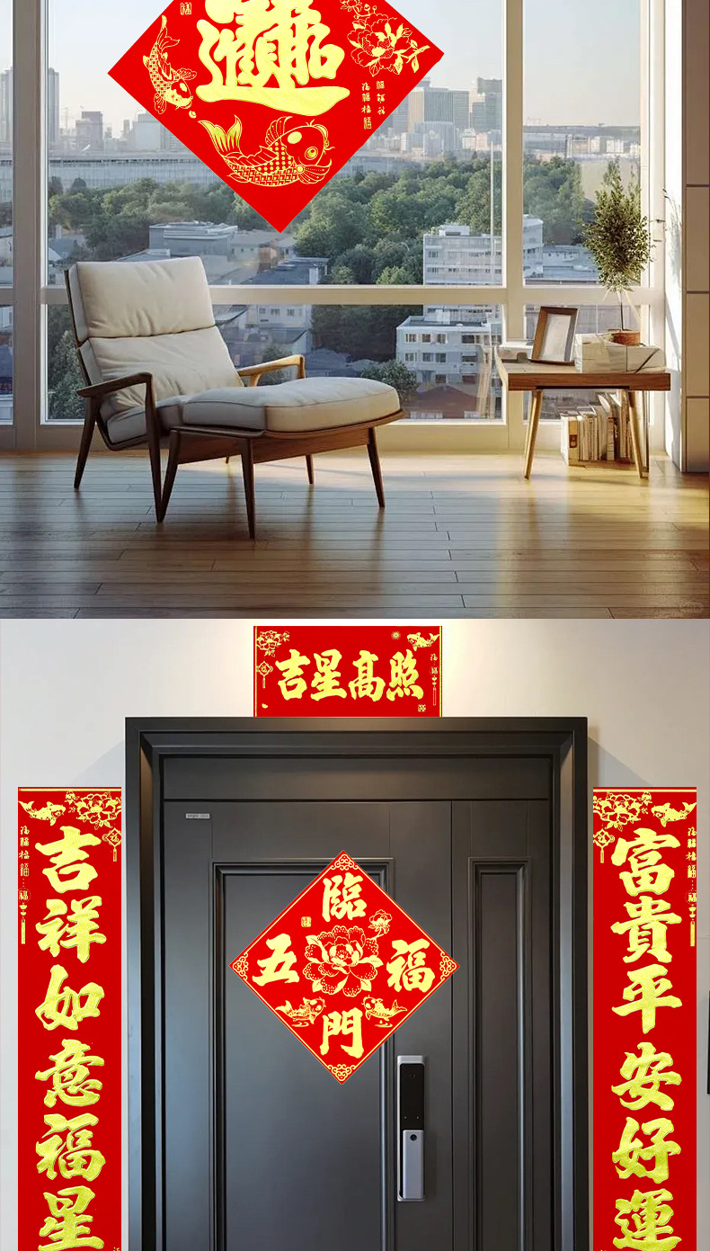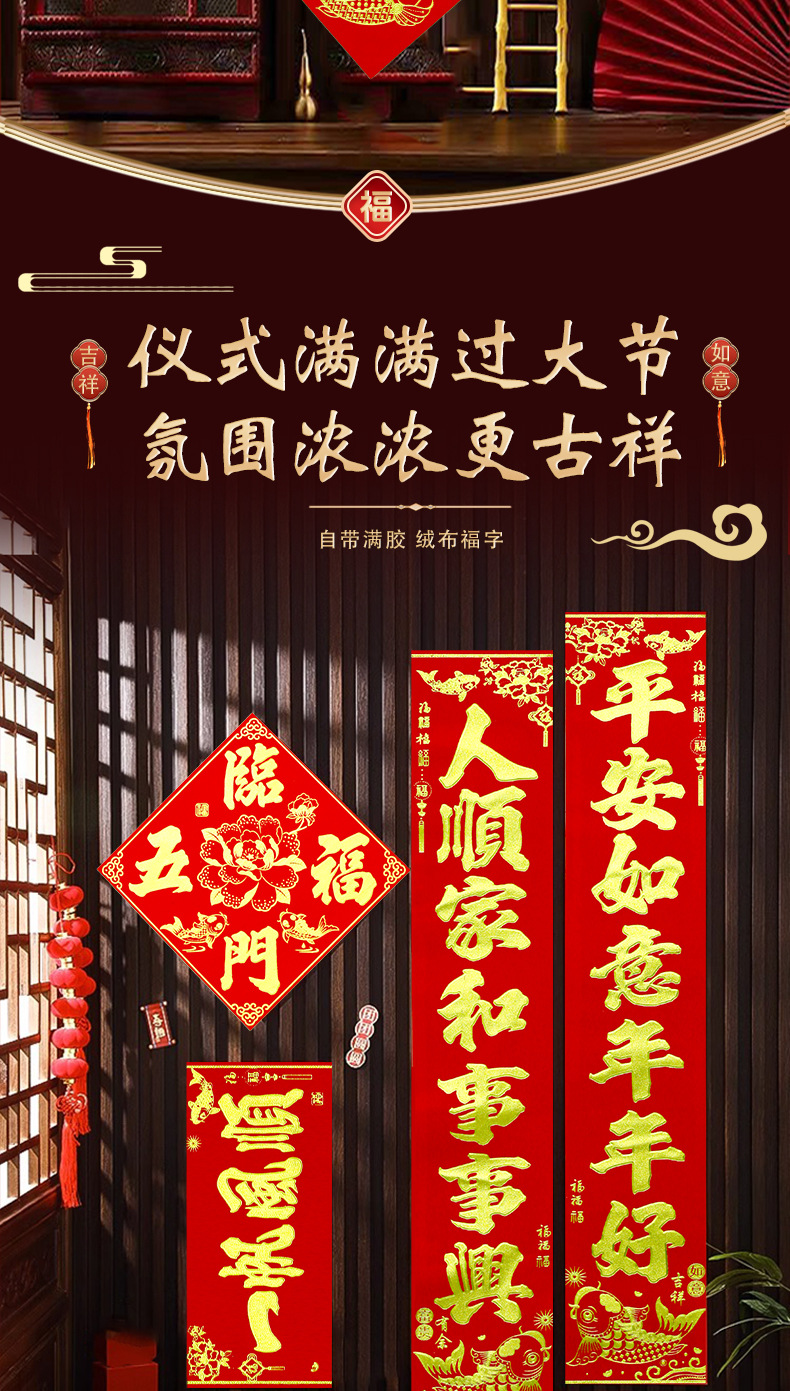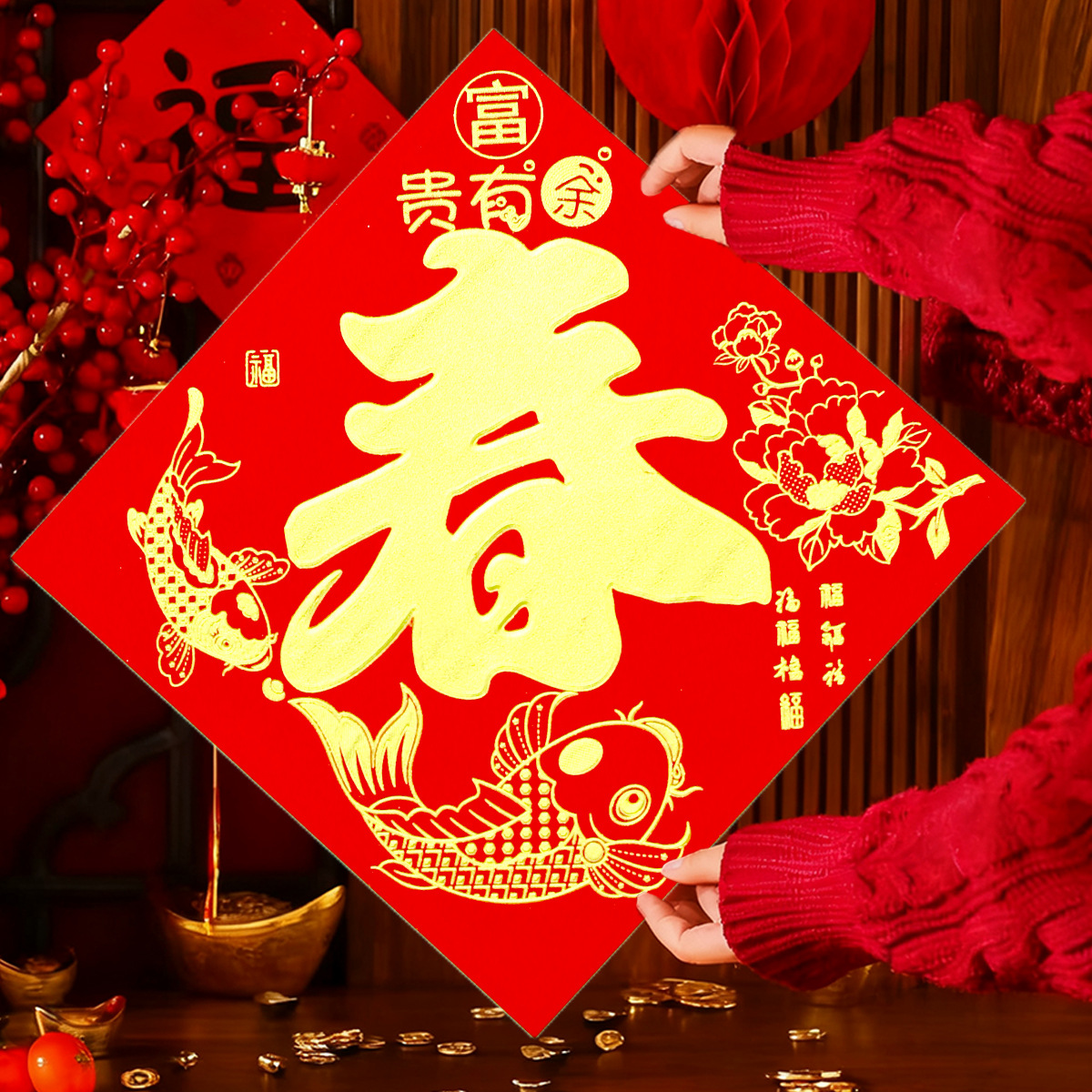 植绒福字绒布福2026马年门贴装饰大门新春绒布烫金过年福字门贴