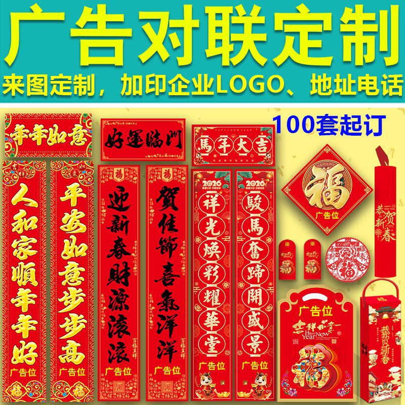 2026马年春节烫金广告对联定制福字春联大礼包套装批发定做logo