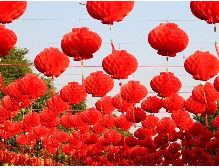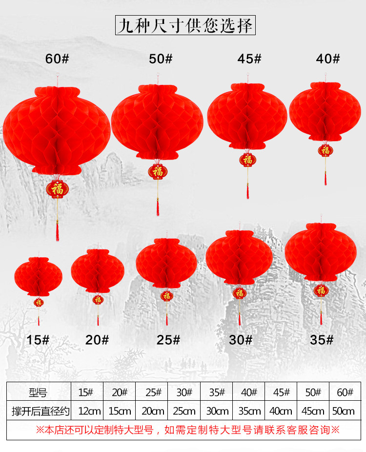 节日新年纸灯笼结婚婚庆喜庆灯笼挂饰商场装饰节日大红蜂窝纸灯笼