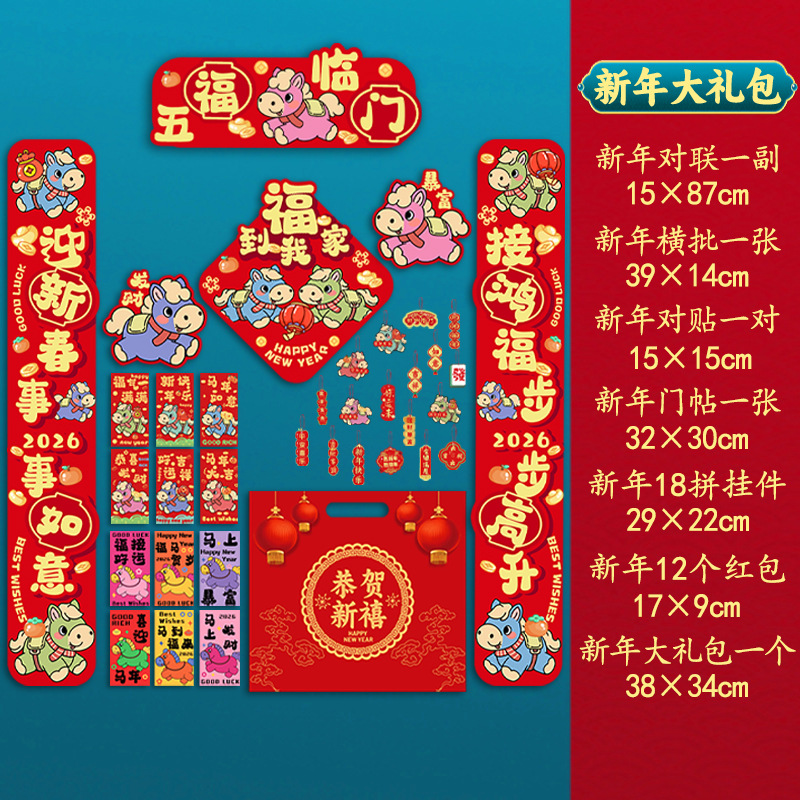 马年对联定制2026年对联春联批货春节福字红包对联大礼包印刷logo