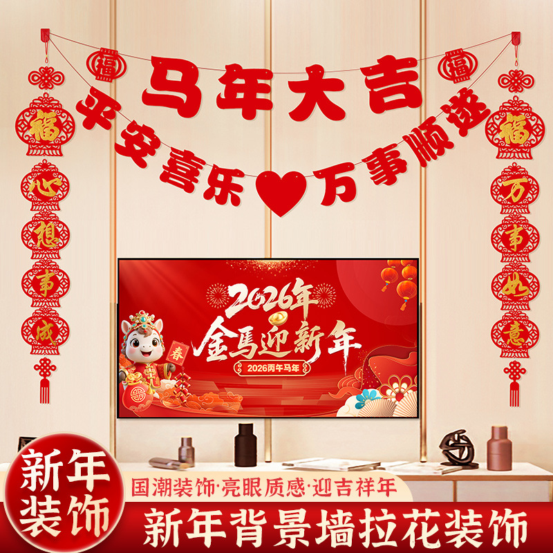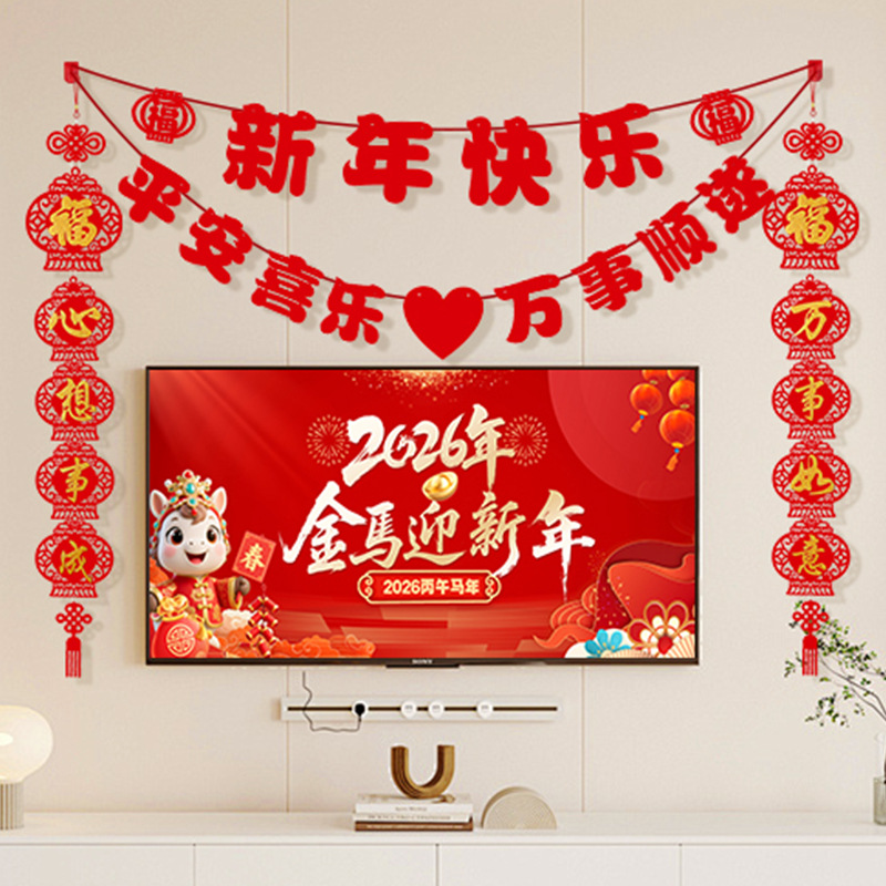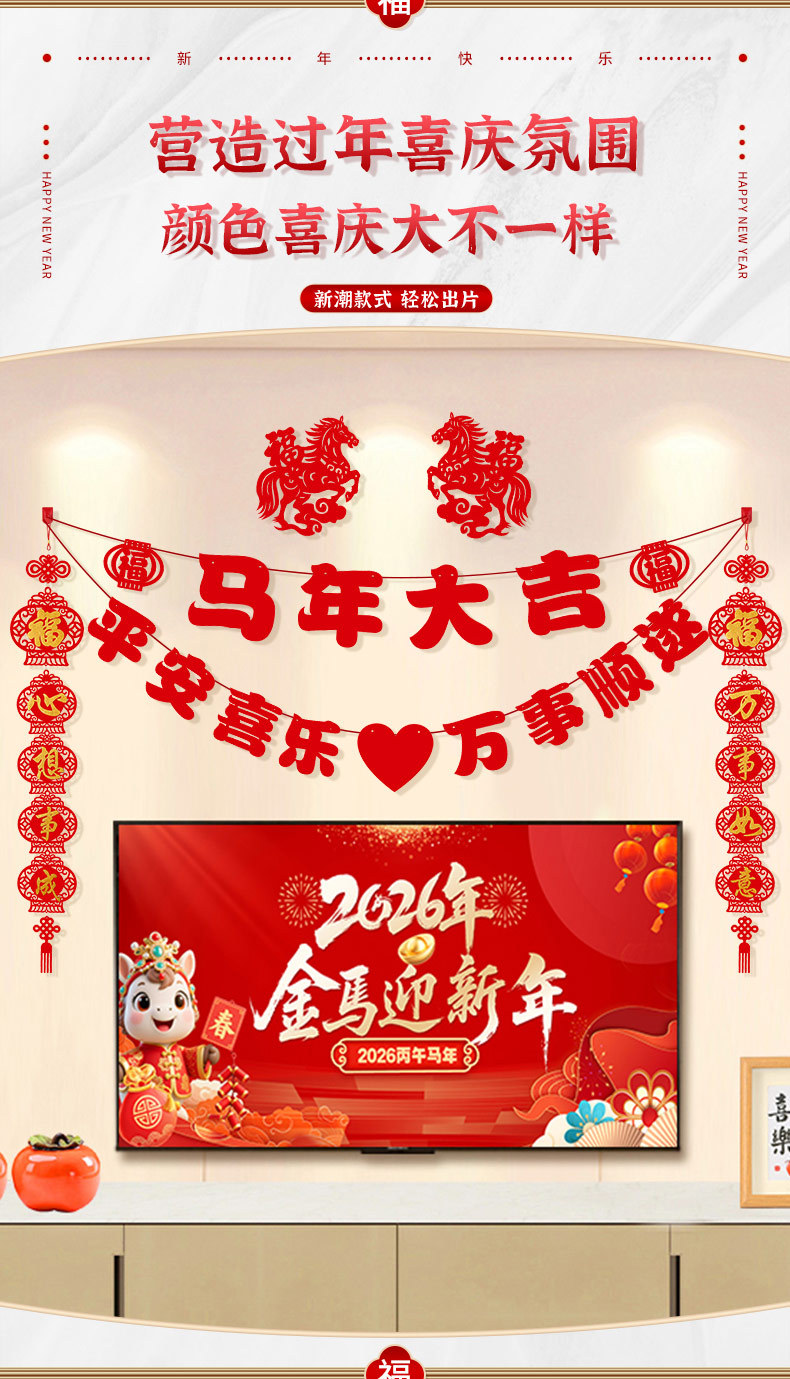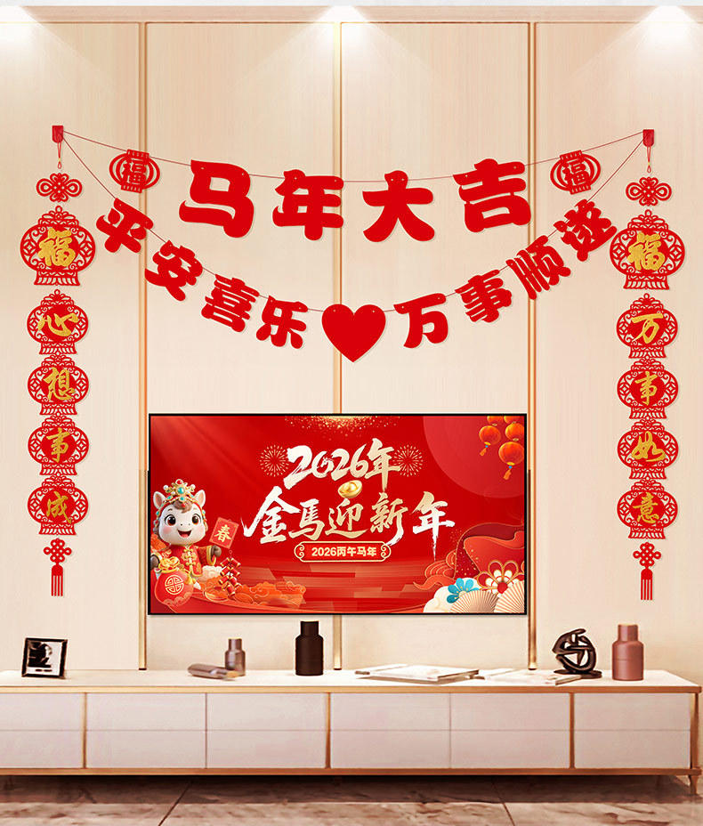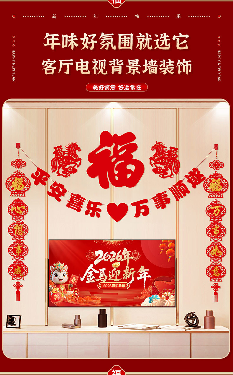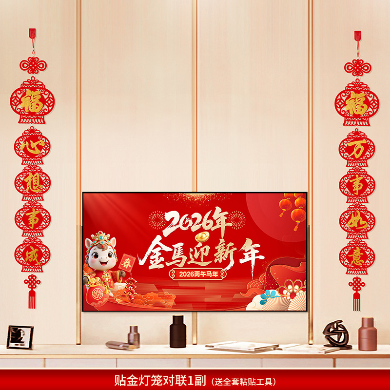2026马年新年电视背景墙装饰过年氛围春节沙发背景墙客厅对联条幅