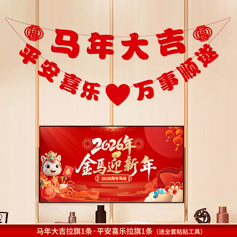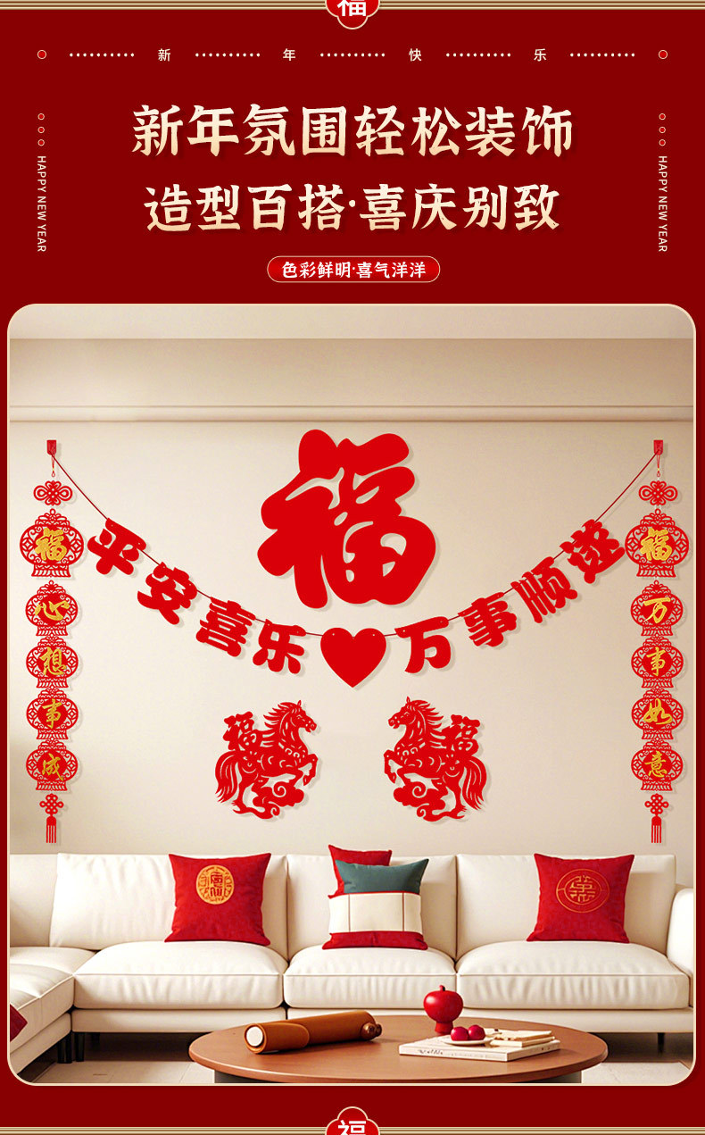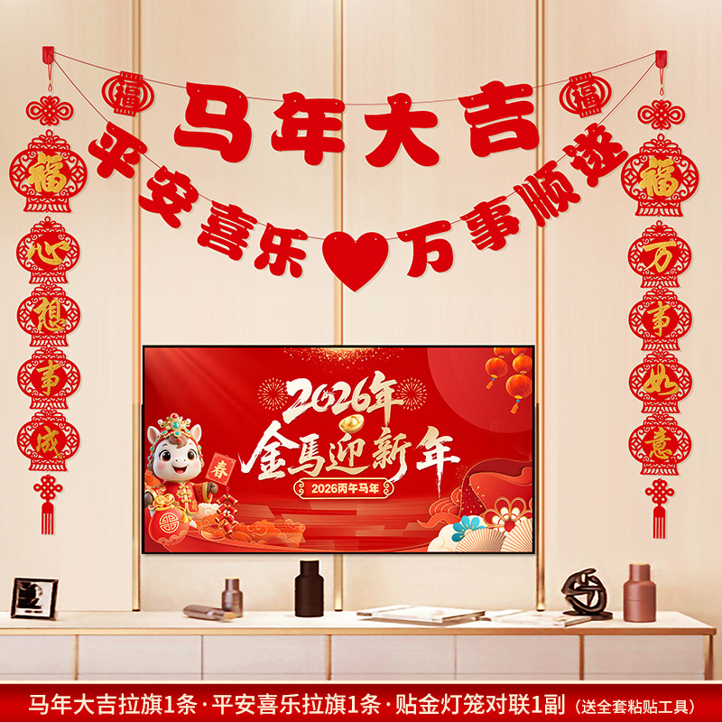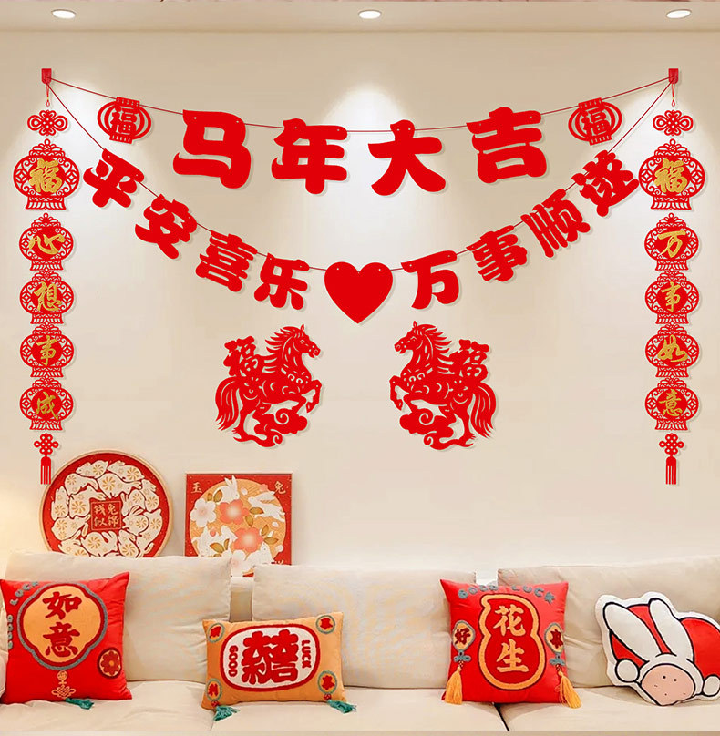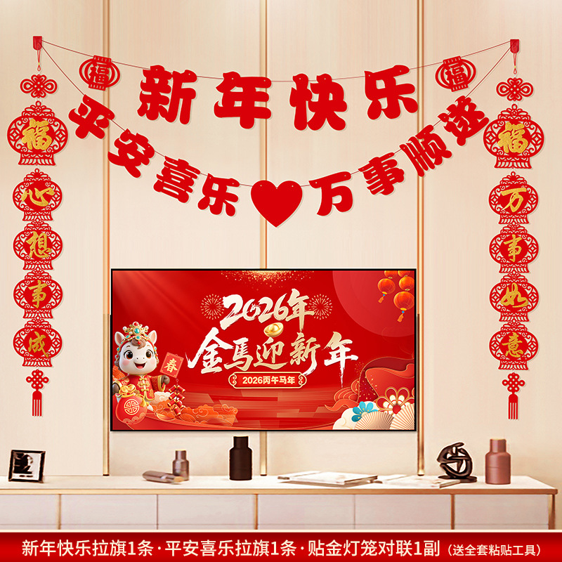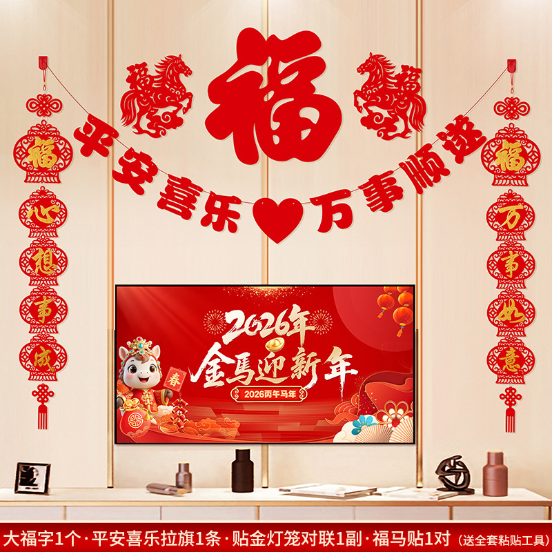 2026马年新年电视背景墙装饰过年氛围春节沙发背景墙客厅对联条幅