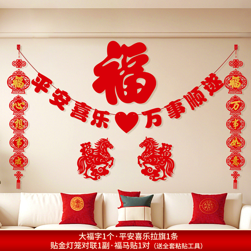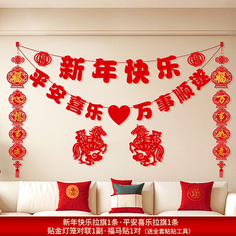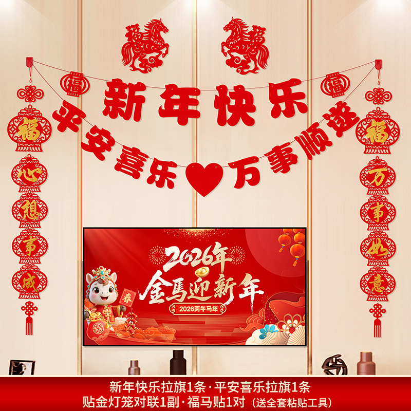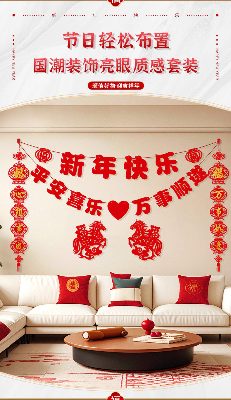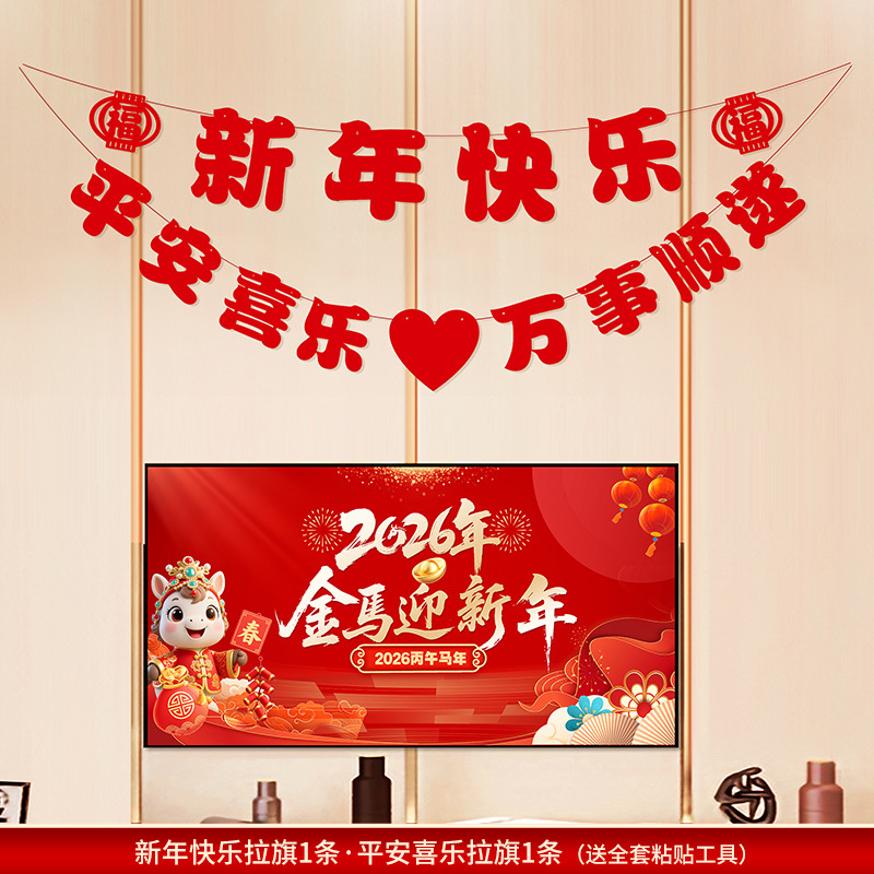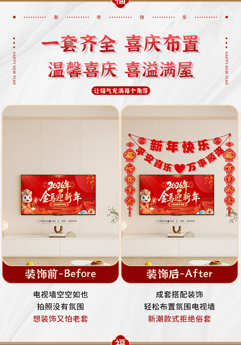 2026马年新年电视背景墙装饰过年氛围春节沙发背景墙客厅对联条幅