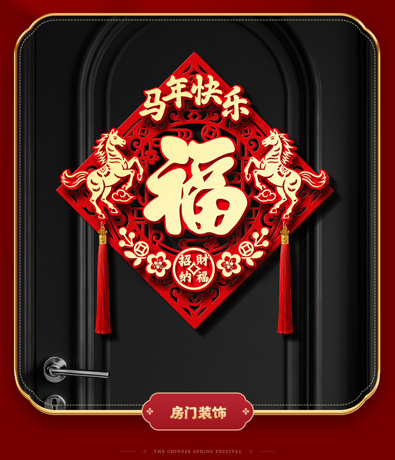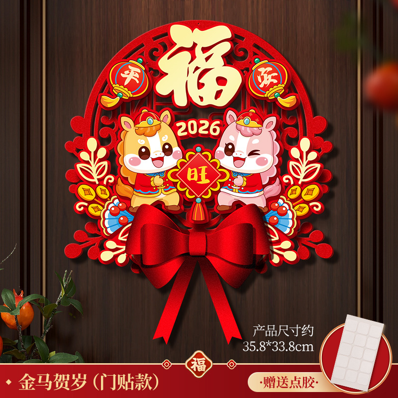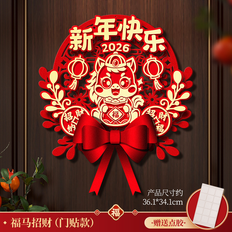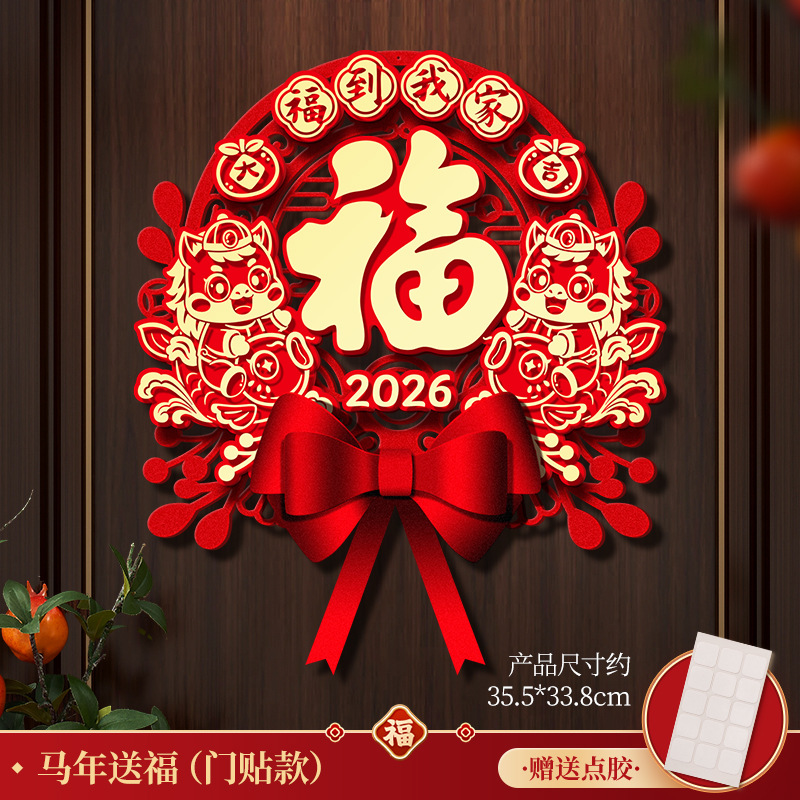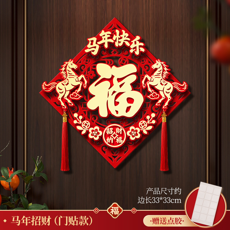 2026新款马年立体磁吸福字门贴自粘新年入户门大门装饰品春节精品
