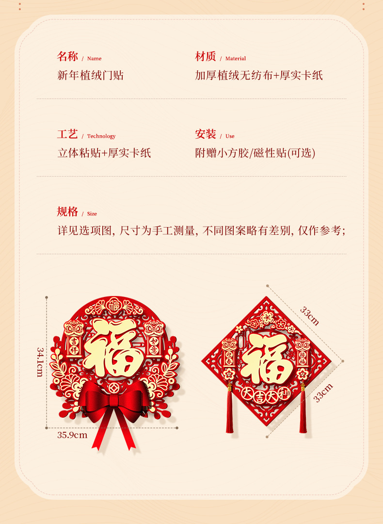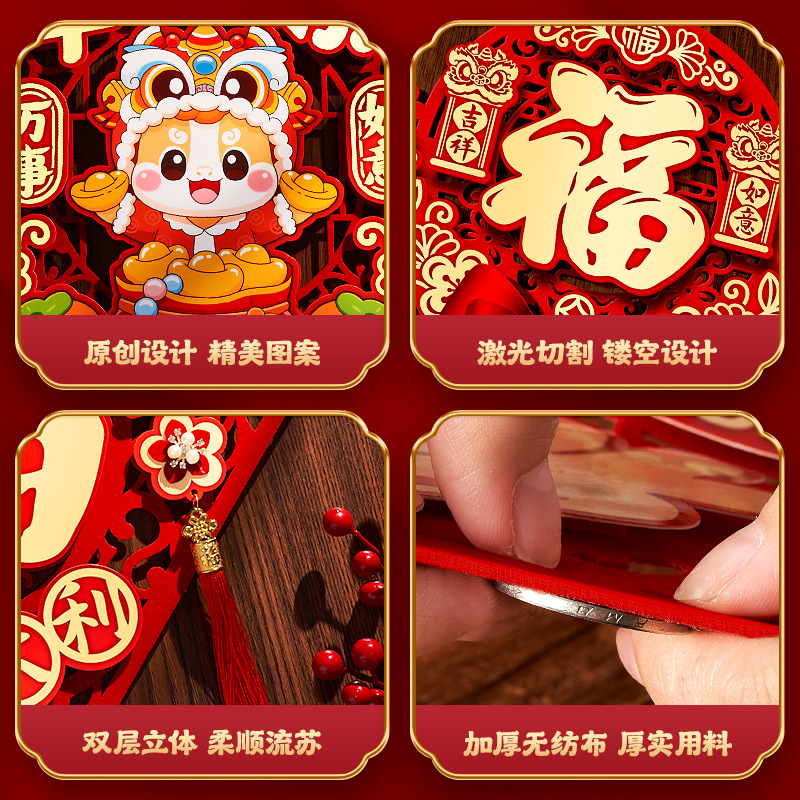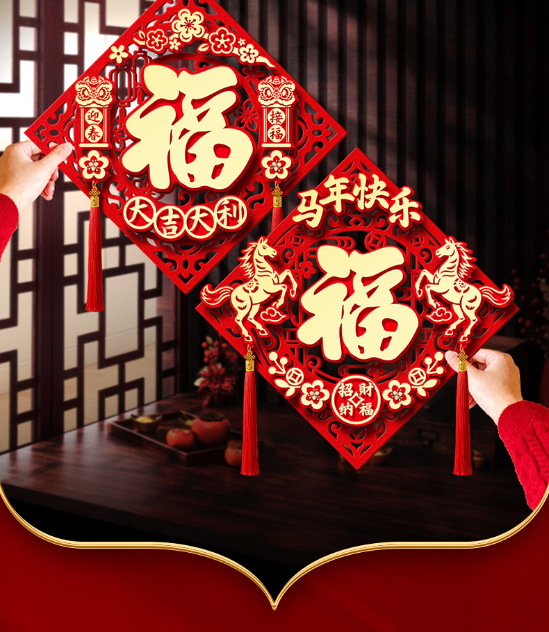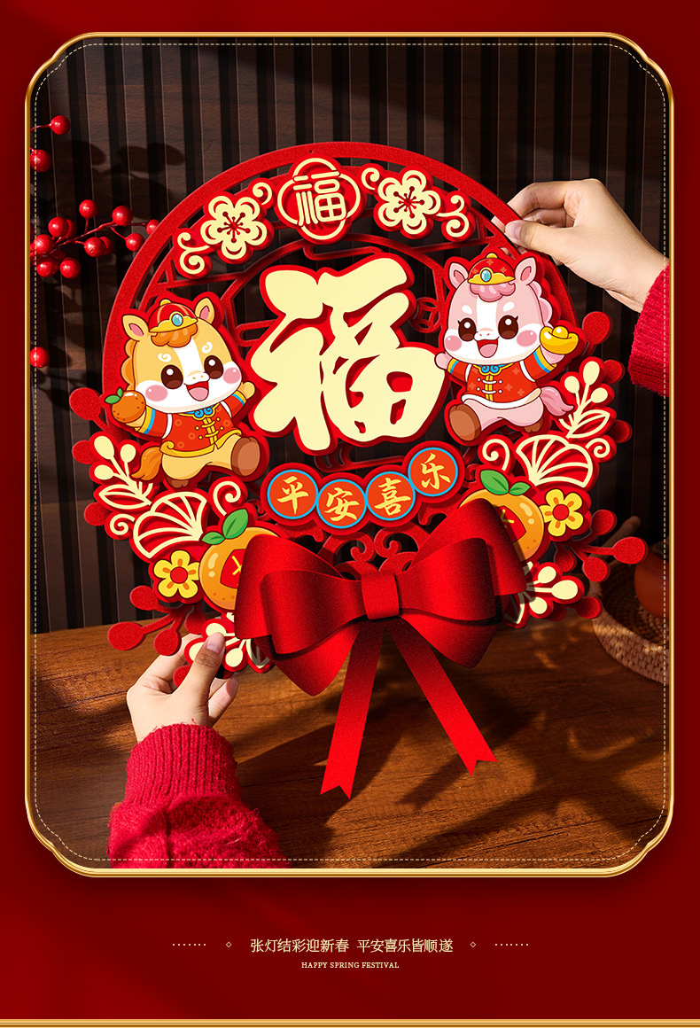 2026新款马年立体磁吸福字门贴自粘新年入户门大门装饰品春节精品