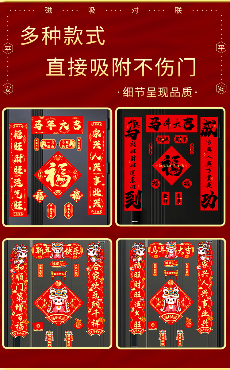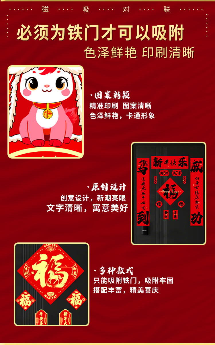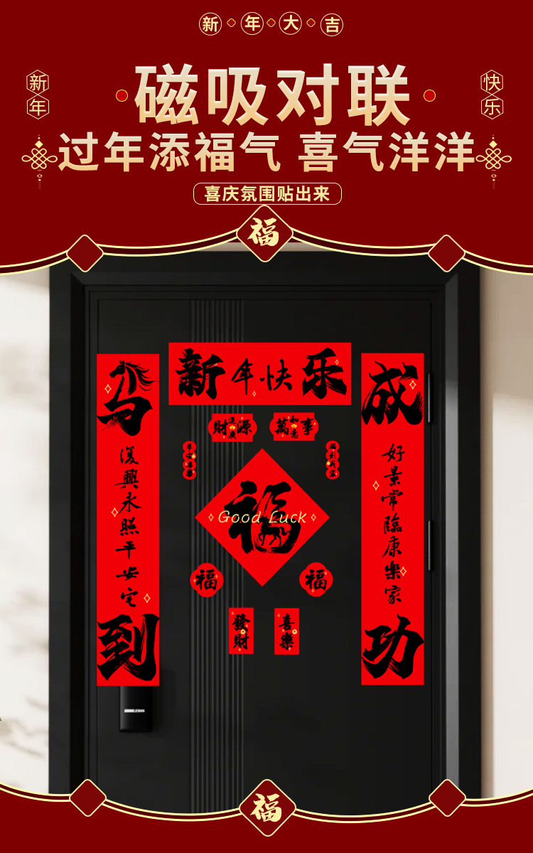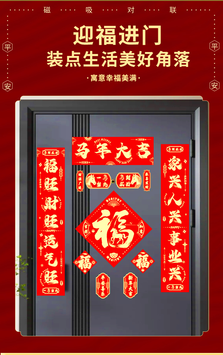 2026植绒磁吸对联春联批发新年门贴马年福字新款贴新年装饰过年